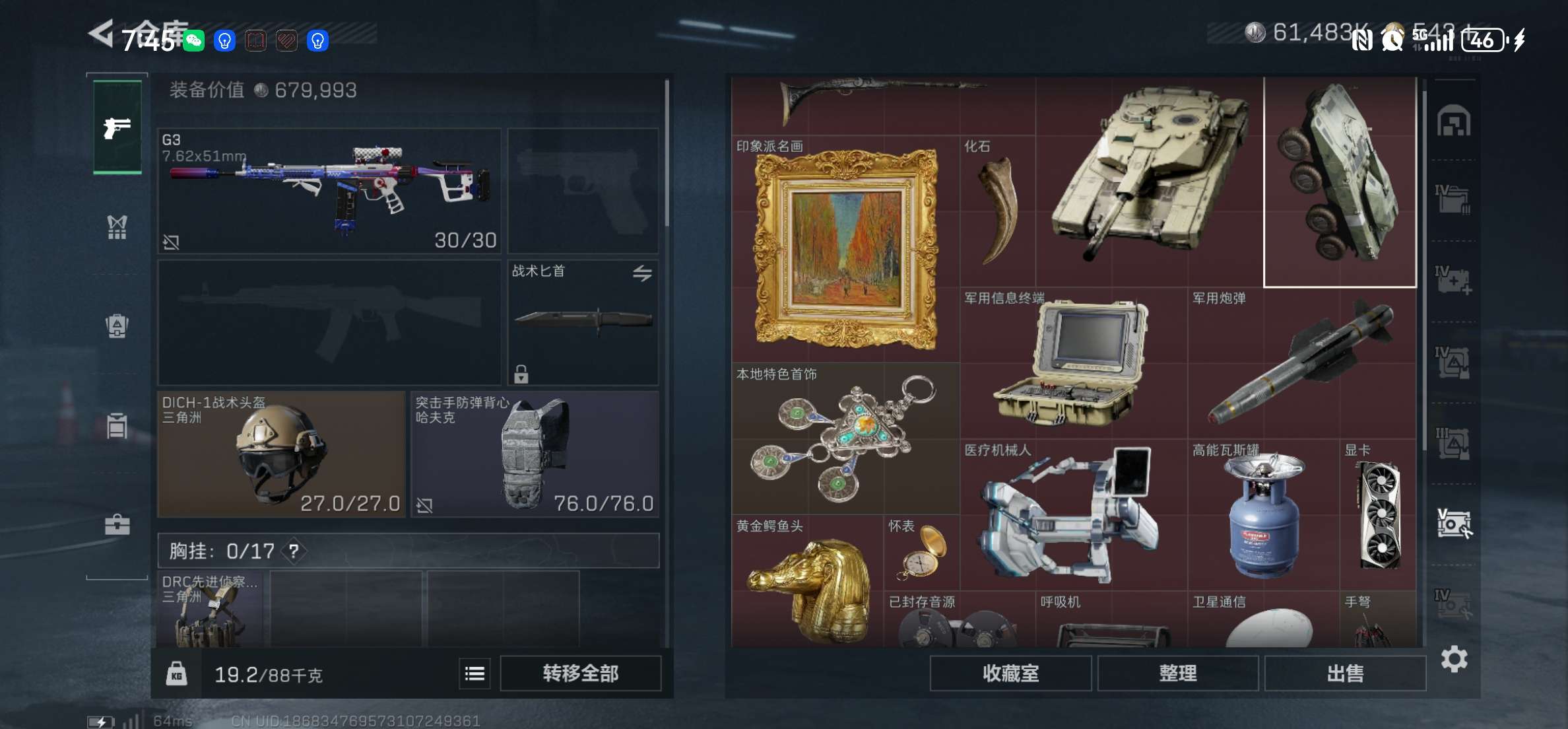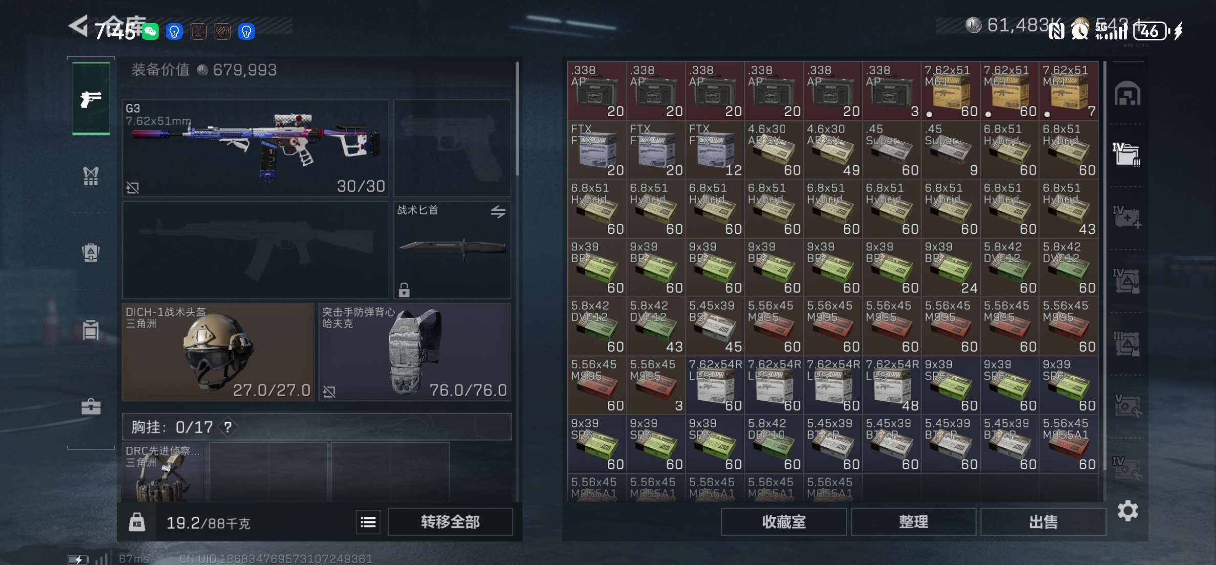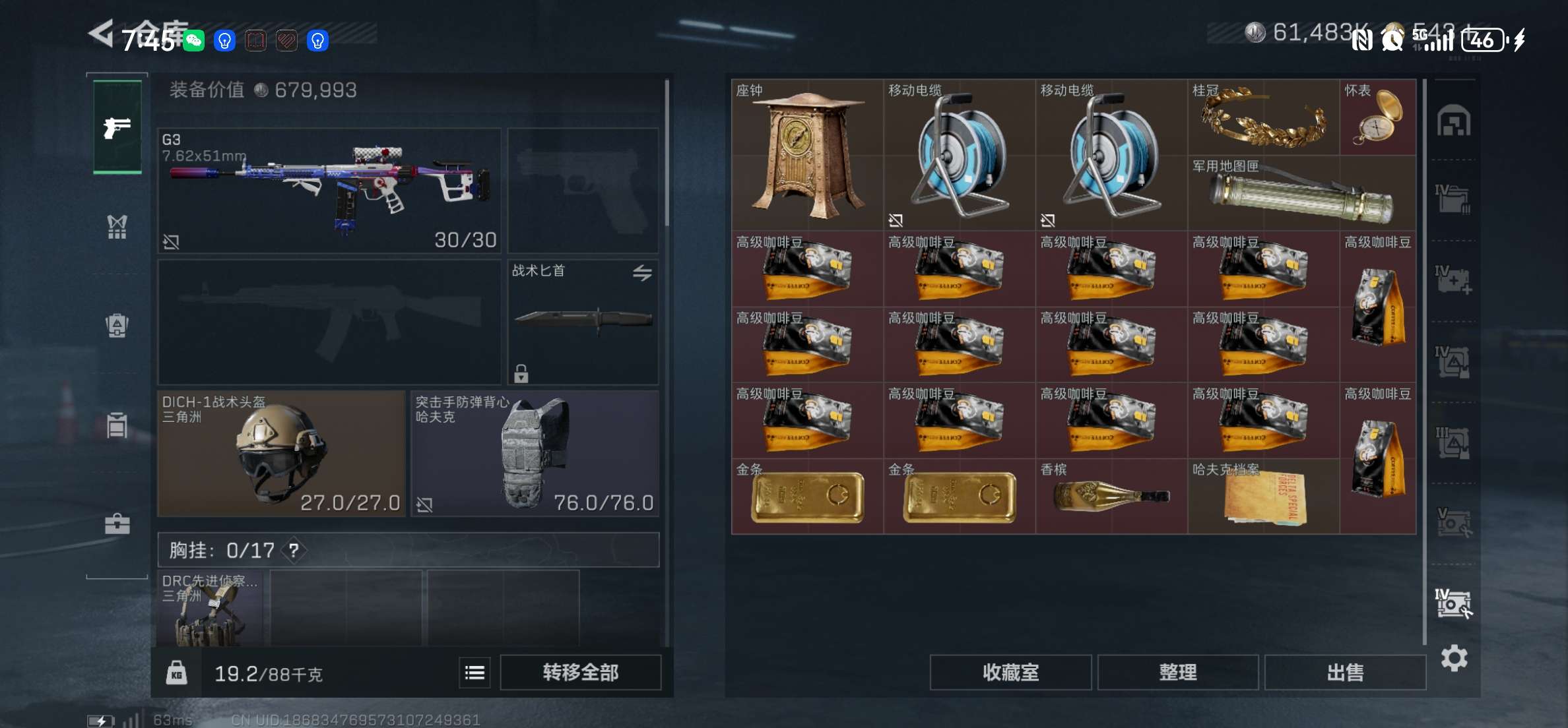 满体满负,仓库9级,10多个咖啡豆,100发AW和61弹,6套6套,纯币6000多万,赛季大红都有。