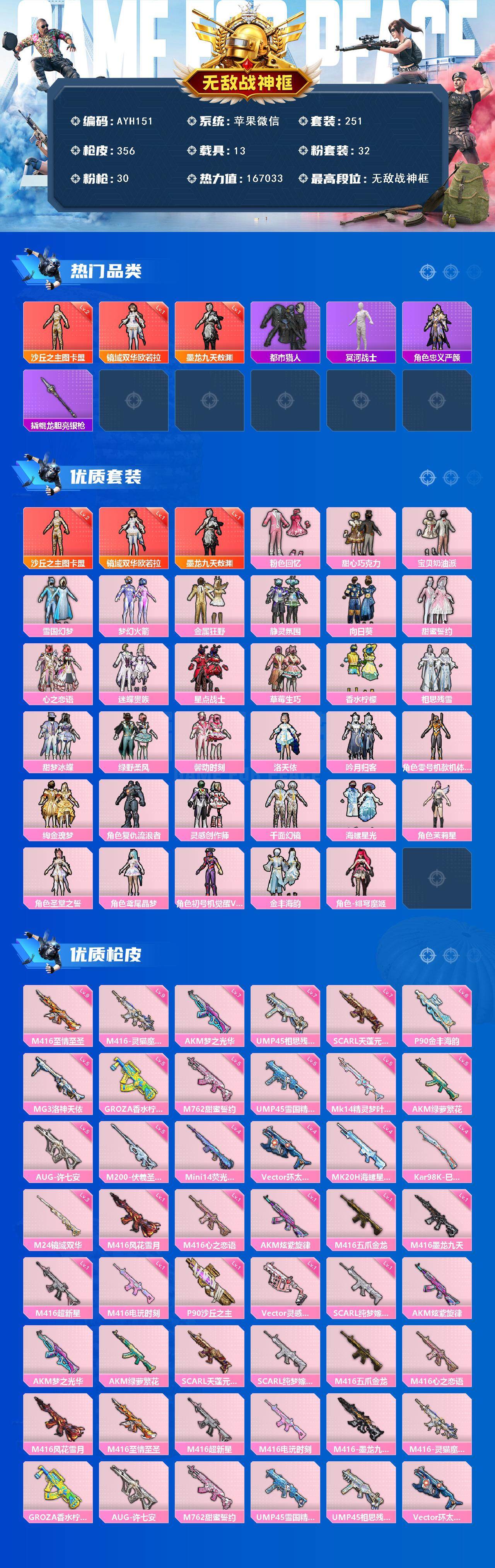 老木乃伊/素材号 苹果 微信-无敌战神框-3神装-32粉装-30特效枪-13载具-13粉色飞行器-167033热力值-21王牌印记-251套装-356枪皮【红色神装等级】:墨龙九天-敖渊(一级),镜域双华-欧若拉(一级),沙丘之主-图卡盟(二级)【红色角色神装】:墨龙九天-敖渊,镜域双华-欧若拉,沙丘之主-图卡盟【热门品类】:粉装-雪国幻梦,粉装-梦幻火箭,套装-浪漫天命,套装-都市猎人,套装-