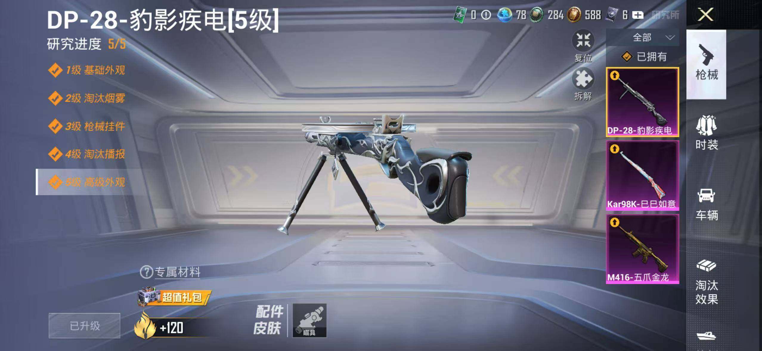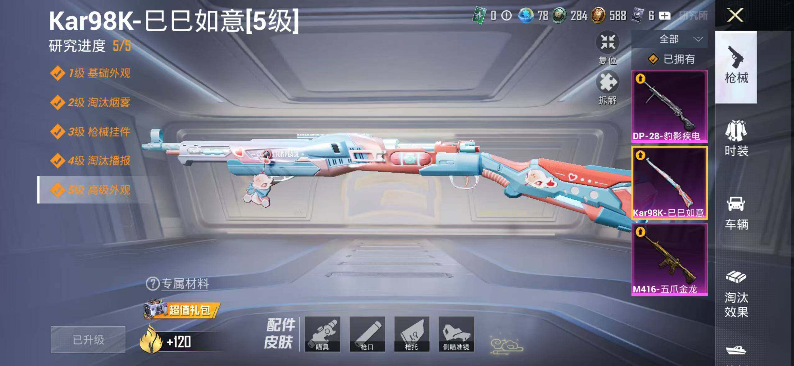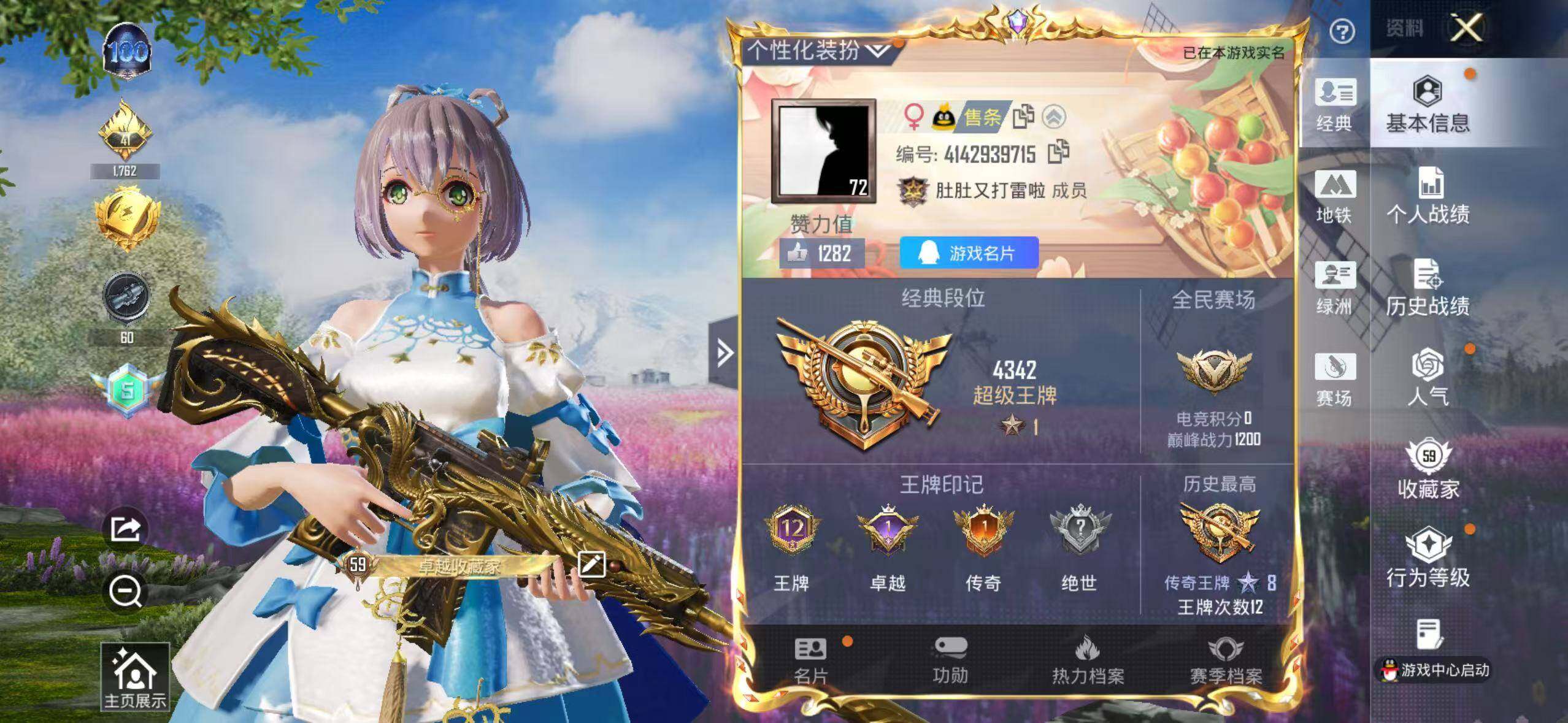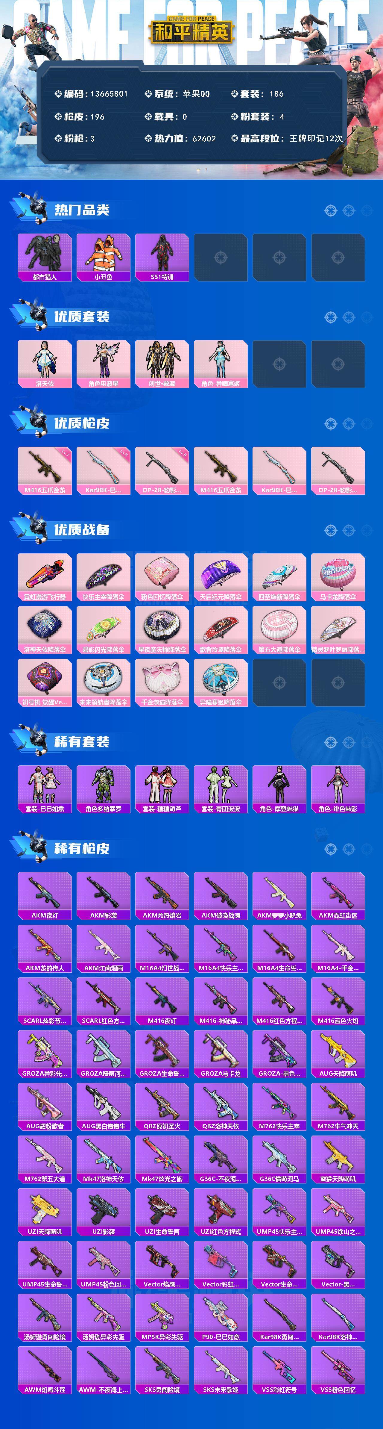 186套装/枪械3/装备239/战备171/王牌印记12/热力值62602/七级M416-五爪金龙/五级Kar98K-巳巳如意/五级DP-28-豹影疾电/套装-浪漫天命/都市猎人/深海小丑鱼/小丑鱼/奇异狩猎者/SS1特训/套装-龟仙人/套装-粉红小猪/角色-Mark.06/洛天依/电波星/创世·救赎/角色-异瞳寒姬/M416-五爪金龙/Kar98K-巳巳如意/DP-28-豹影疾电/霓虹漫游飞行