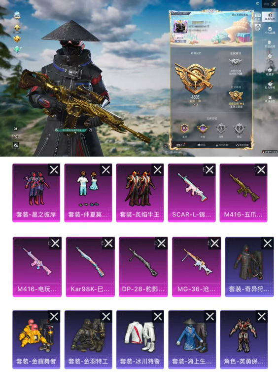 DYH17671+【3粉6特 满级五爪 金羽特工 斗笠 奇异狩猎者】苹果Q-1稀有3粉装6特效枪11热门135套装202枪皮 62428热力值 10印记 历史超级王牌11星【1稀有】 奇异狩猎者【3粉装】 仲夏莫吉托 炙焰牛王 星之彼岸【6特效枪】 M416-五爪金龙 (7级) SCAR-L-锦绣绵绵 (5级) M416-电玩时刻 (5级) Kar98K-巳巳如意 (5级) MG-36-沧焰双