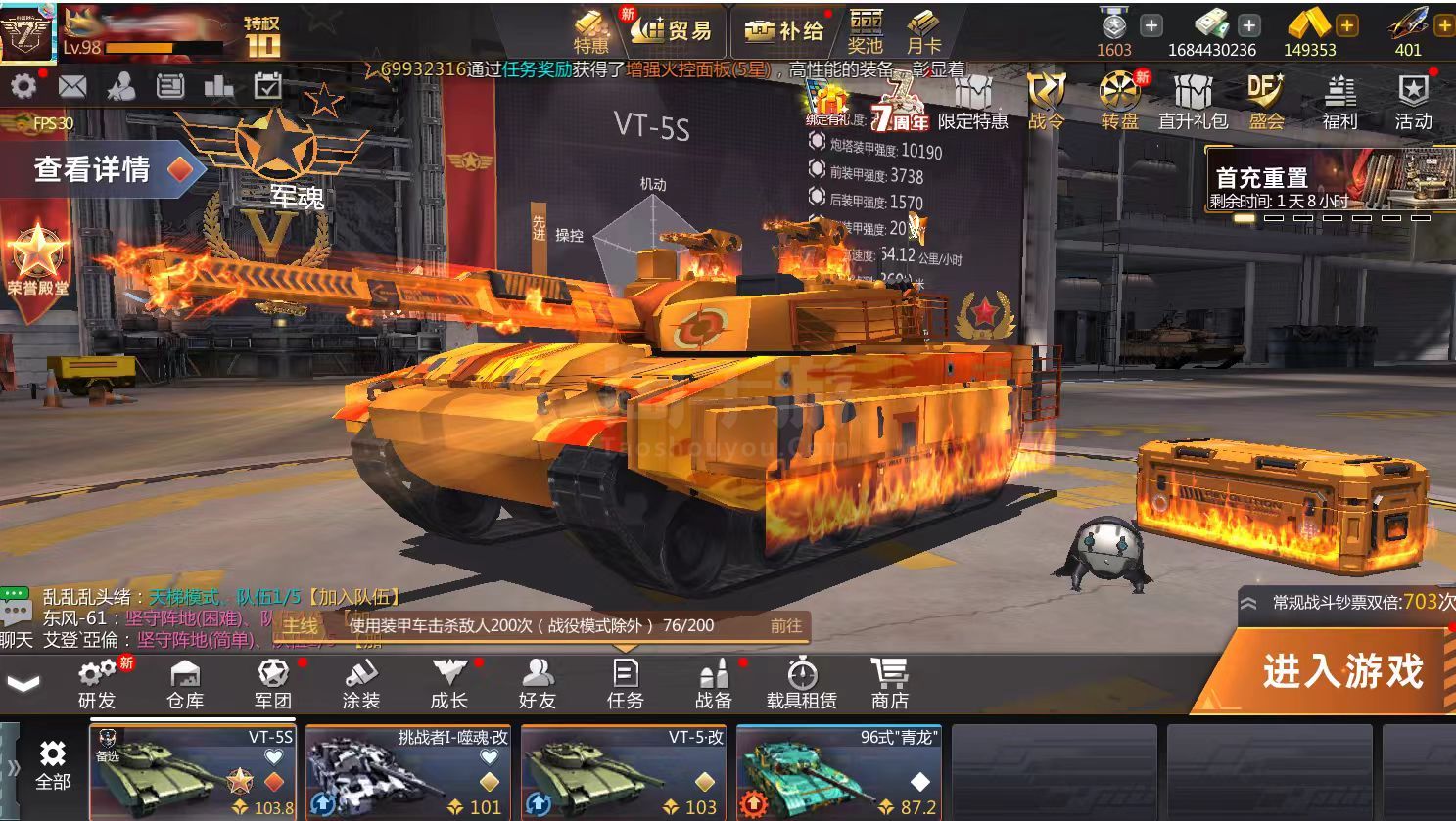 2916电脑端游-360游戏大厅-凯朱-VT5S-噬魂坦克号-军神套-锻造全开-技能满-部件全红-研修满