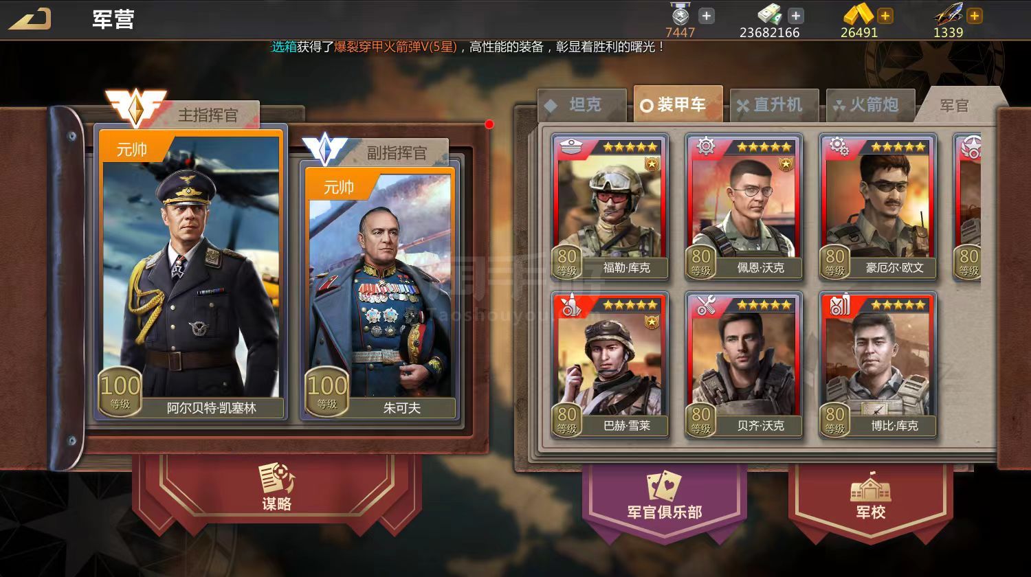 合作商家-2921电脑端游-qq游戏大厅-准将帅-仓库还有259高级指挥官箱子-凯奶莫德尔隆朱古巴锁战役-双系满军官-M1A2-KF51改