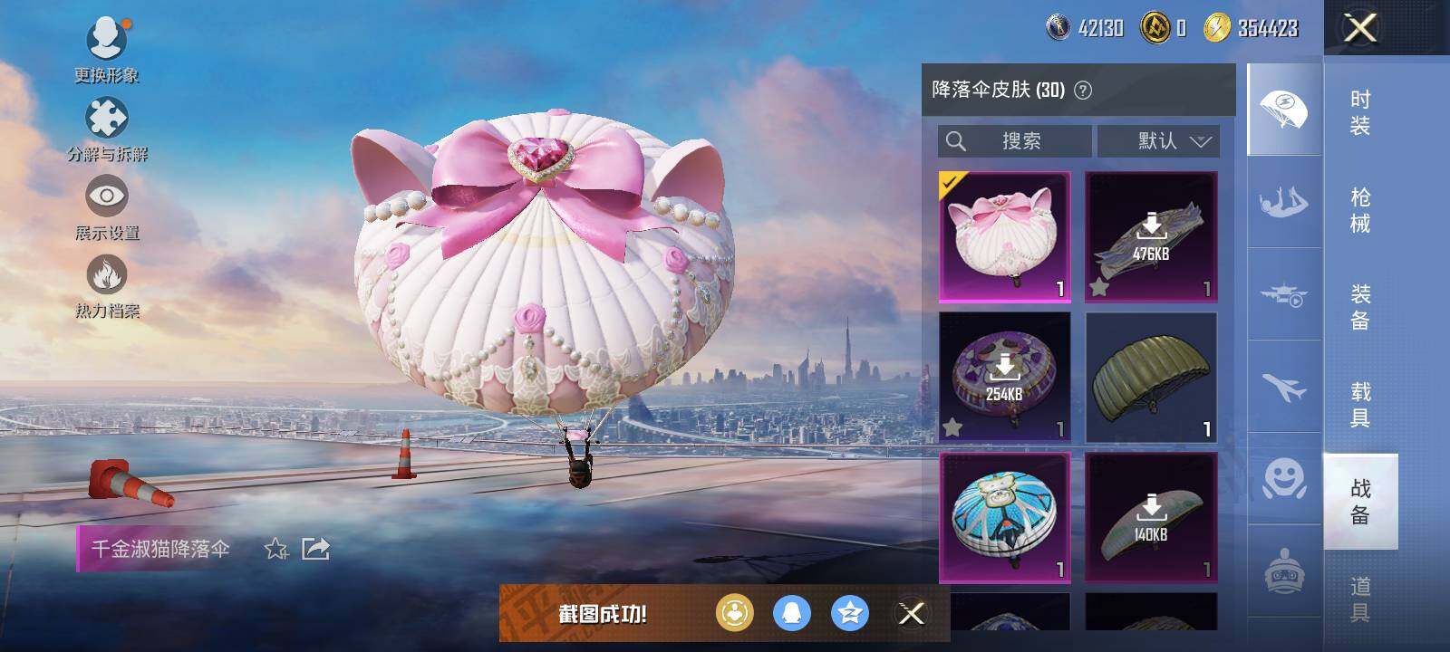 【粉色降落伞】:莲影清波降落伞,圣堂之誓降落伞,千金淑猫降落伞,异瞳寒姬