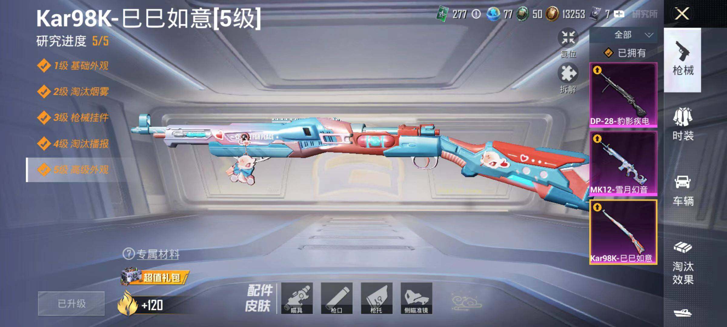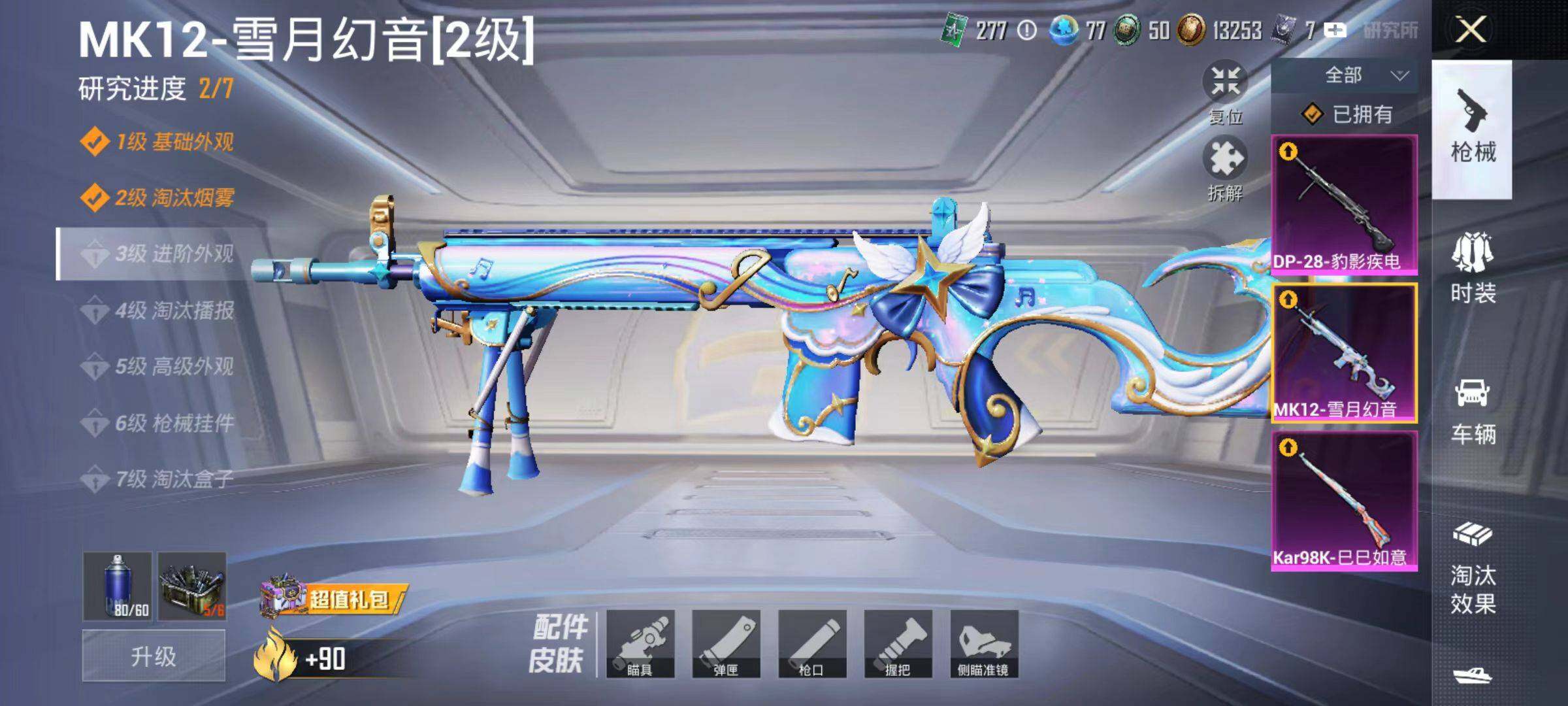 100套装/枪械3/装备104/战备90/王牌印记3/热力值30007/二级MK12-雪月幻音/五级Kar98K-巳巳如意/五级DP-28-豹影疾电/小丑鱼/套装-暗影哥特/套装-粉红小猪/Kar98K-巳巳如意/MK12-雪月幻音/DP-28-豹影疾电/英伦信使飞行器/未来领航者降落伞/星穹咏叹调降落伞/巳巳如意/套装-糖糖葫芦/套装-青团波波/角色-都市丽猫/套装-燕燕于飞/套装-鱼渊荷华/