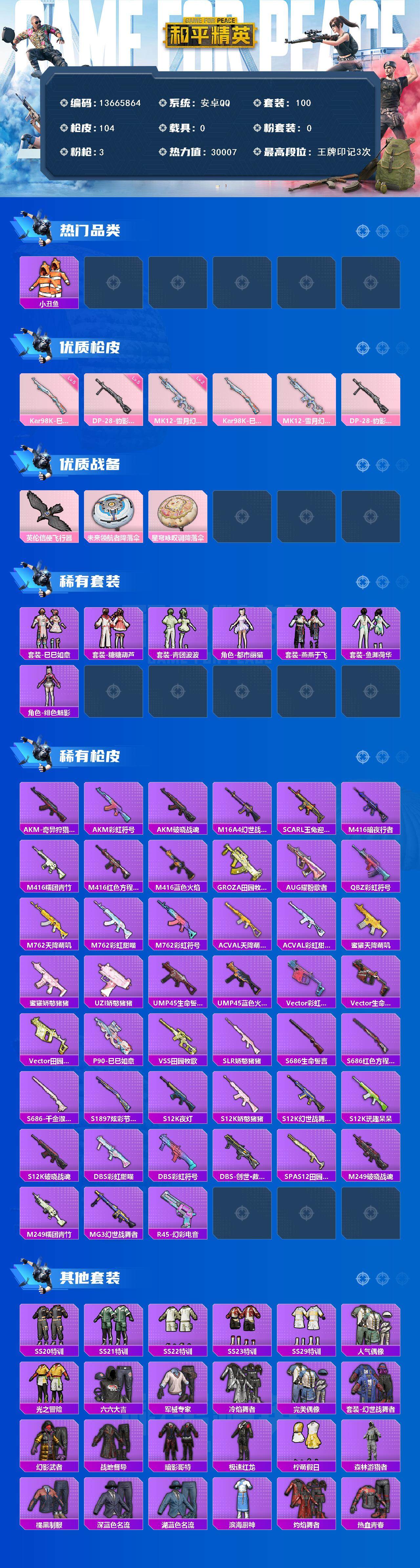 100套装/枪械3/装备104/战备90/王牌印记3/热力值30007/二级M