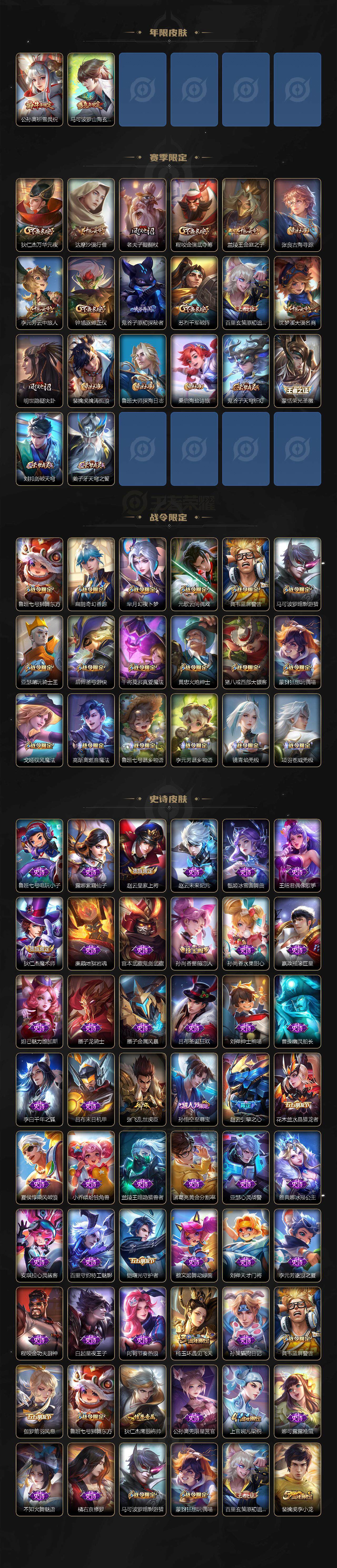 皮肤270 英雄127 荣耀王者 荣耀典藏1 珍品传说1 传说20 其他皮肤109-【270皮1典藏1珍品20传说1天幕 墨上江山天幕 木白哉 千山共赴 霜月吟