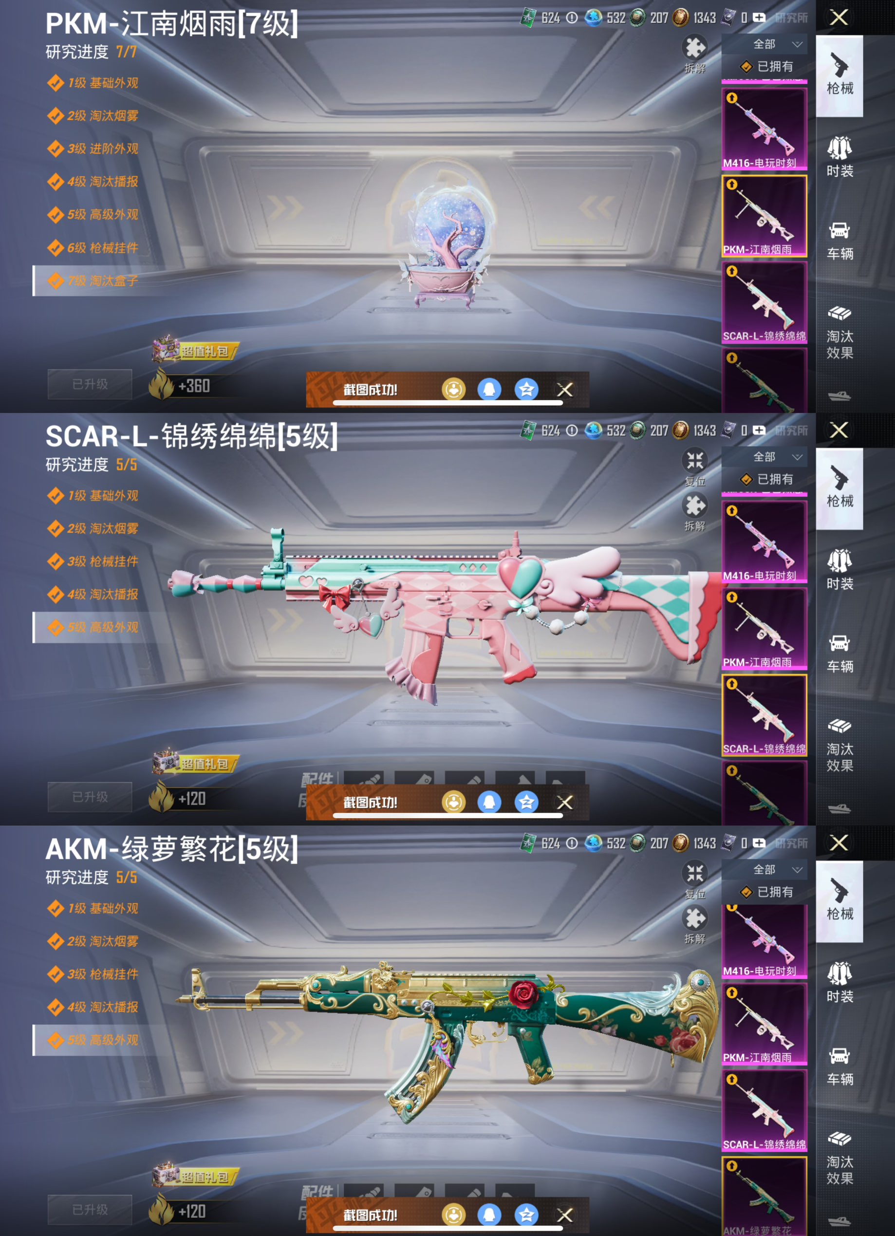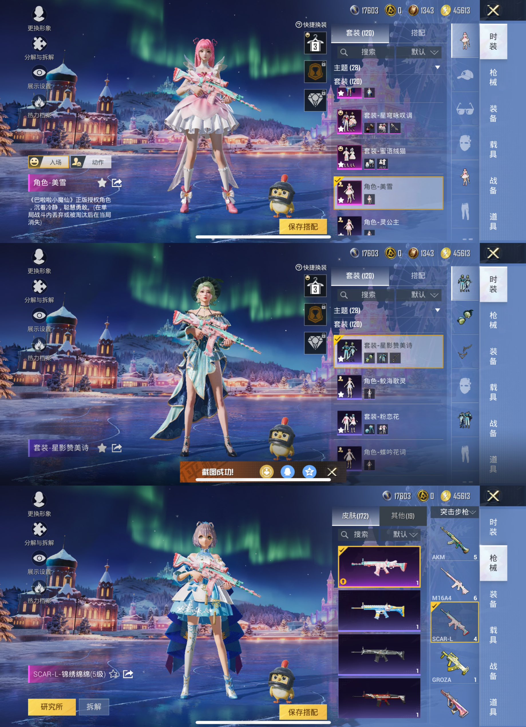 【4粉装 6特效枪 洛天依 兔兔 美雪 公主号】苹果Q-4粉装6特效枪4热门120套装158枪皮 52756热力值 11印记 历史超级王牌10星 【4粉装】 美雪 蜜语绒猫 洛天依 星穹咏叹调 【6特效枪】 SCAR-L-锦绣绵绵 (5级) M416-电玩时刻 (5级) AKM-绿萝繁花 (5级) Kar98K-巳巳如意 (5级) DP-28-豹影疾电 (1级) PKM-江南烟雨 (7级)