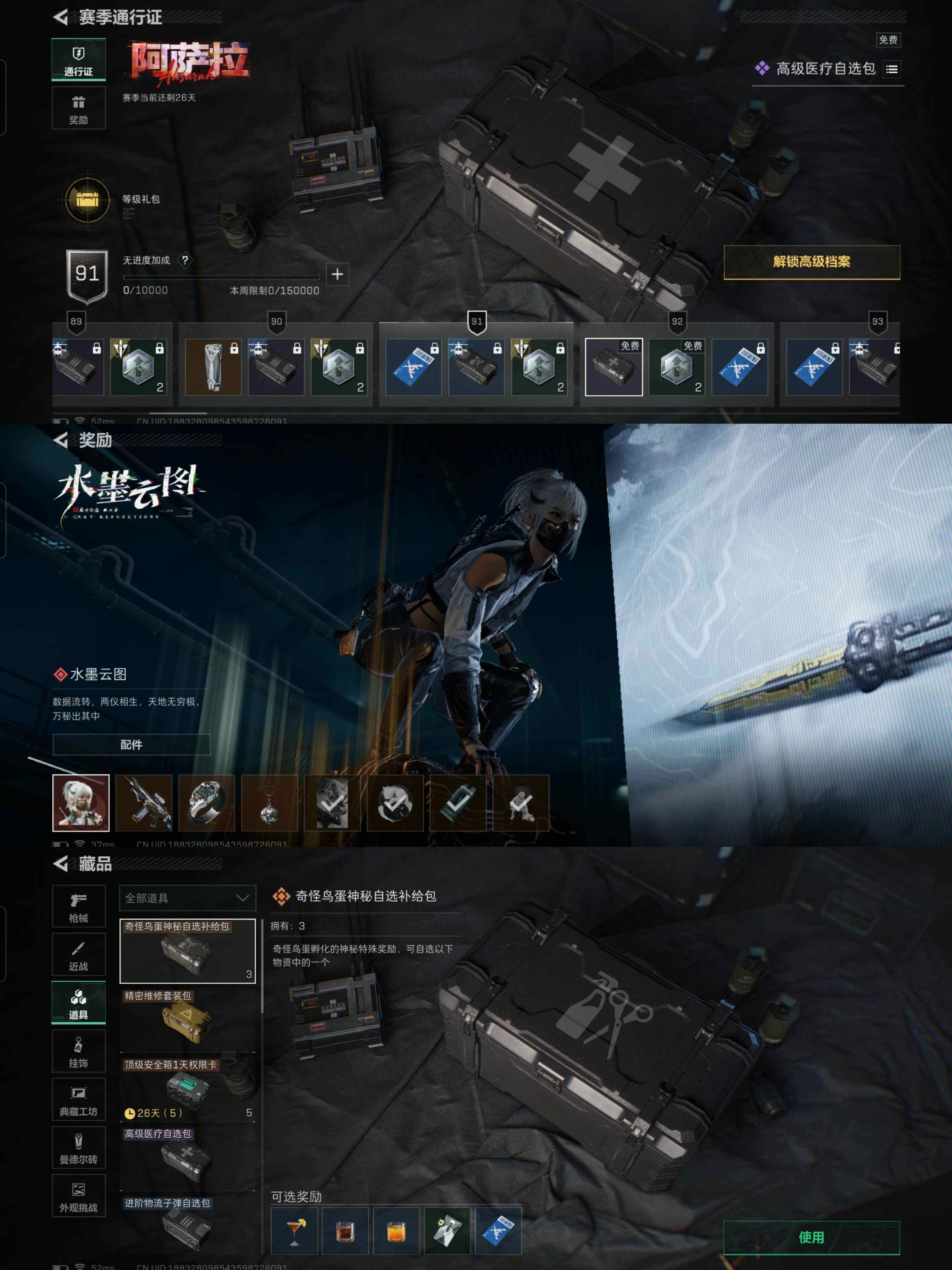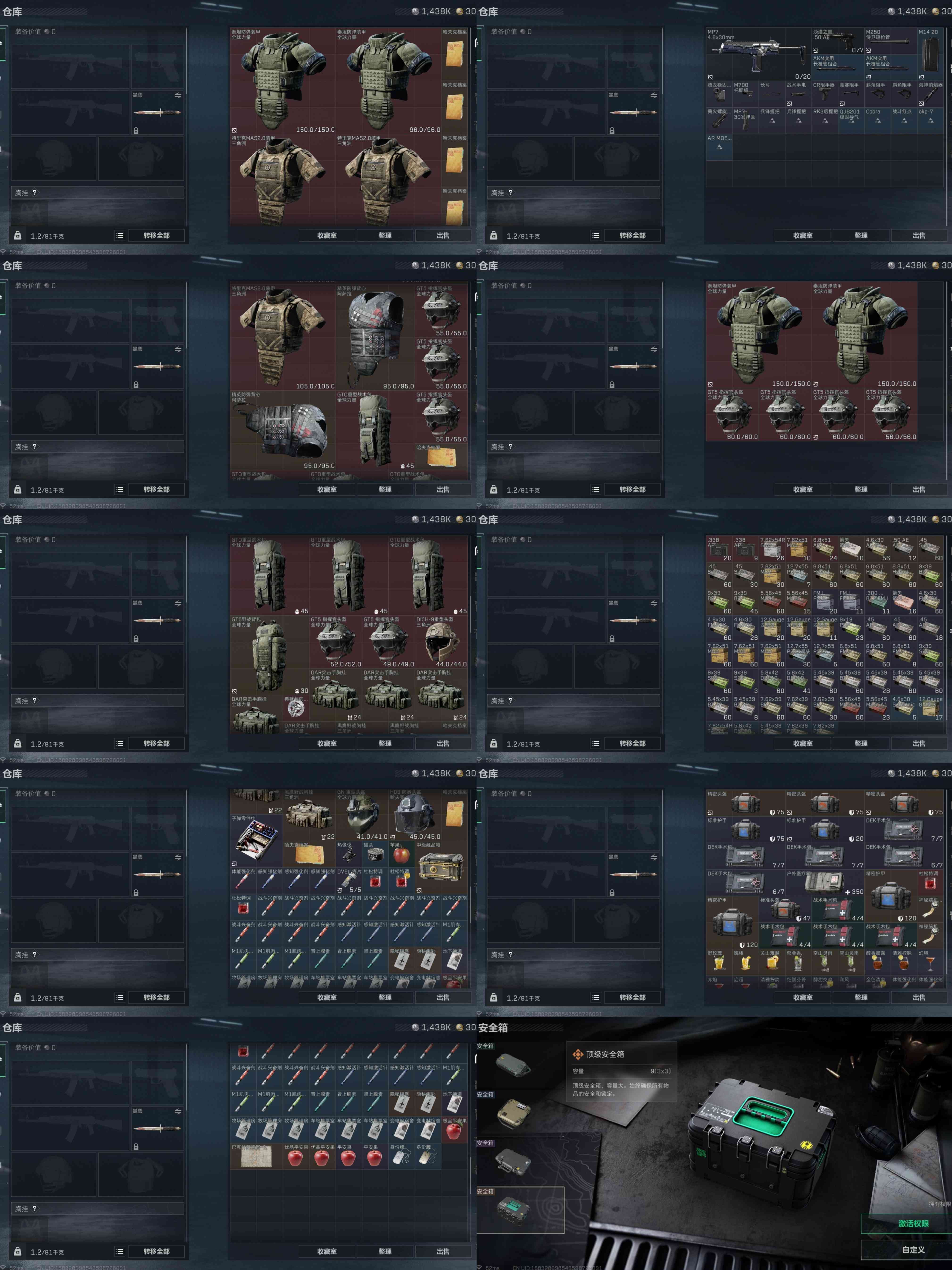 y24,皮肤蚀金玫瑰不破电锯惊魂,三端互通烽火60级全面32级,总资产90.5M,18橙皮枪,哈夫币1438K,3x3,特勤快满,4金挂饰,红狼-蚀金玫瑰,红狼-电锯惊魂,深蓝-不破誓约