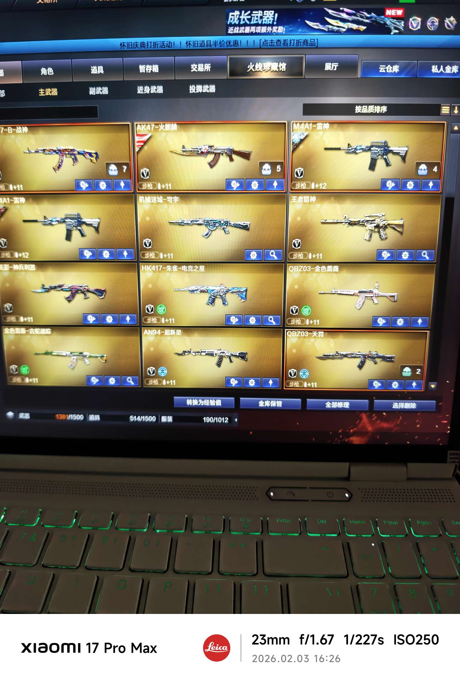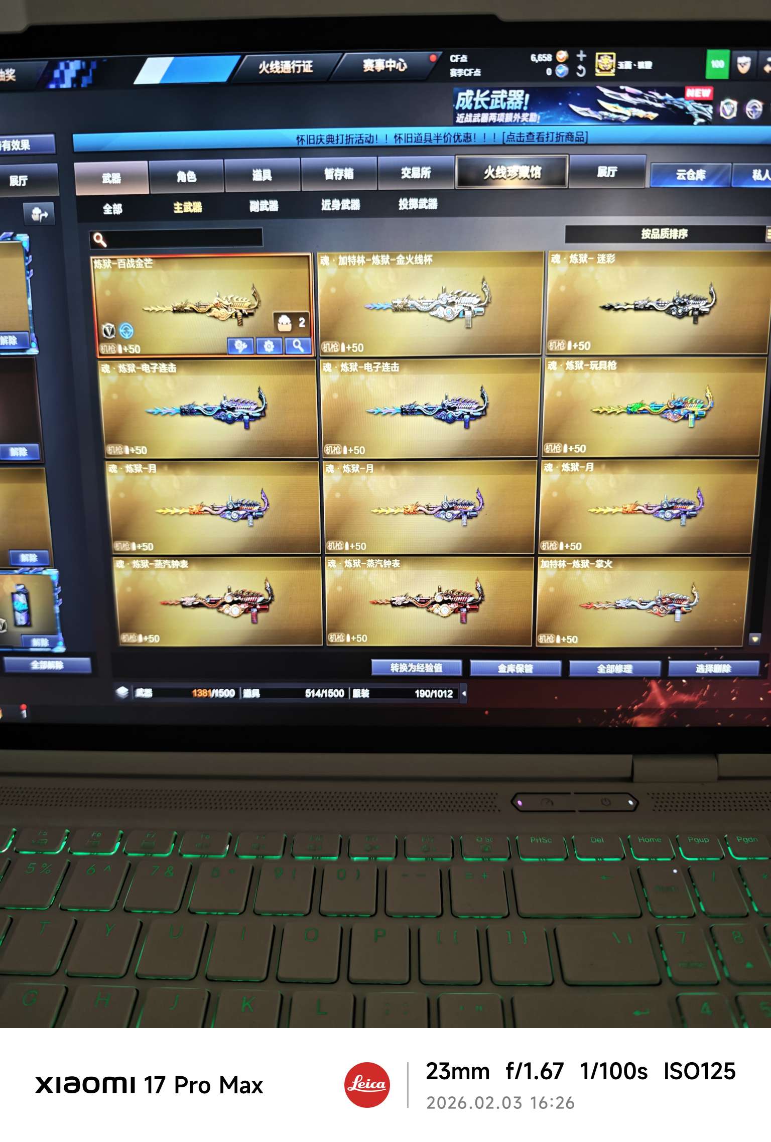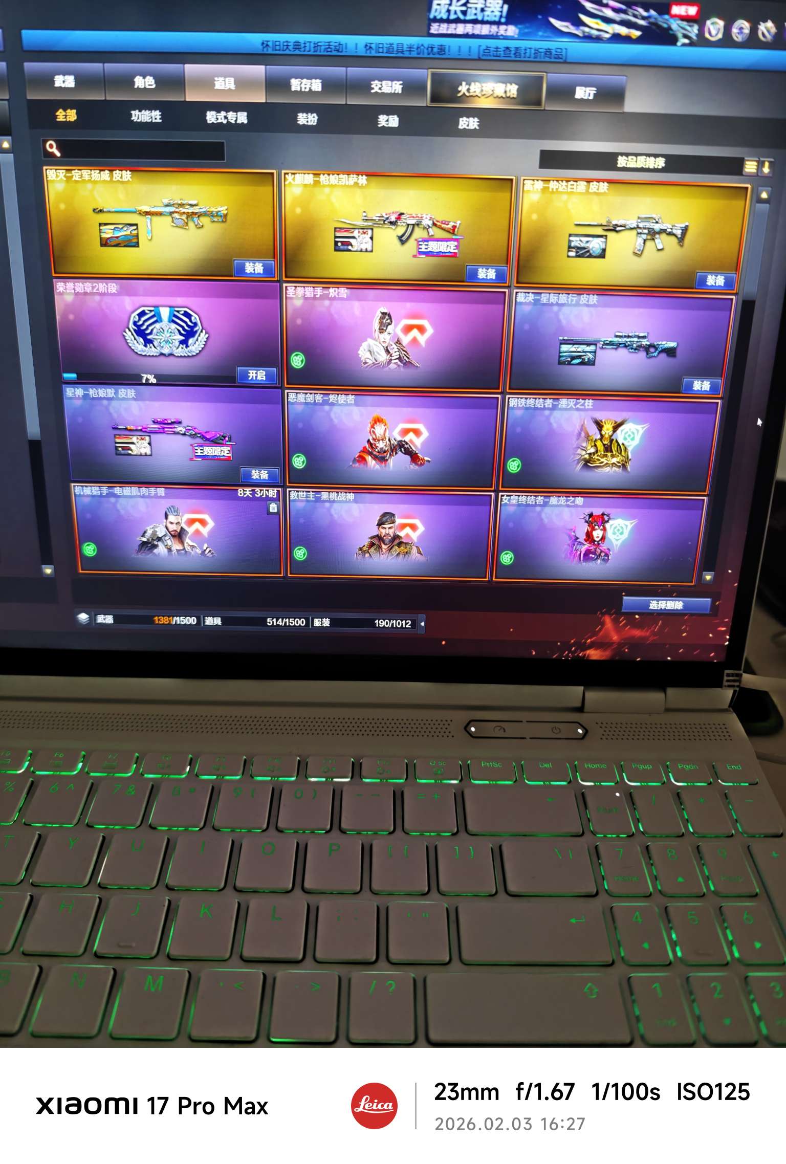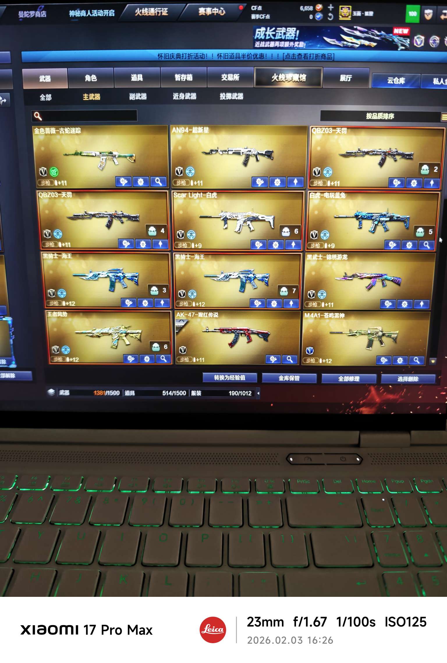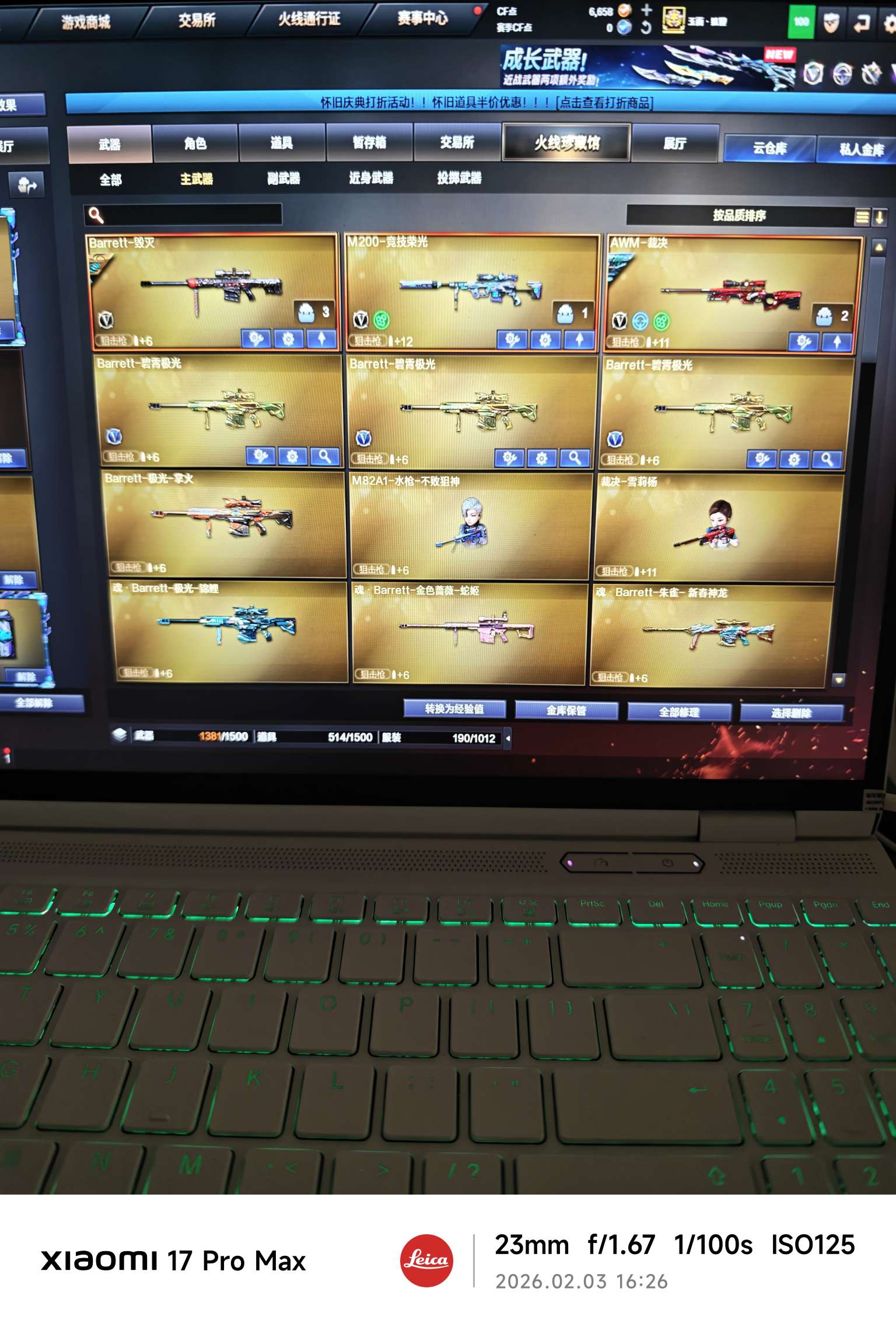 黄金金狐套三件 甄选套 白虎天罚传说星孩 神威莲花 裁决毁灭音效卡皮肤六烈挑战满攻m200