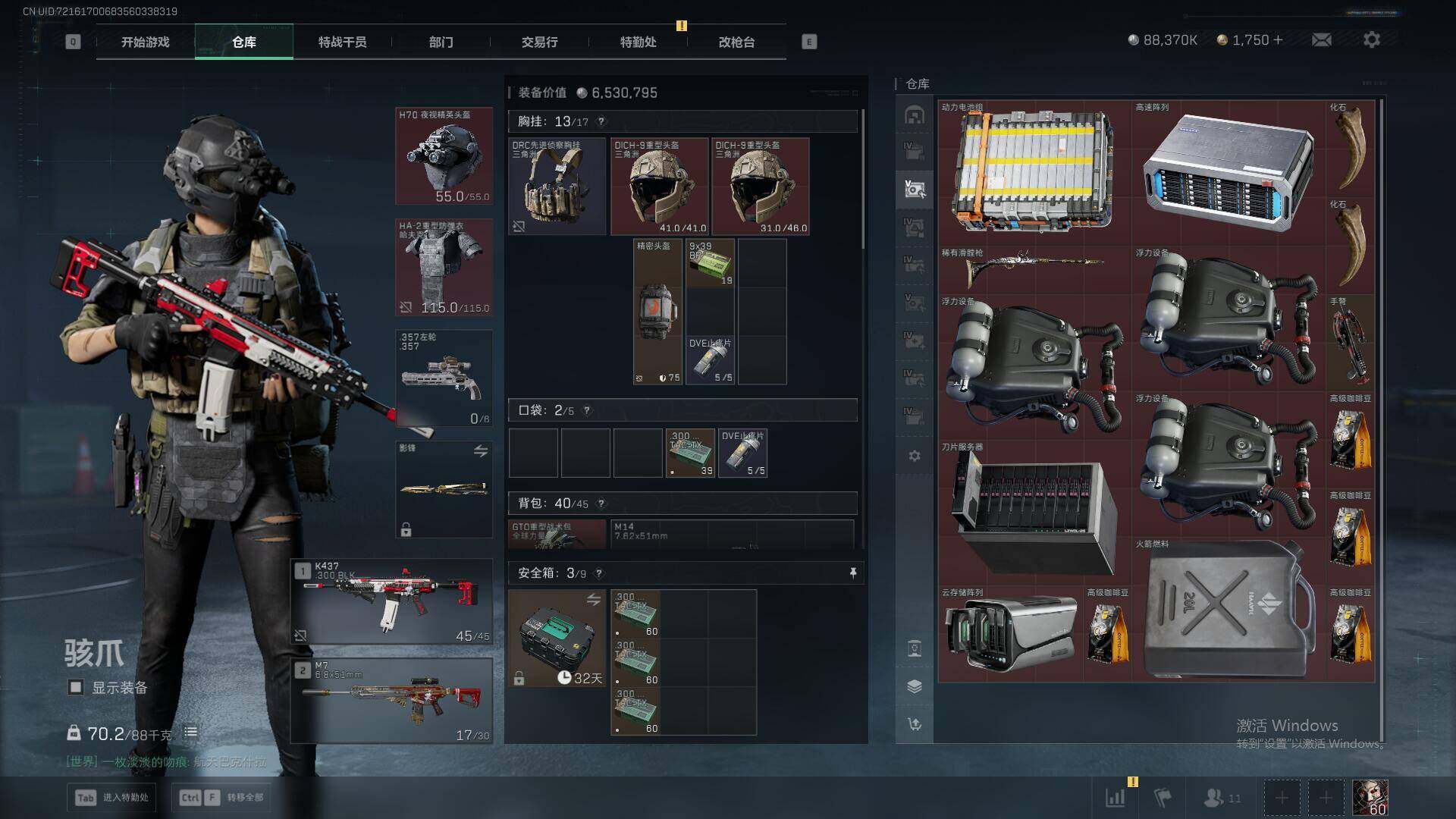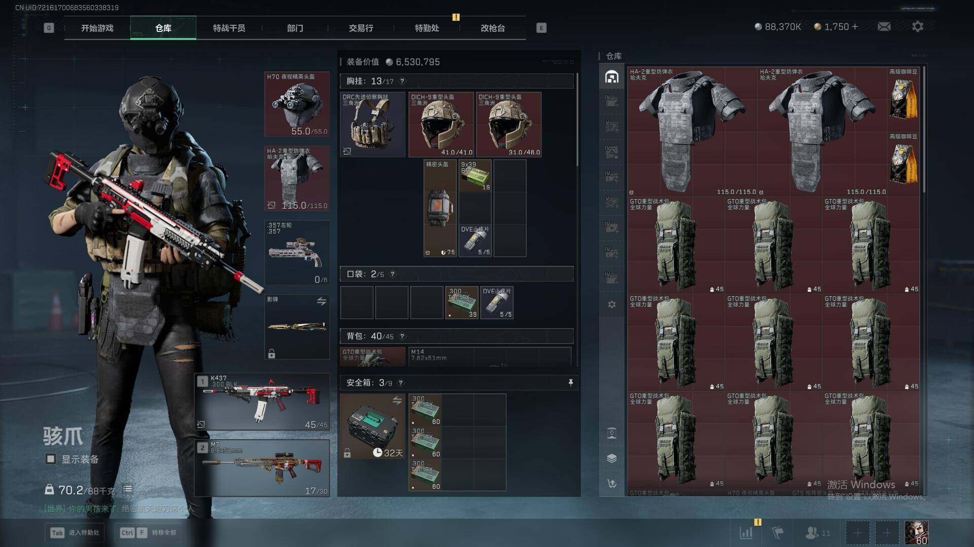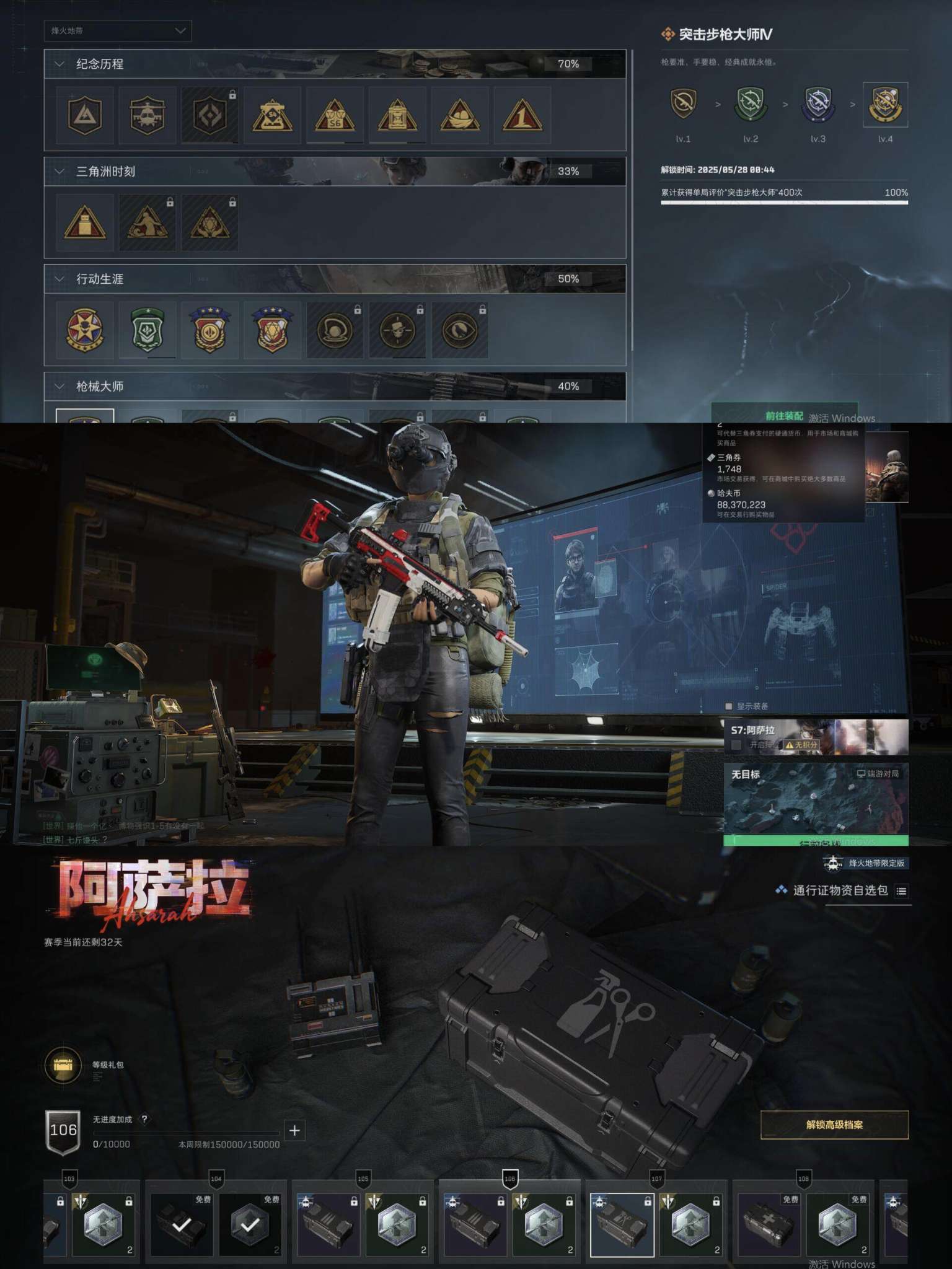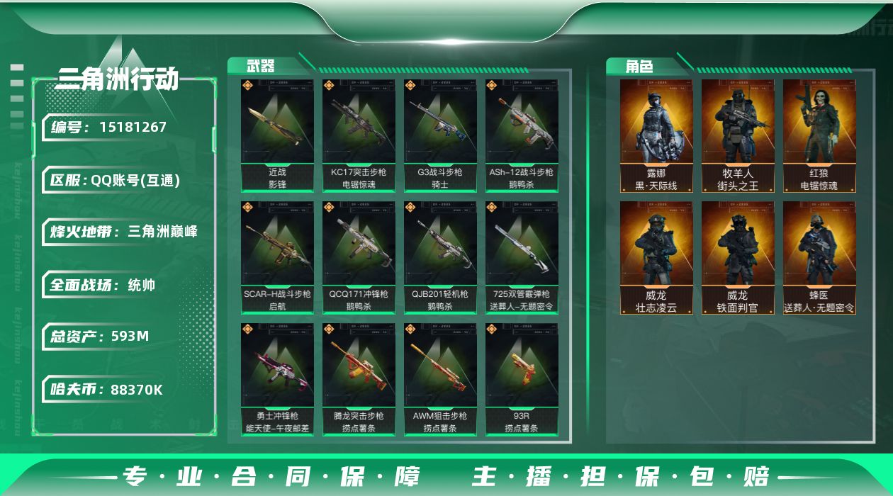 总资产(M):593M/哈夫币(K):88370K/哈夫币(K):88370K/全面战场等级:50_