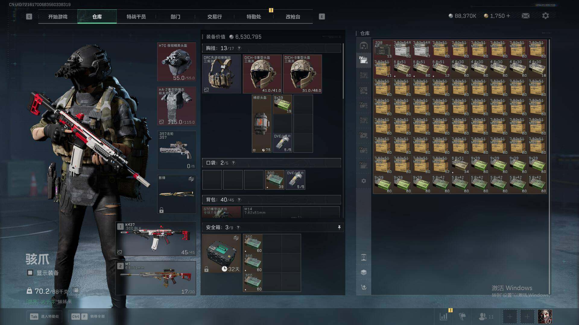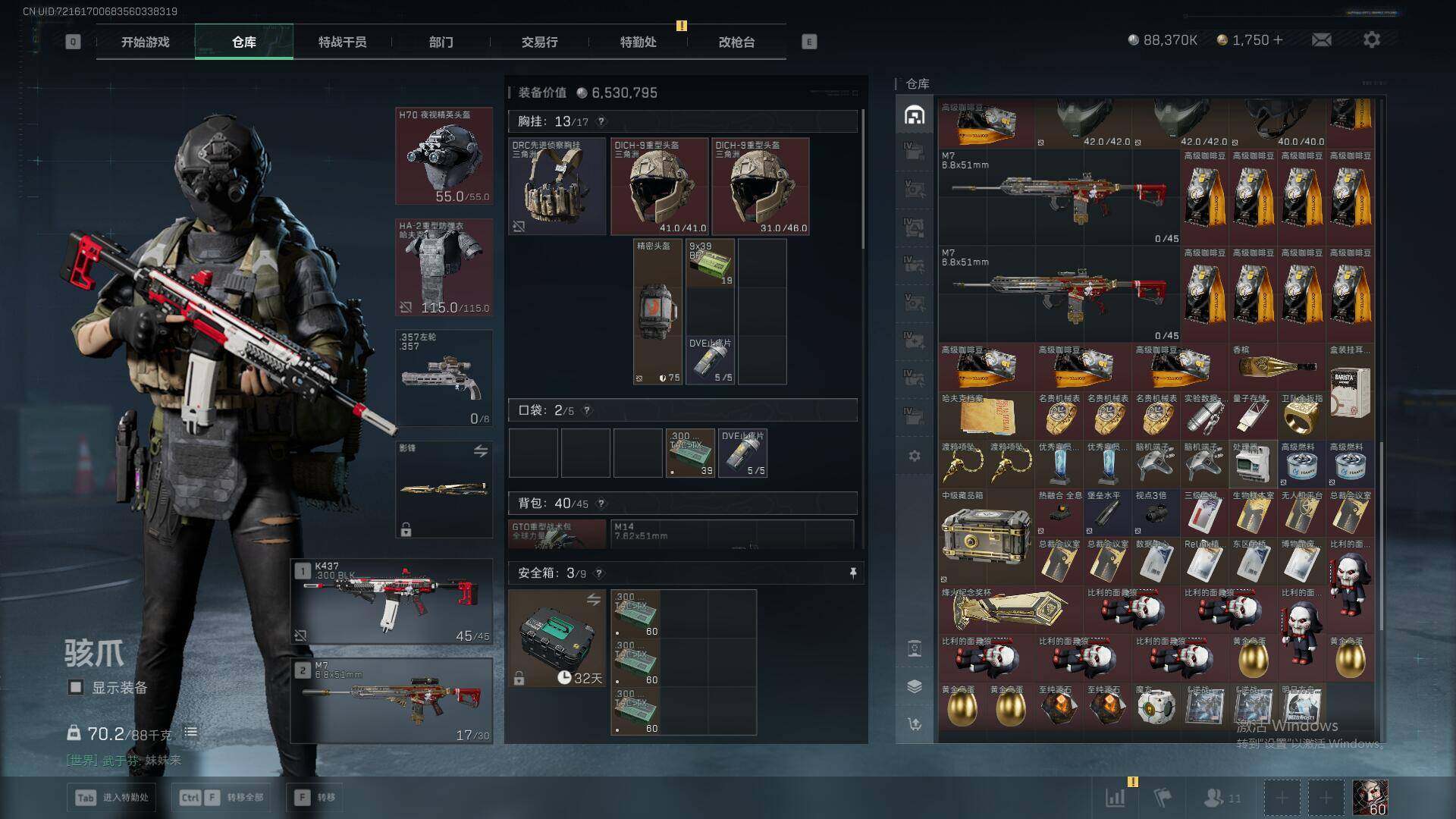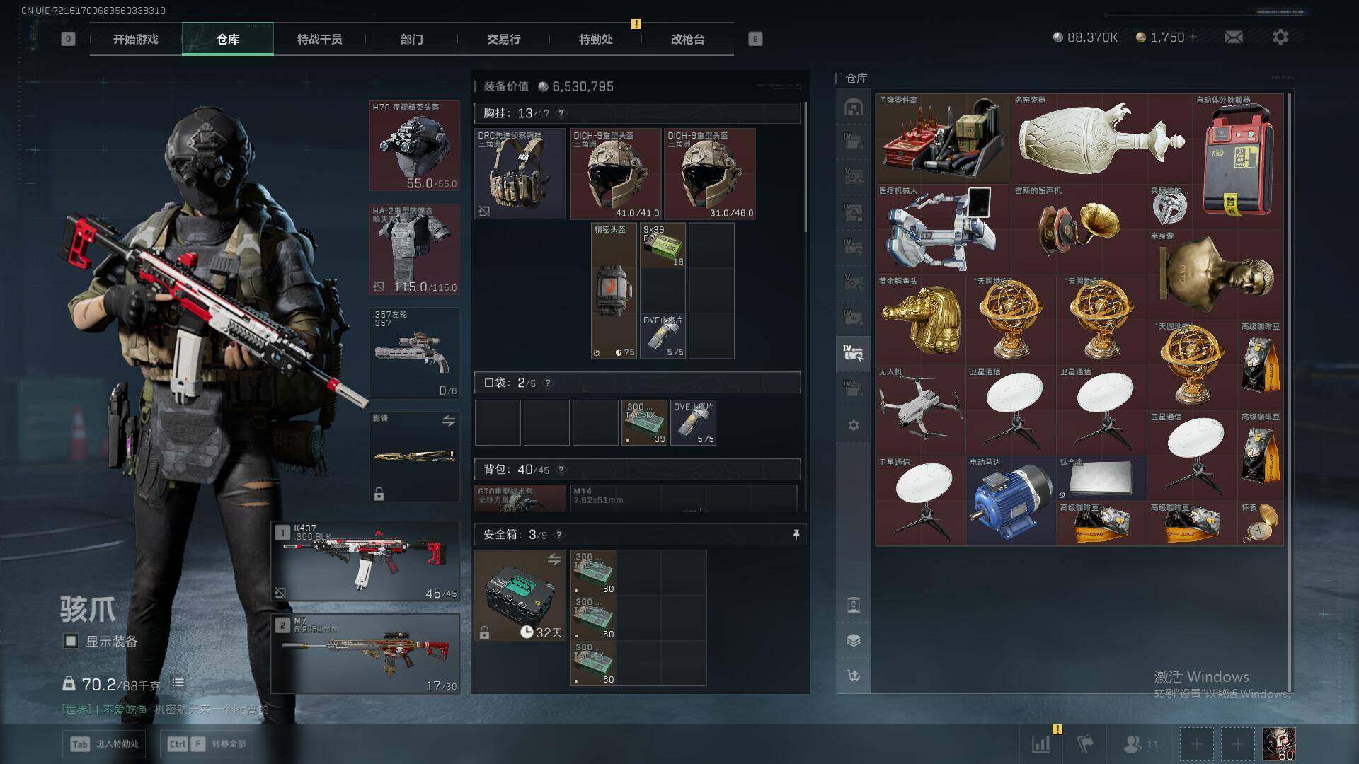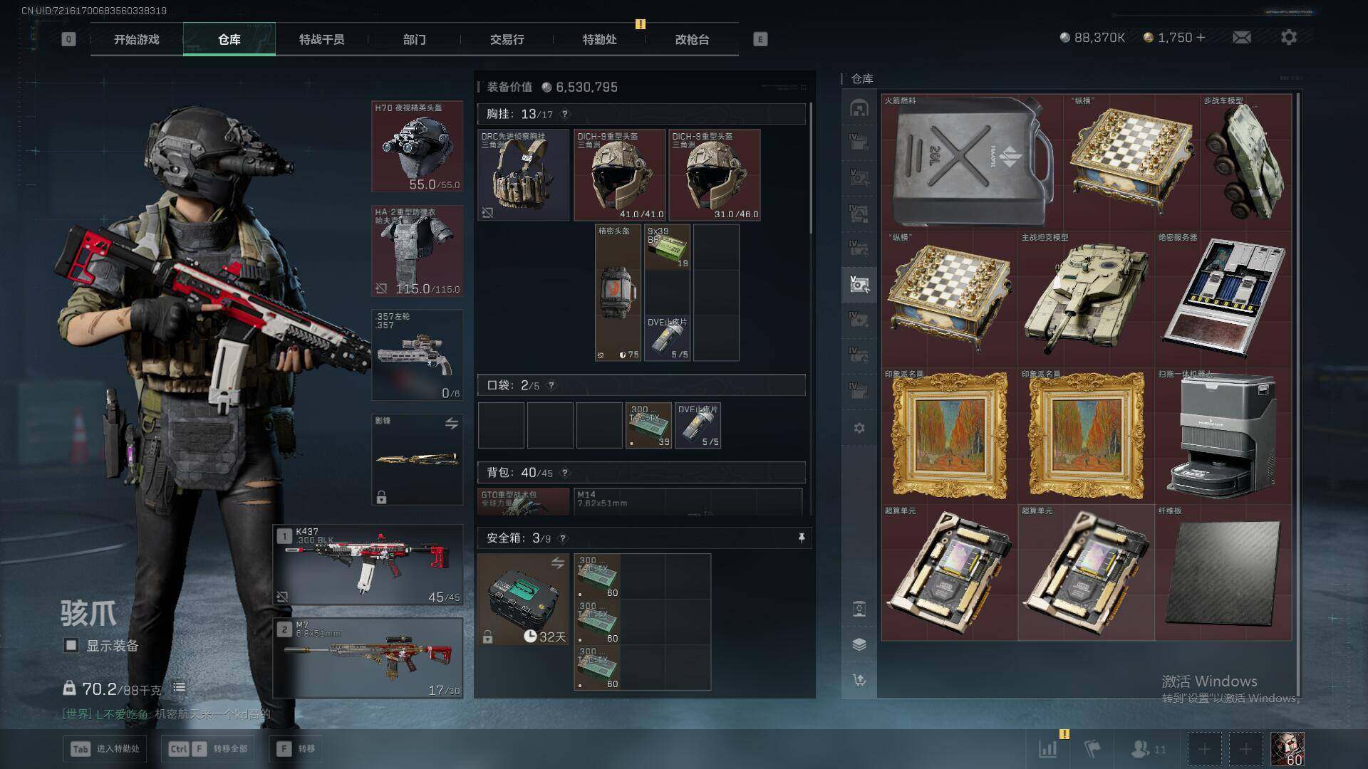 总资产(M):593M/哈夫币(K):88370K/哈夫币(K):88370K/全面战场等级:50_