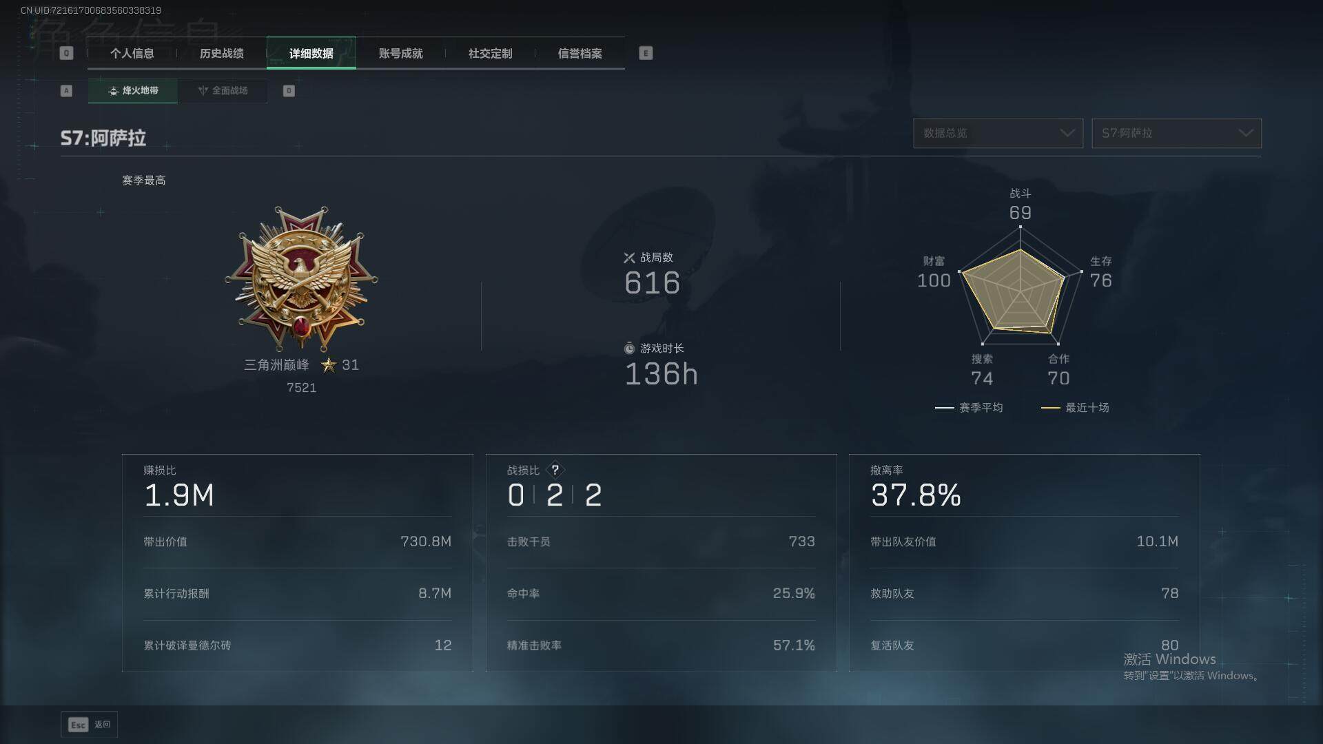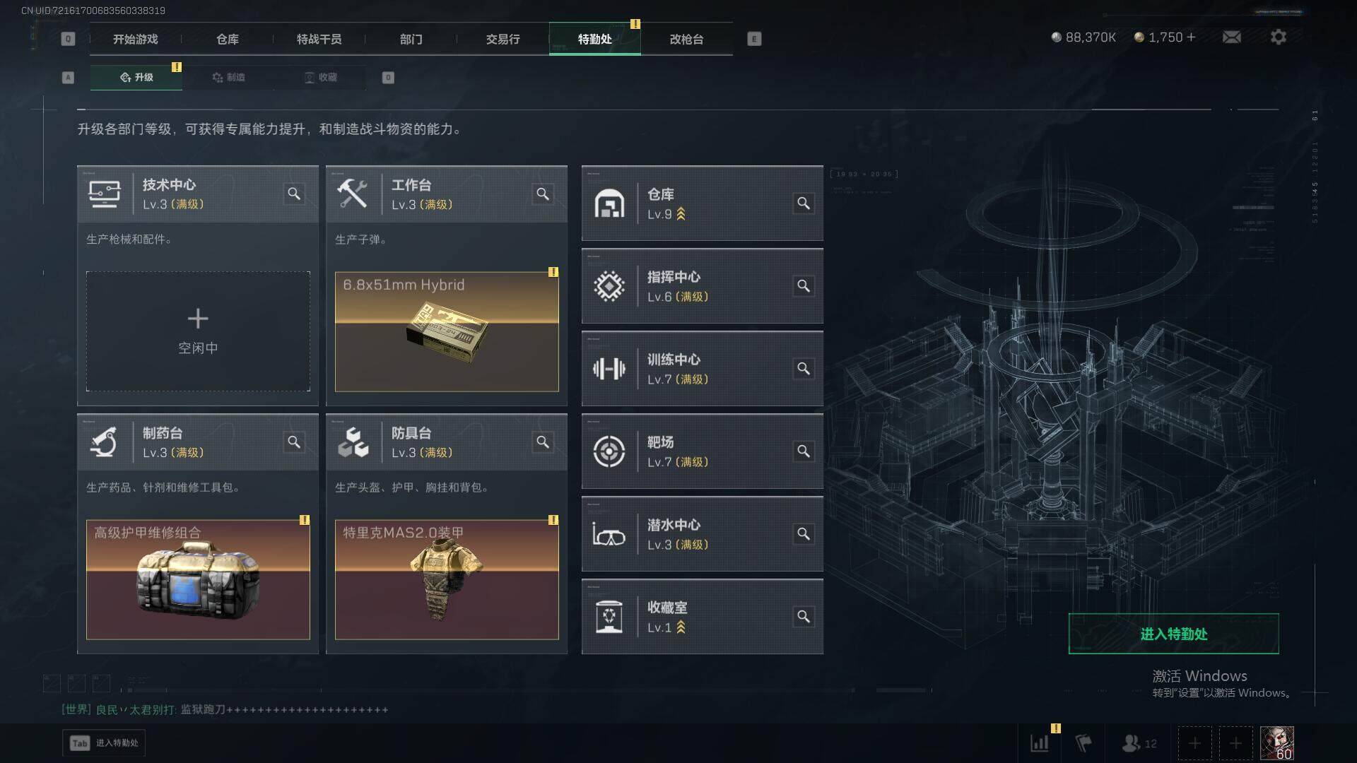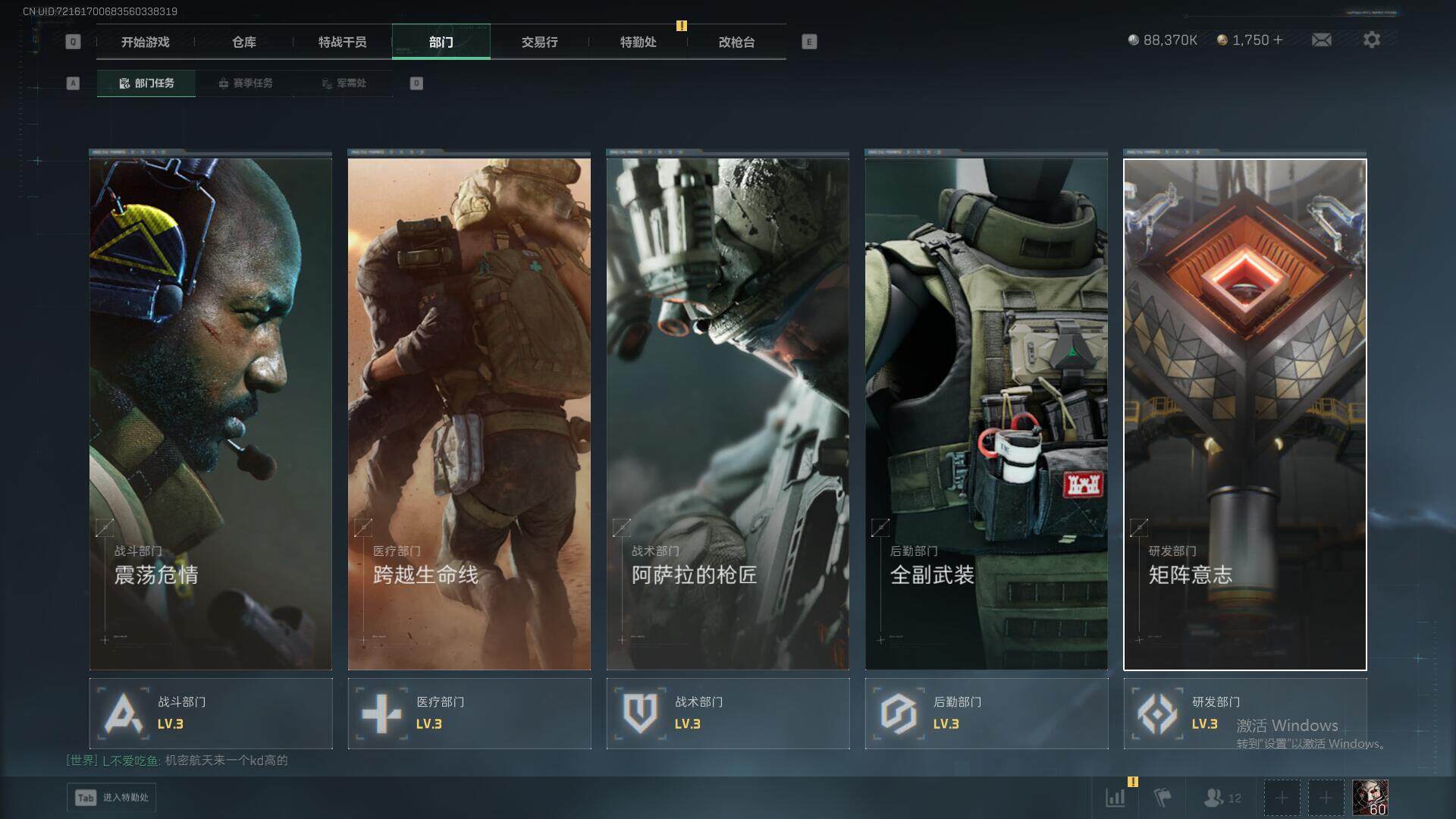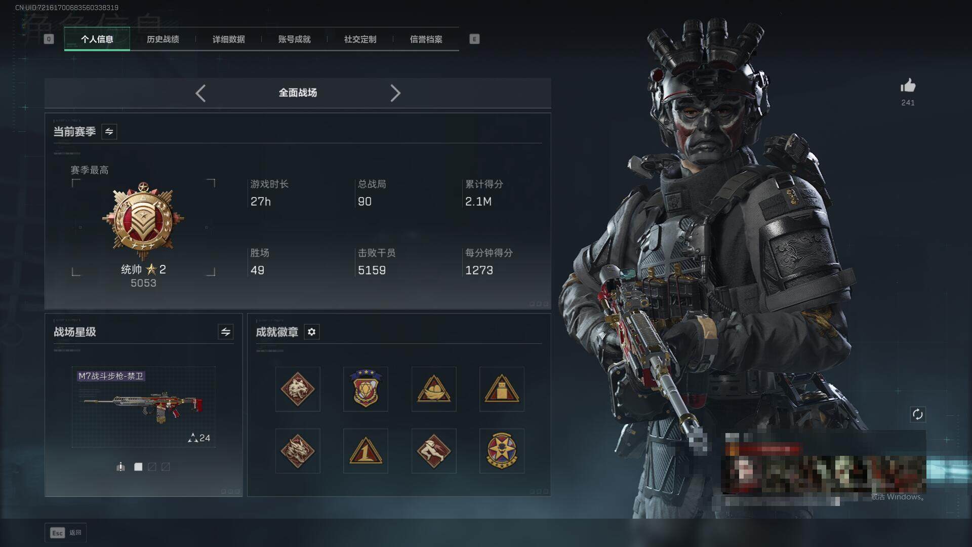 总资产(M):593M/哈夫币(K):88370K/哈夫币(K):88370K/全面战场等级:50_