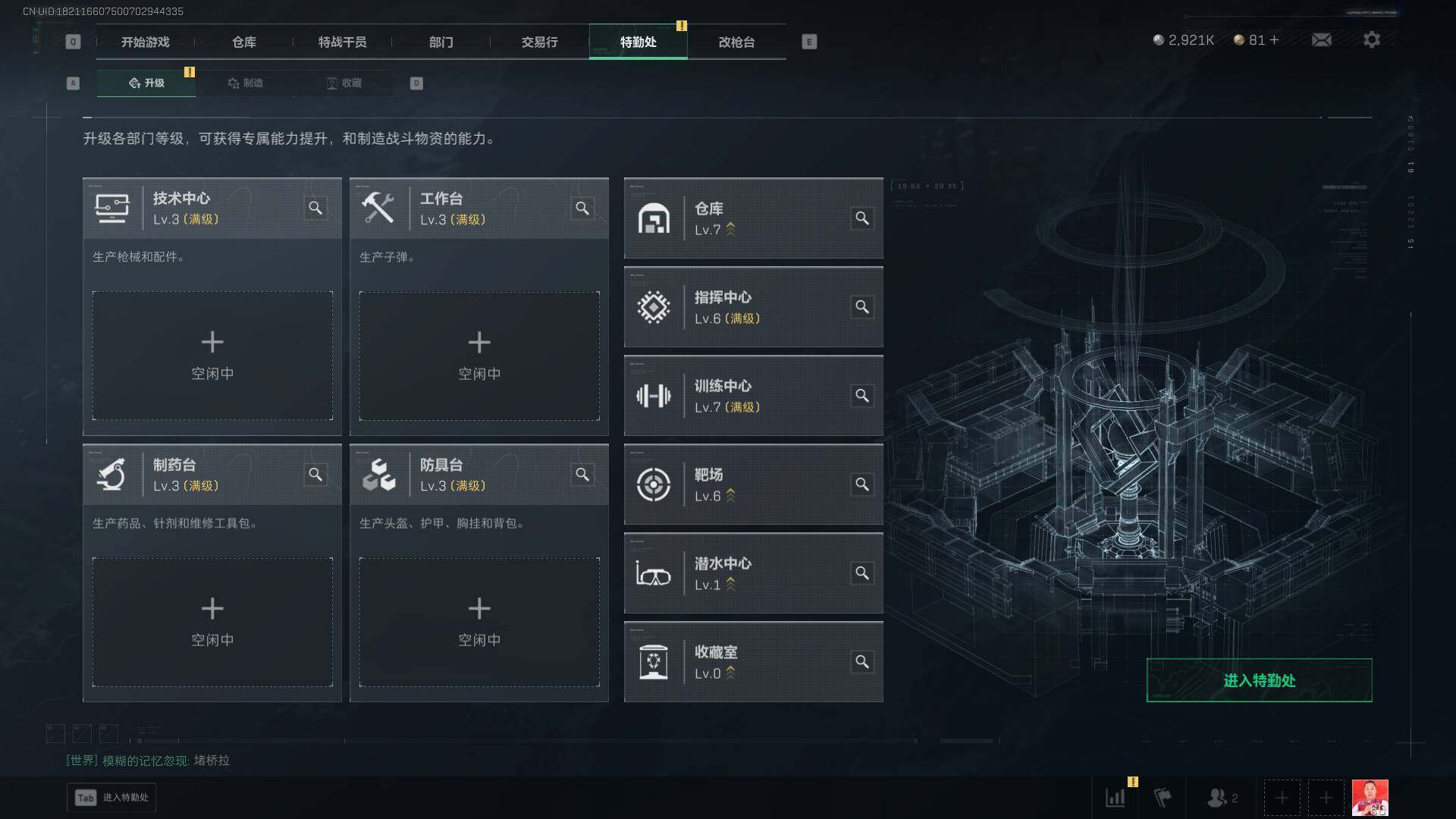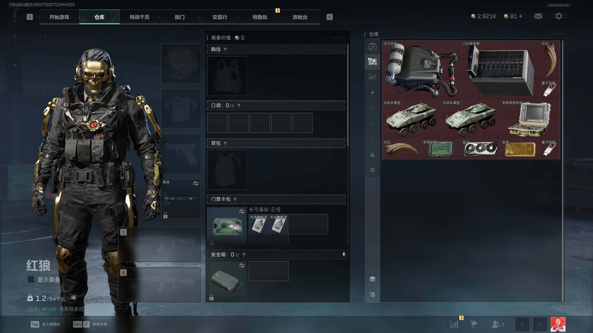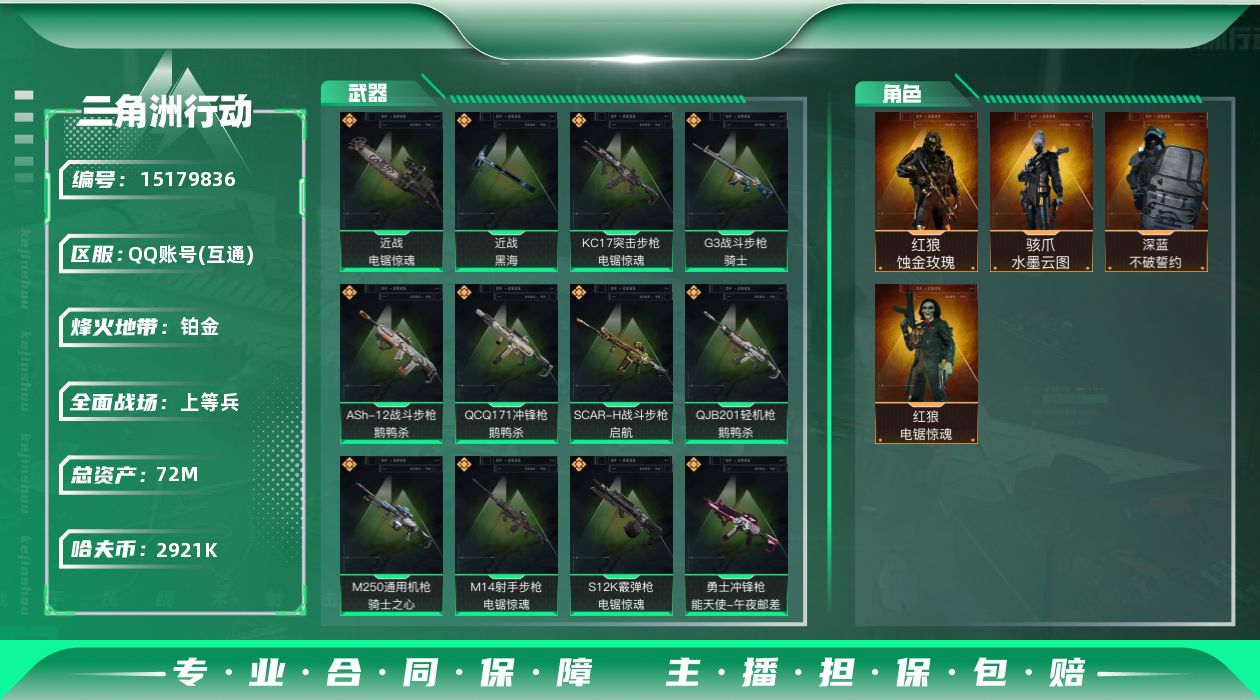 总资产(M):72M/哈夫币(K):2921K/哈夫币(K):2921K/全面战场等级:50_段位: