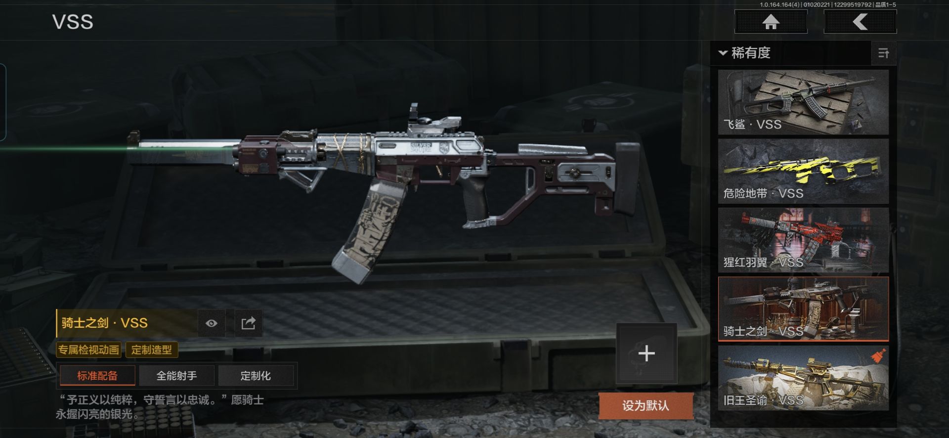MWT4203安卓Q-等级30-仓库价值19.1m-科恩币321k-【套装】 王国卫队礼装:轻装 速降反光·户外运动套装 都市夜影套装 【枪皮】 旗帜·AEK 旧王圣谕·VSS 骑士之剑·VSS 旧王圣谕·QBZ191 【近战武器】 赢家匕首