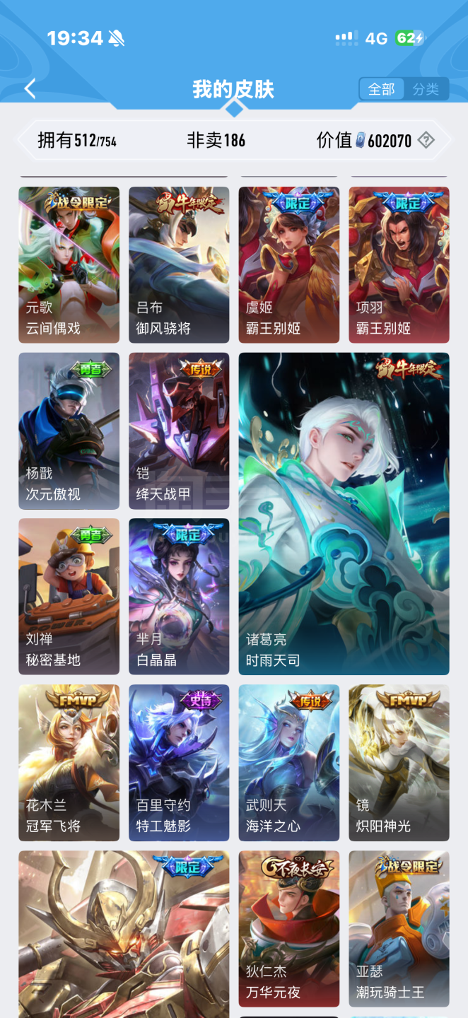 皮肤512 英雄128 非凡王者 荣耀典藏12 珍品传说3 传说58 其他皮肤215-V10 11典藏511皮肤11典藏58传说2珍品