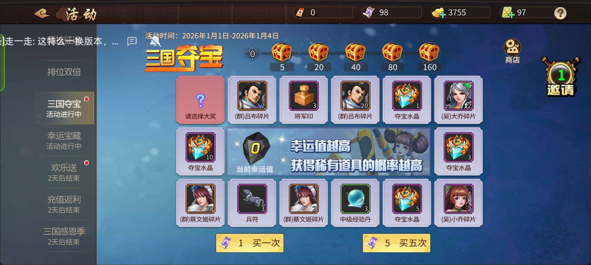马上可以抽袁术,100抽奖卷,援军不错,兵法够用,不用再充钱