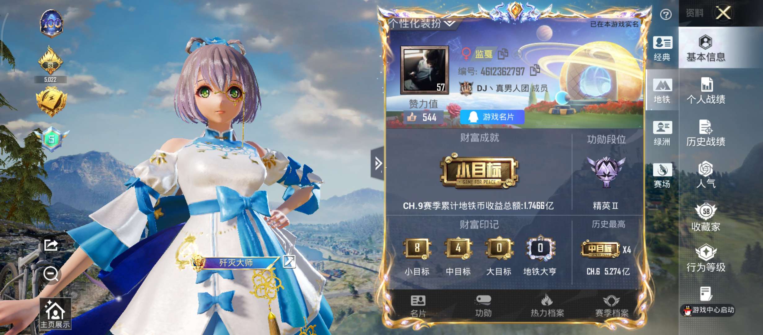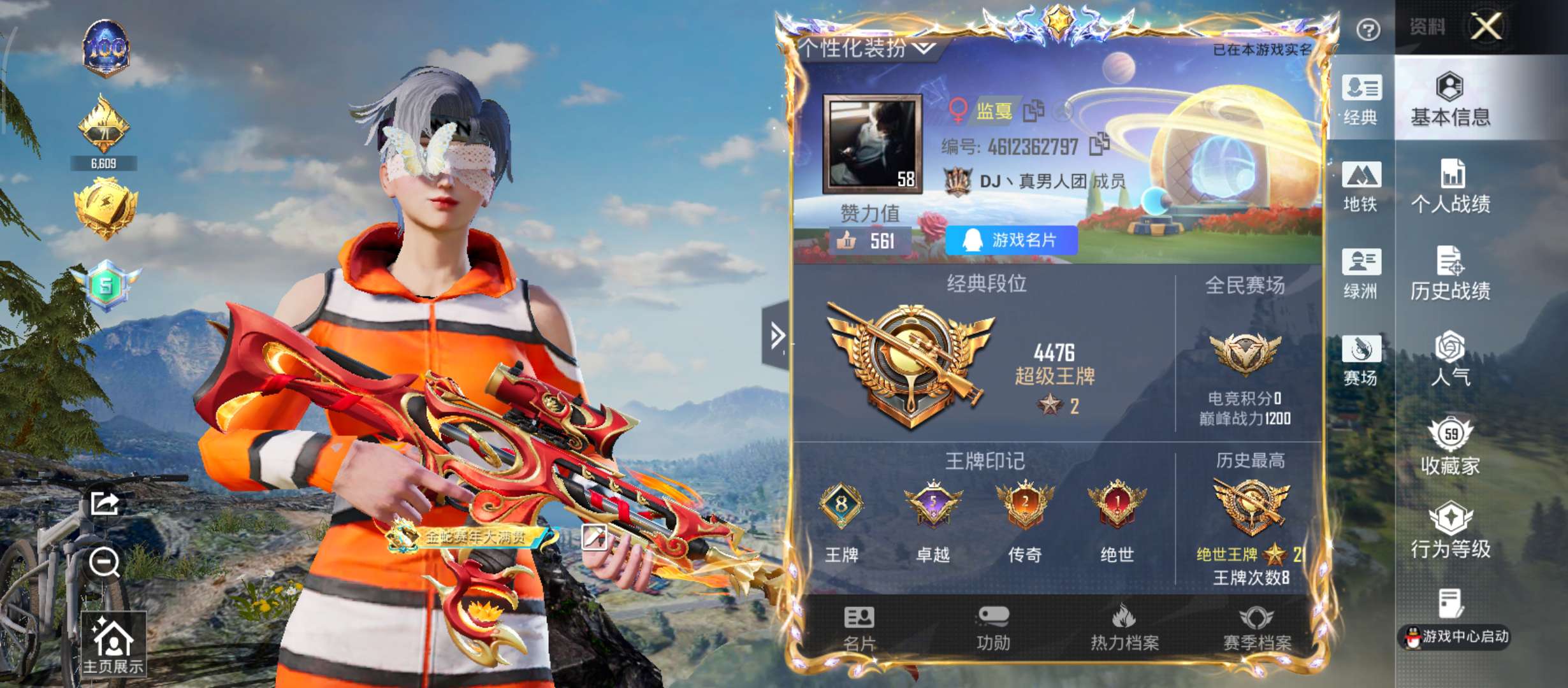连体号,王者两个荣耀印记三个标,六七个传说皮,和平57级珍藏家地铁爆仓天赋满级。