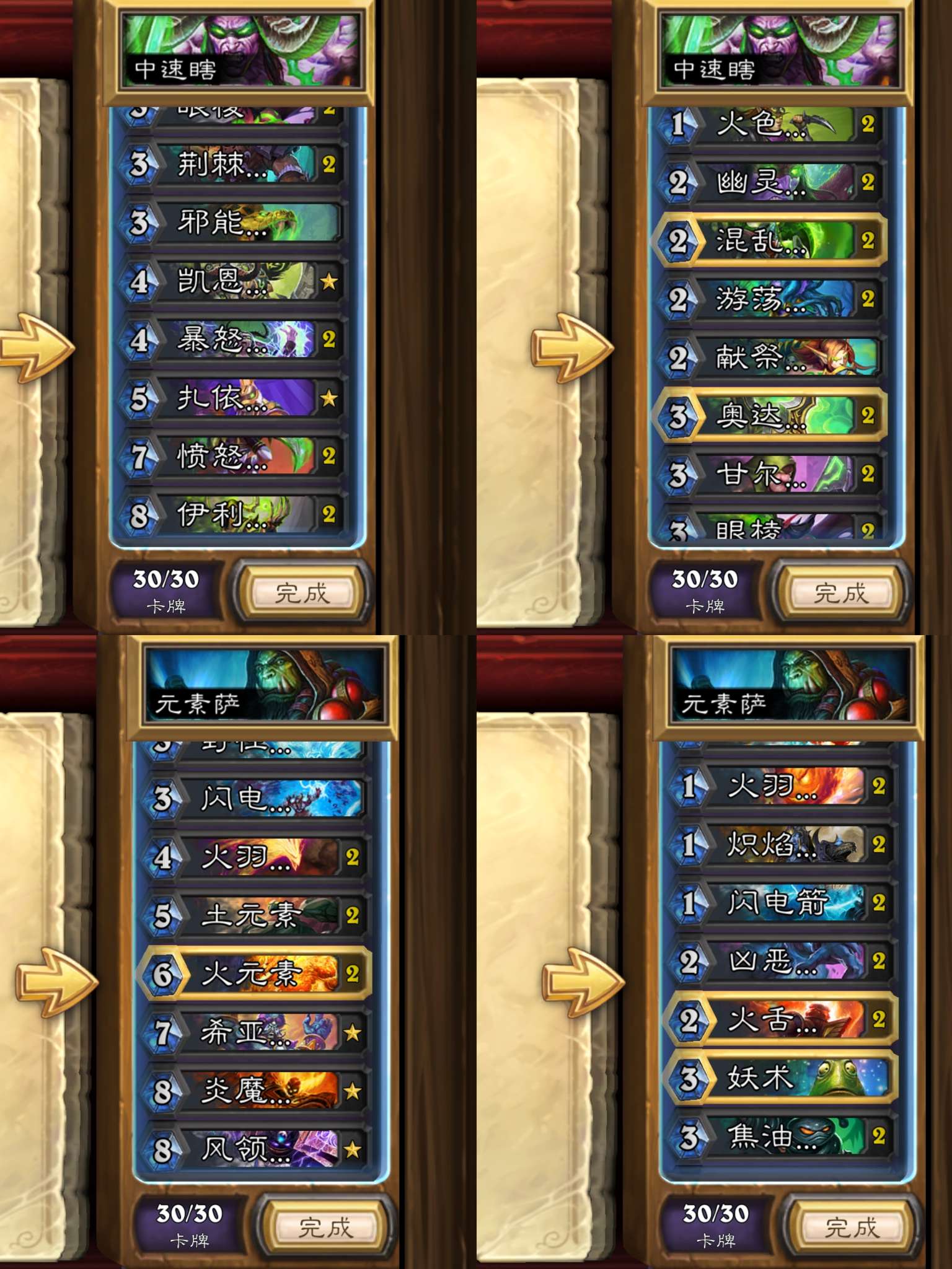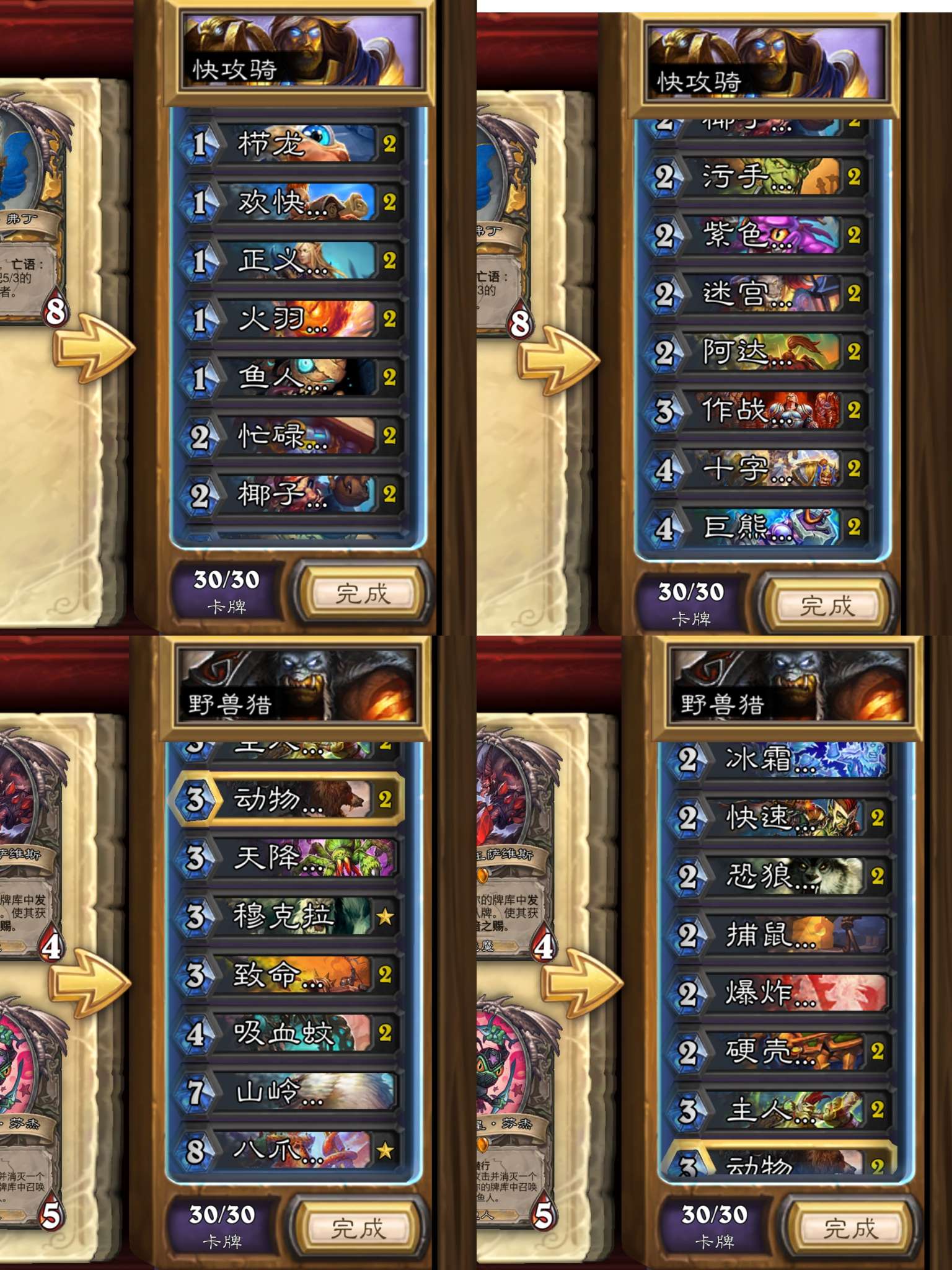 10套卡组,光环骑,龙战等。元素法,快攻骑法术法,野兽猎,残骸dk,剽窃贼,中速瞎,元素萨。