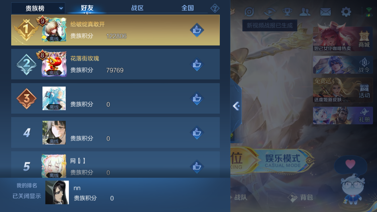 【王者荣耀】用户045*****f