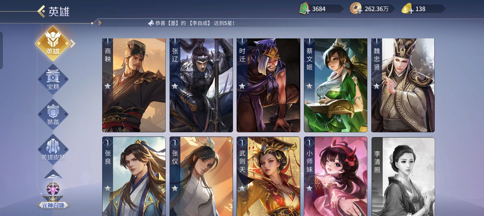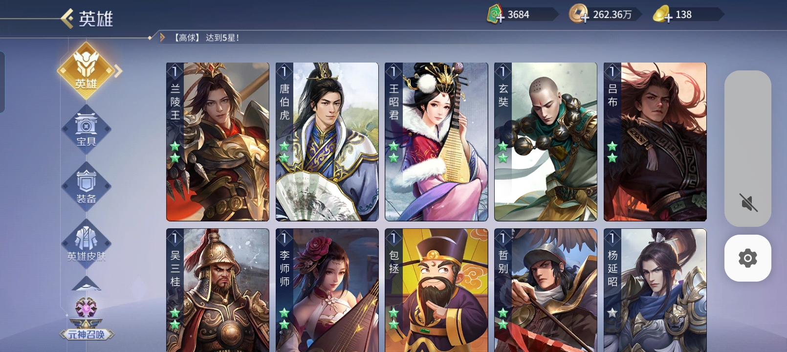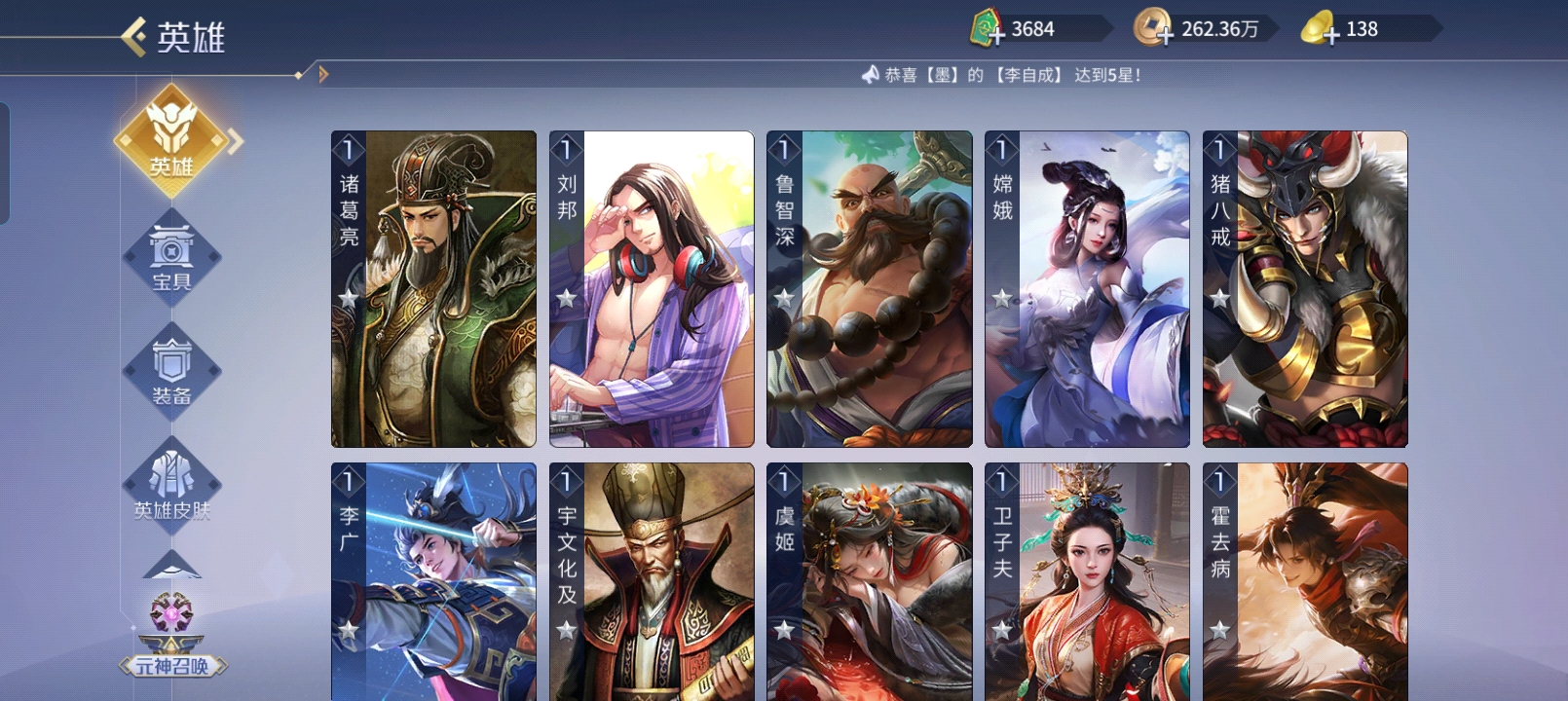 五星武将数量: