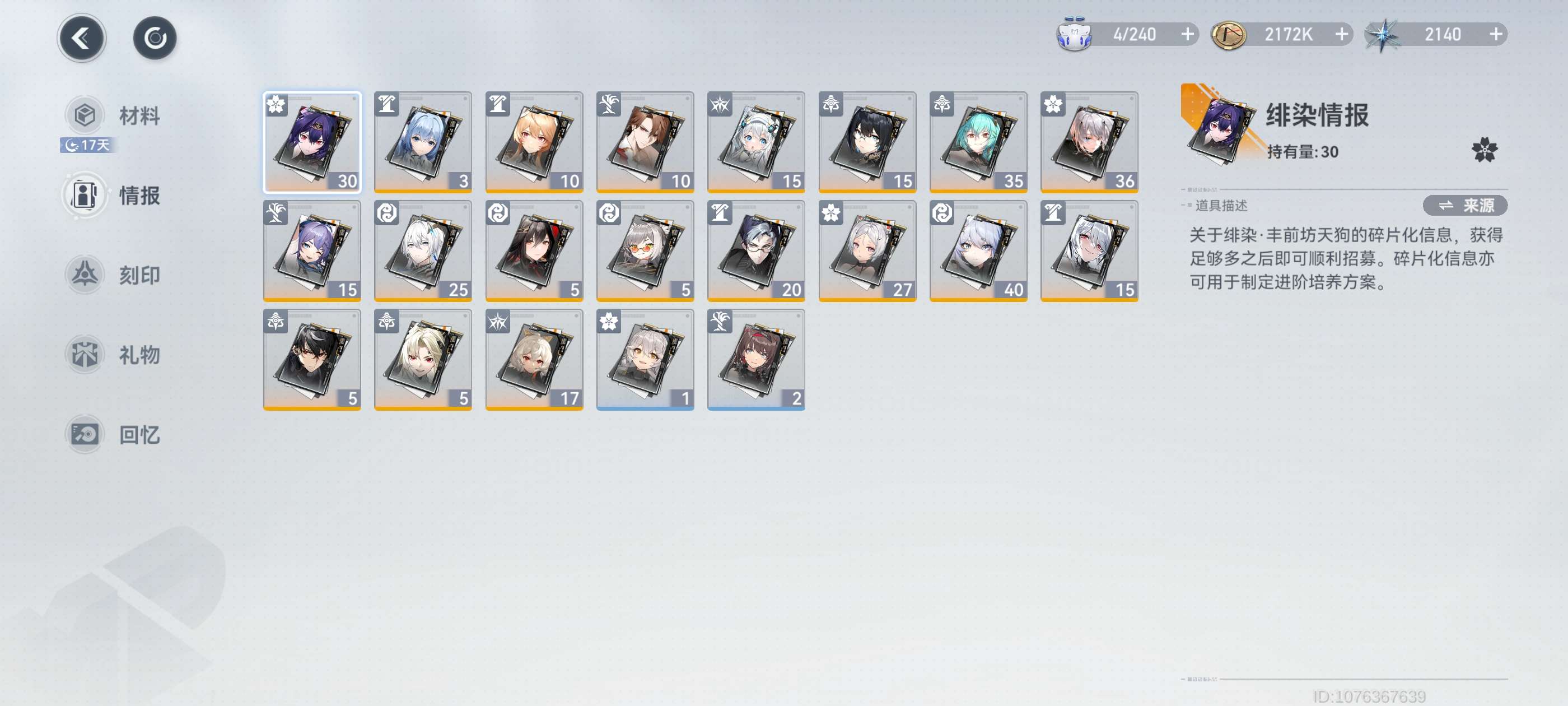 没时间玩了,各个阵容都是最新角色,最近版本角色全齐,仓库里还有两个自选箱,资源超多,氪金4干,多氪金