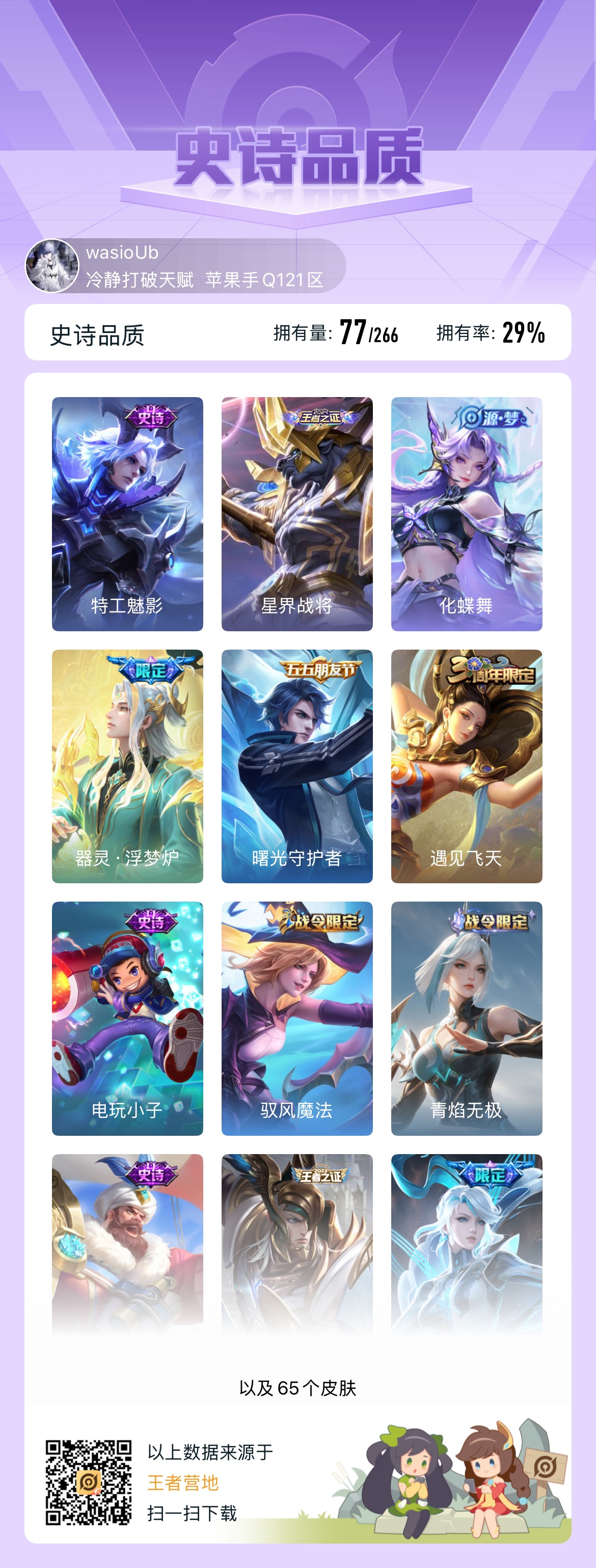 皮肤284 英雄127 无双王者 荣耀典藏1 传说22 其他皮肤104-万战澜四个省标