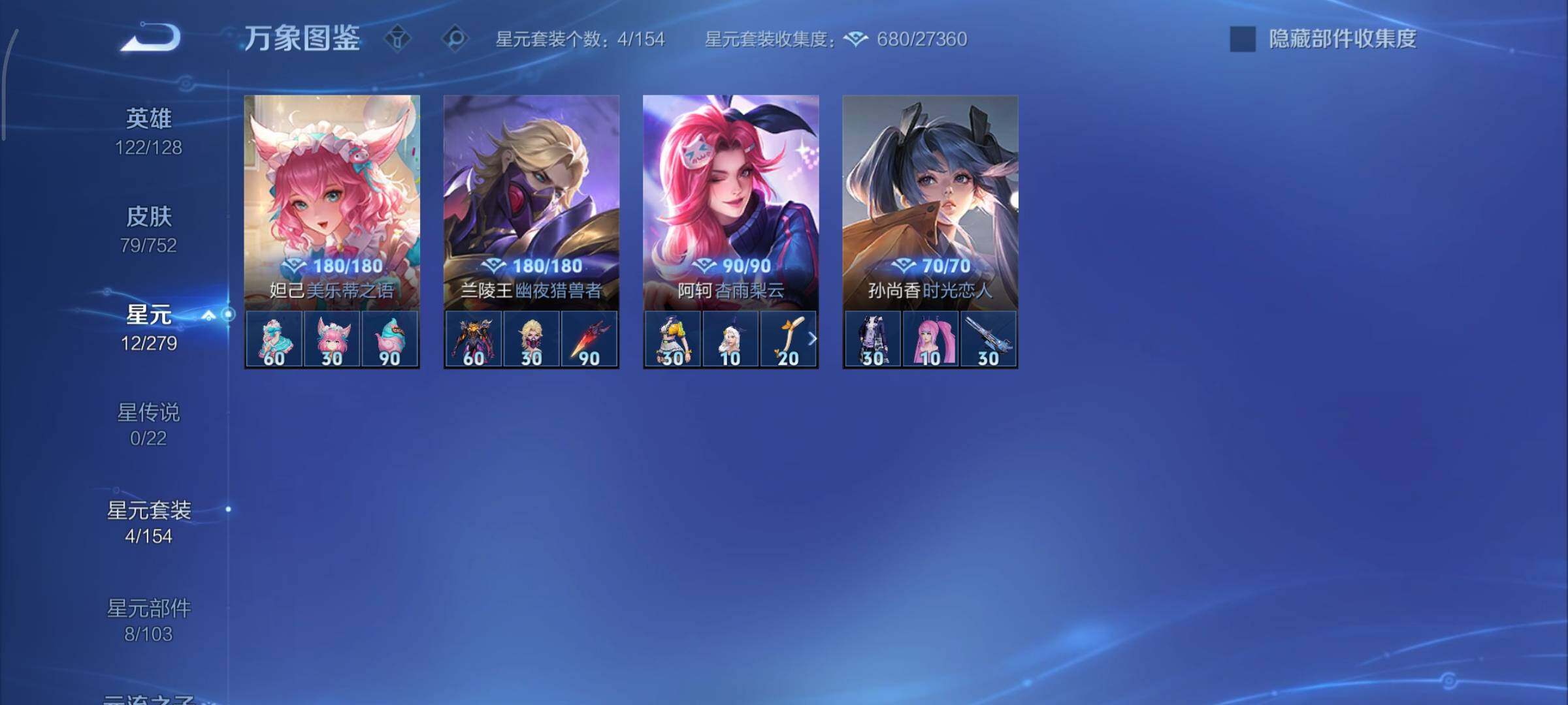 可换绑【铠典藏 性价比优质号】 3按键 4王者印记 五级铭文80 可二次KK7333 安卓Q-V1-79皮肤-1典藏皮肤-4传说-17史诗【英雄全皮】:孙权全皮【荣耀典藏】:铠银白咏叹调【传说皮肤】:后羿神树通天,桑启鸣野蒿,后羿黄金射手座,宫本武藏地狱之眼【限定皮肤】:狄仁杰阴阳师,百里玄策原初追逐者,鲁班大师探海日志,桑启海盐诗旅【赛季限定】:百里玄策原初追逐