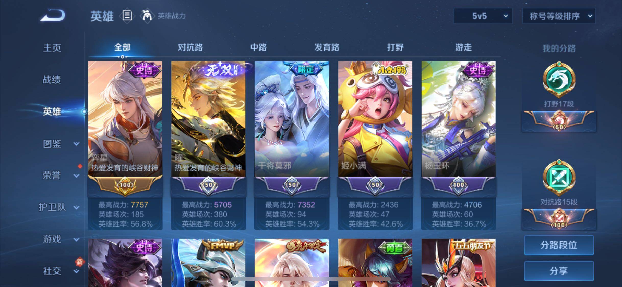文-贵族积分2w【贵族7】【1无双·5传说·5按键】【因赛季更新游戏段付以上号为准!】