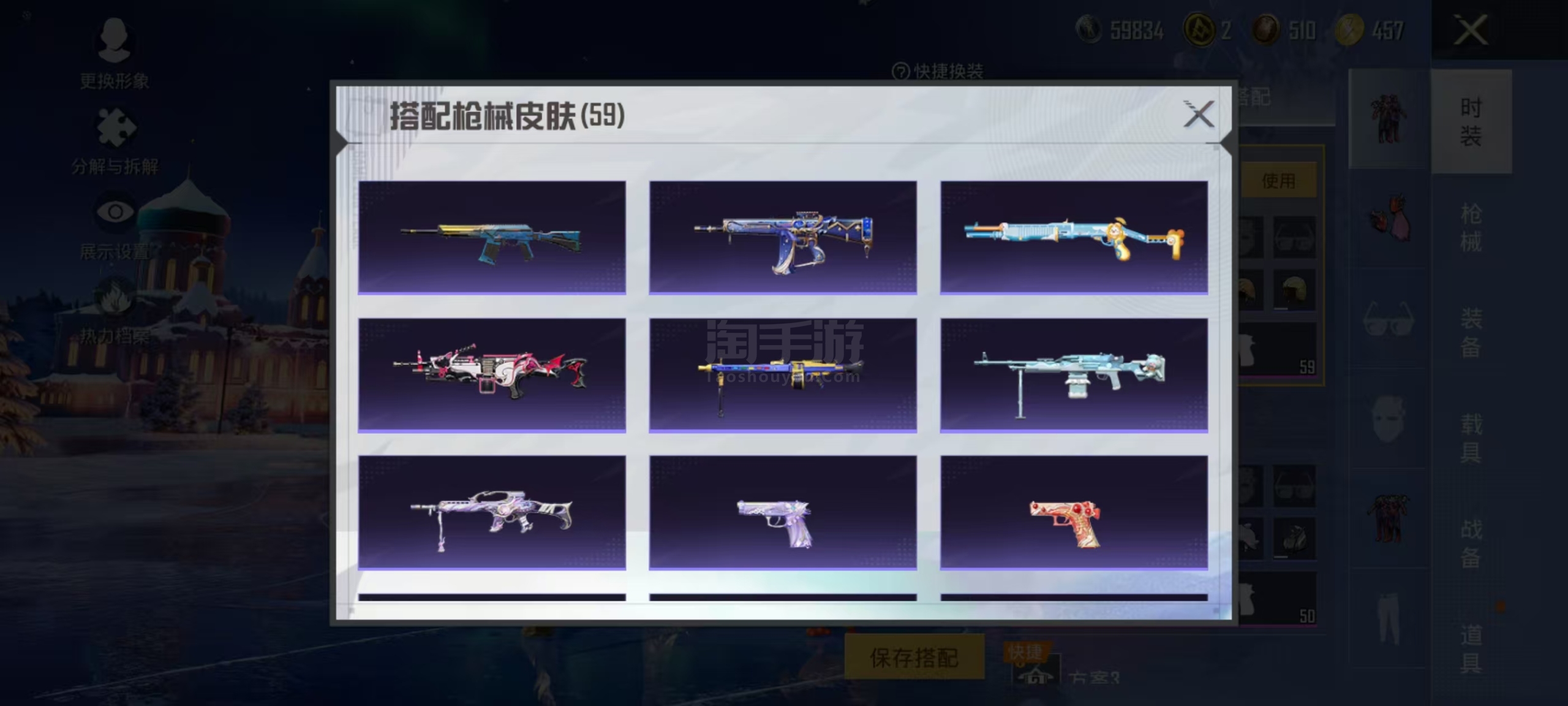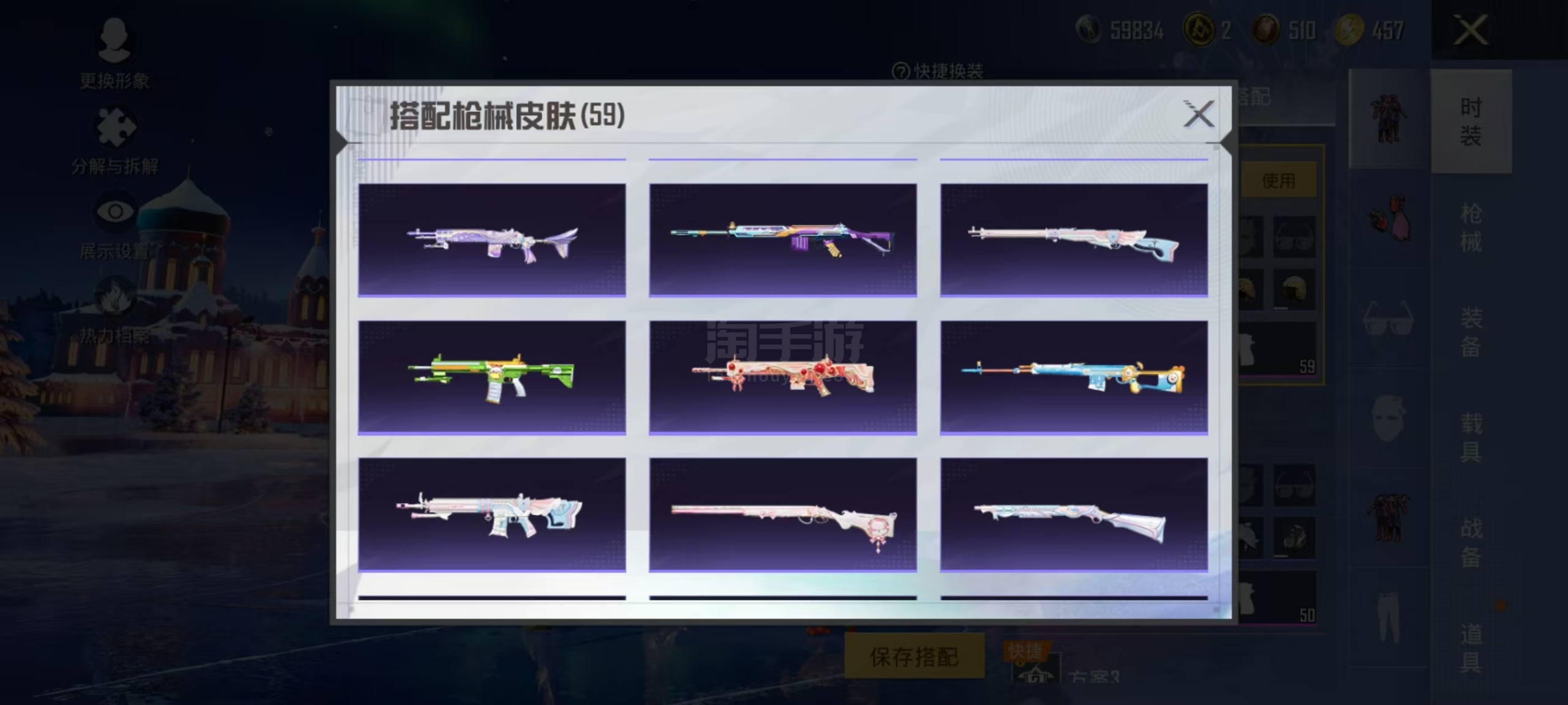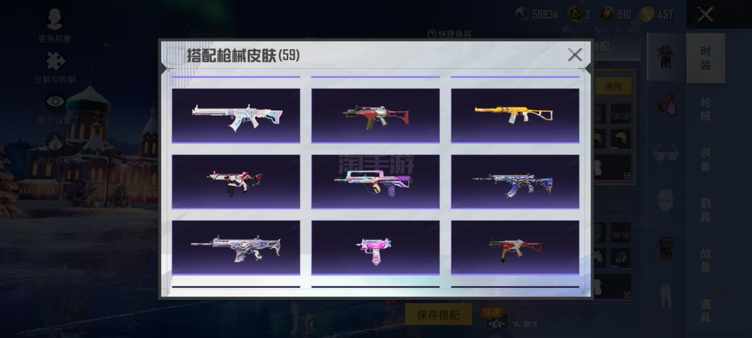 两个神装4粉装2个九级枪3个车灵猫M4 6级还有身法星际m4