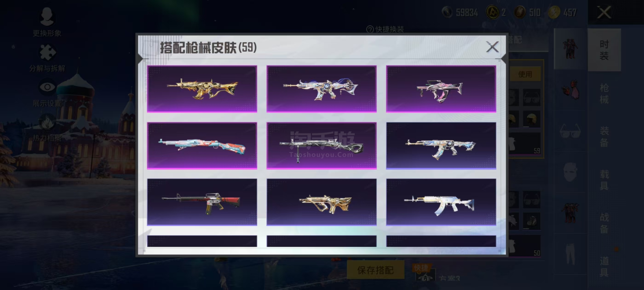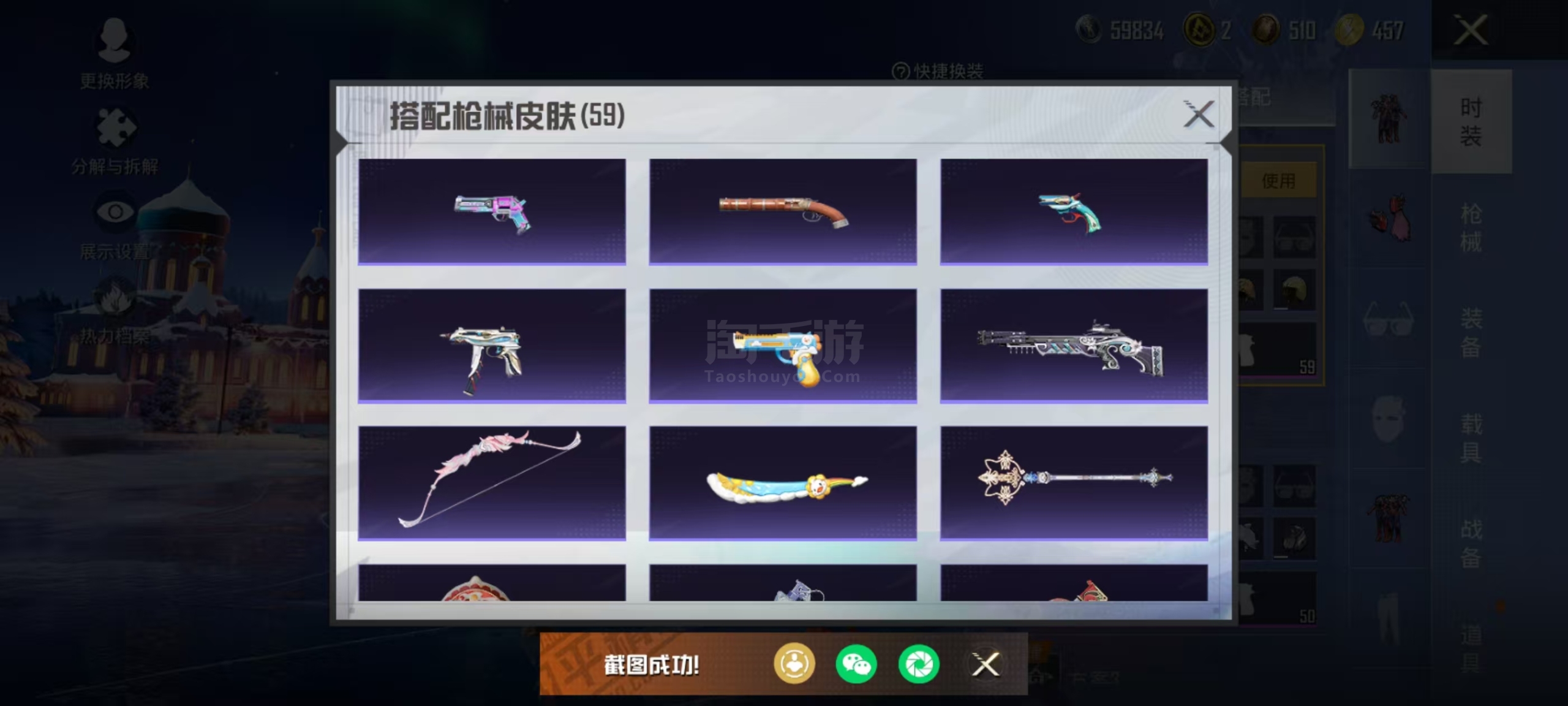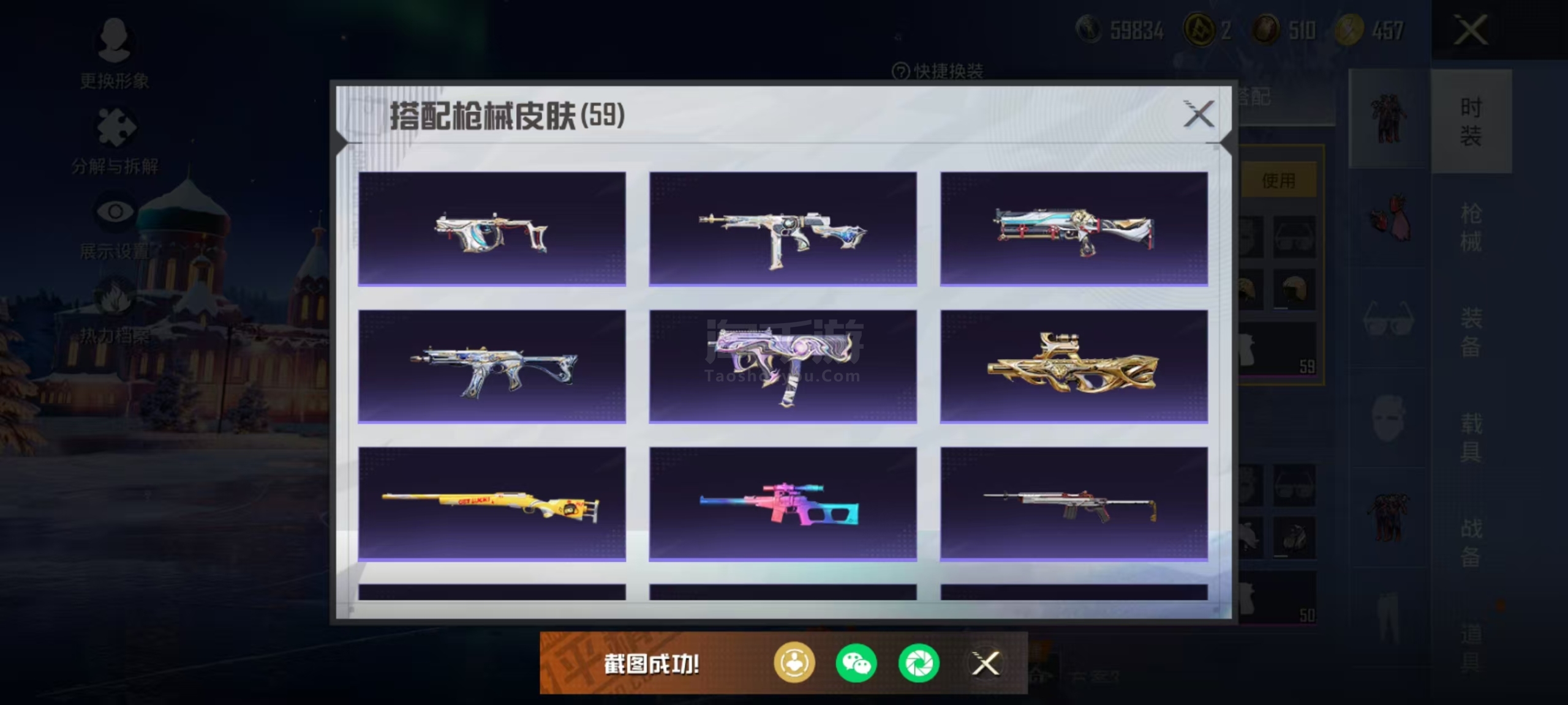 两个神装4粉装2个九级枪3个车灵猫M4 6级还有身法星际m4