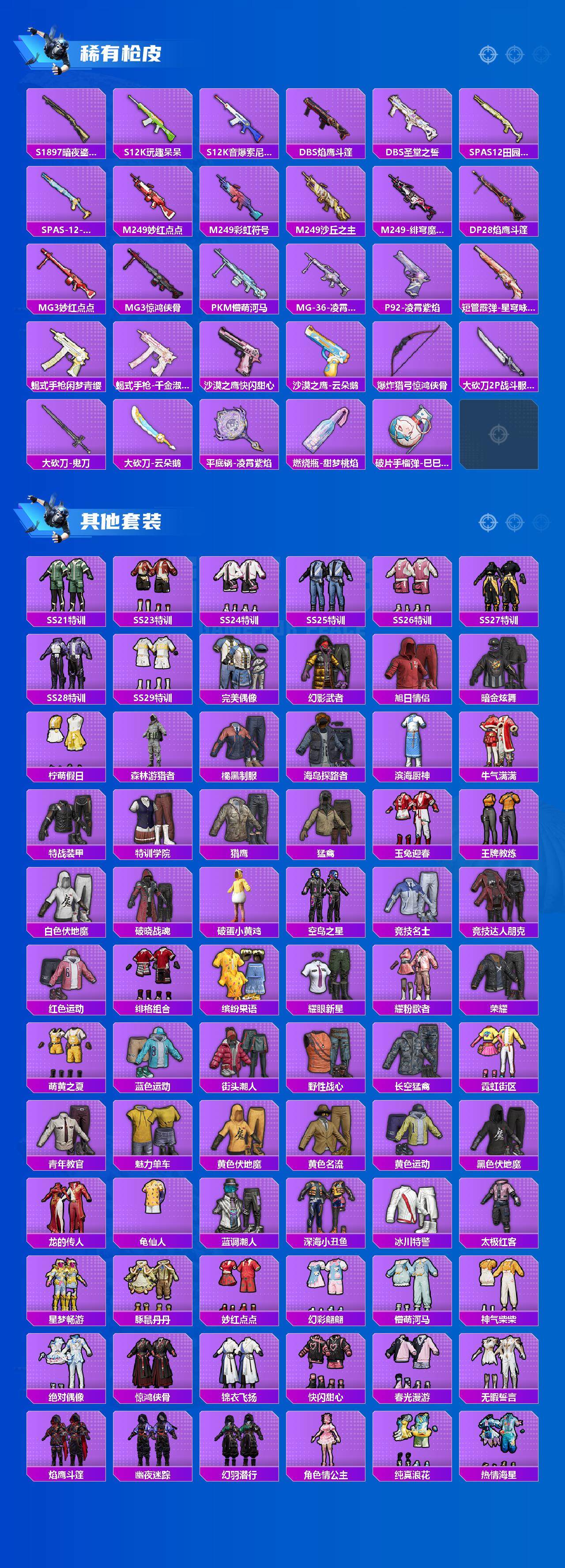 【粉色枪皮等级】:SCAR-L-锦绣绵绵(五级),M416-电玩时刻(五级),GROZA-镜光银凌(五级),AUG-暖羊咩咩(五级),UMP