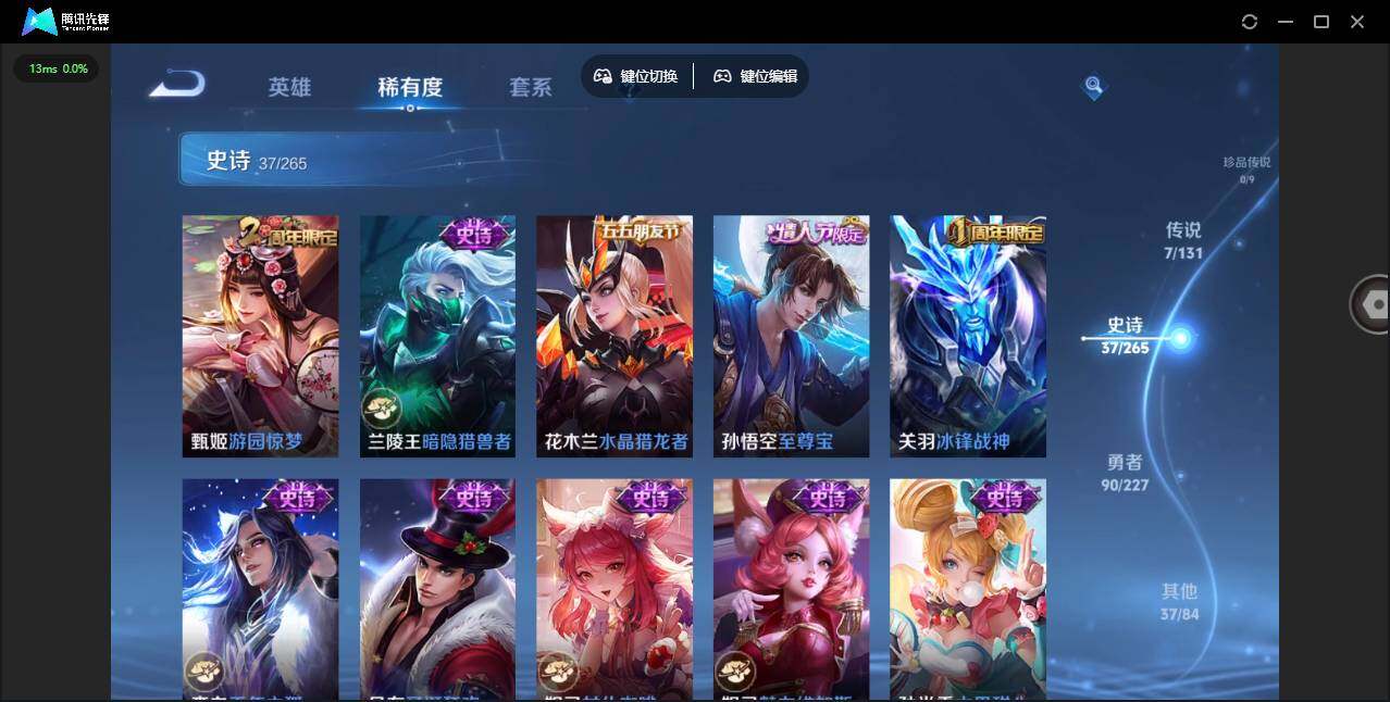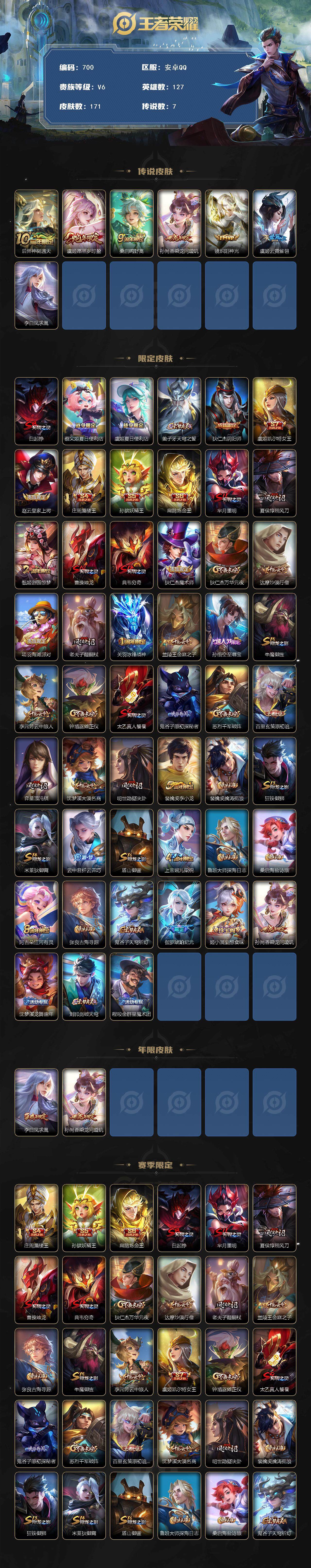 1878590 王者荣耀账号 安卓Q-V6-最强王者段位-127英雄-171皮肤-7传说-37史诗