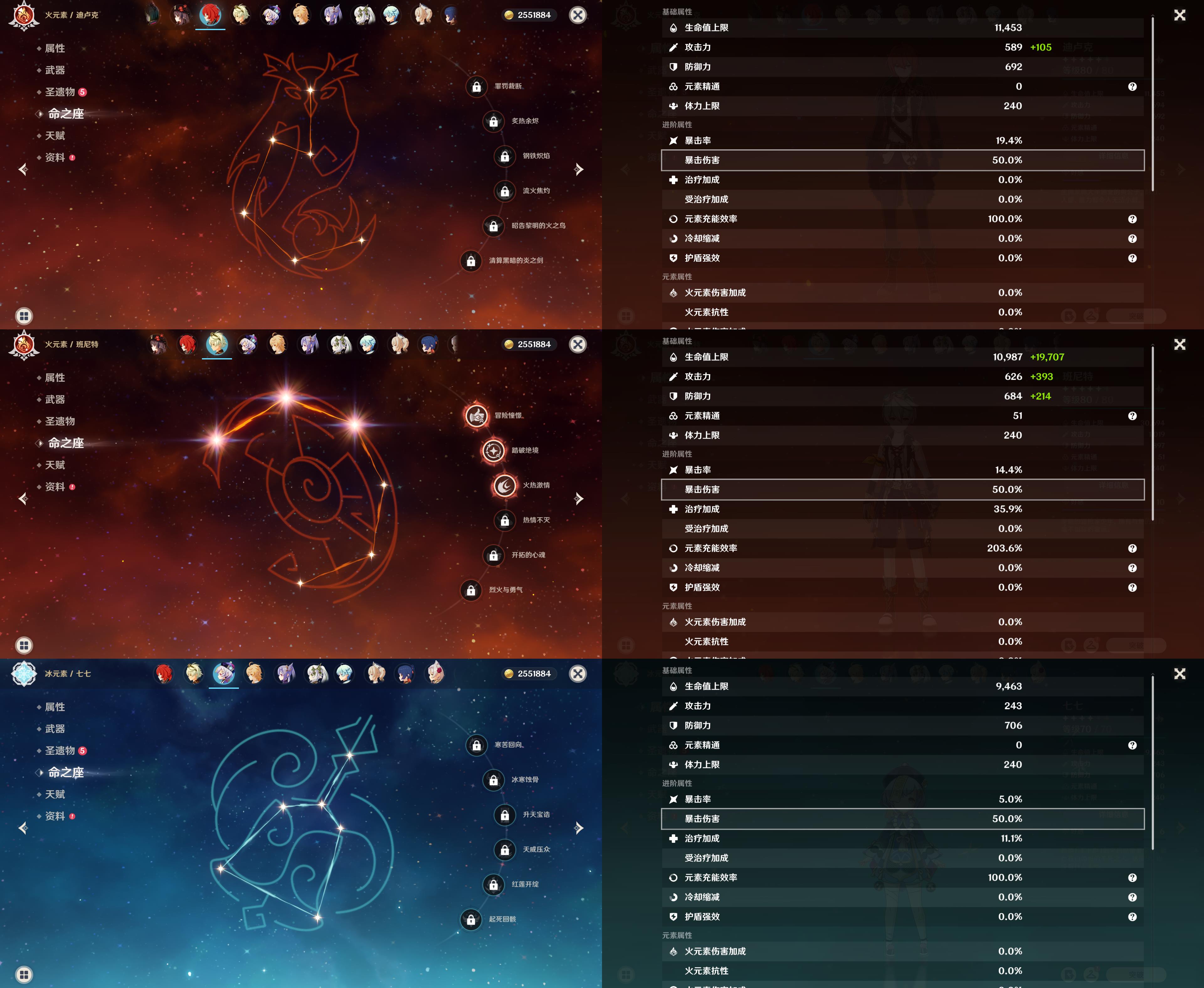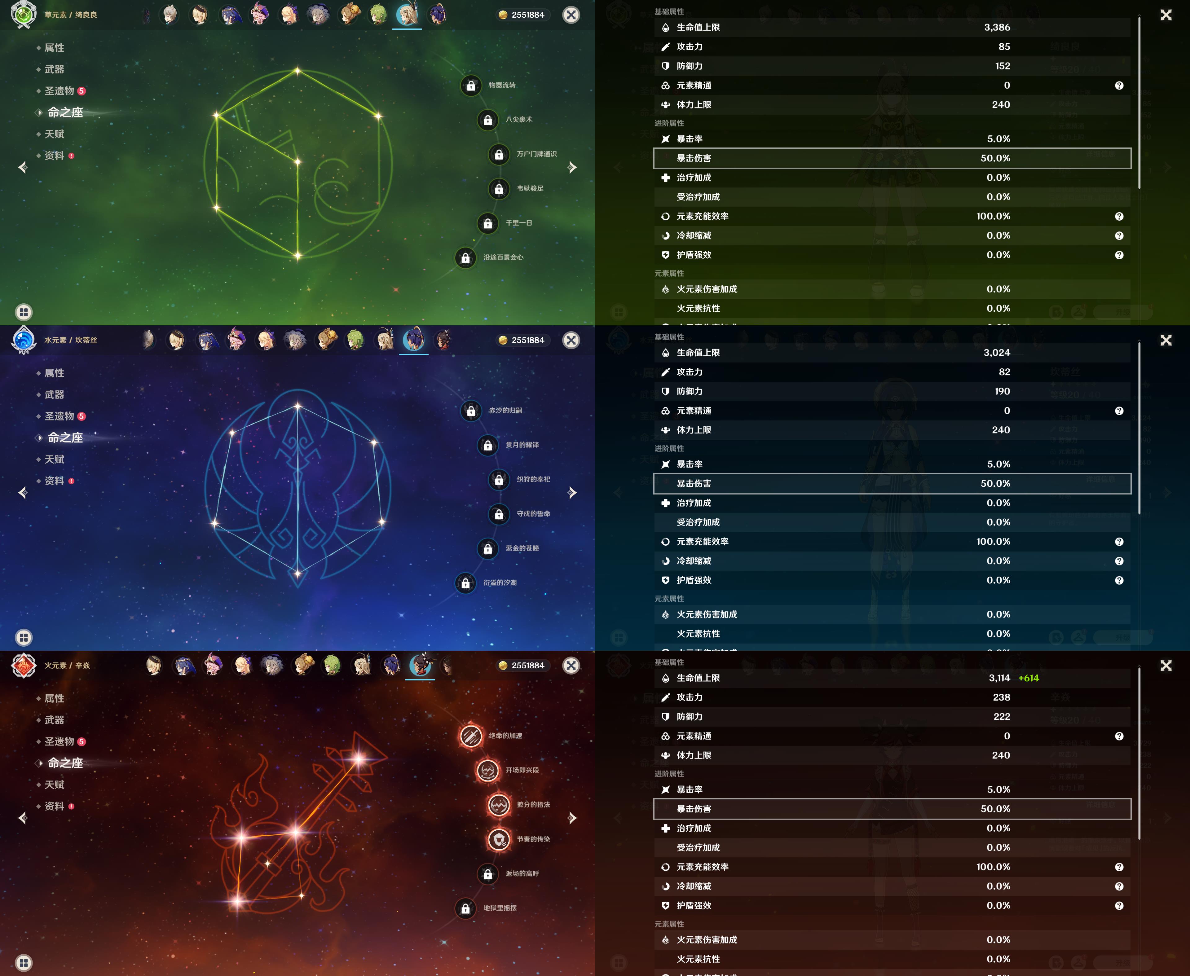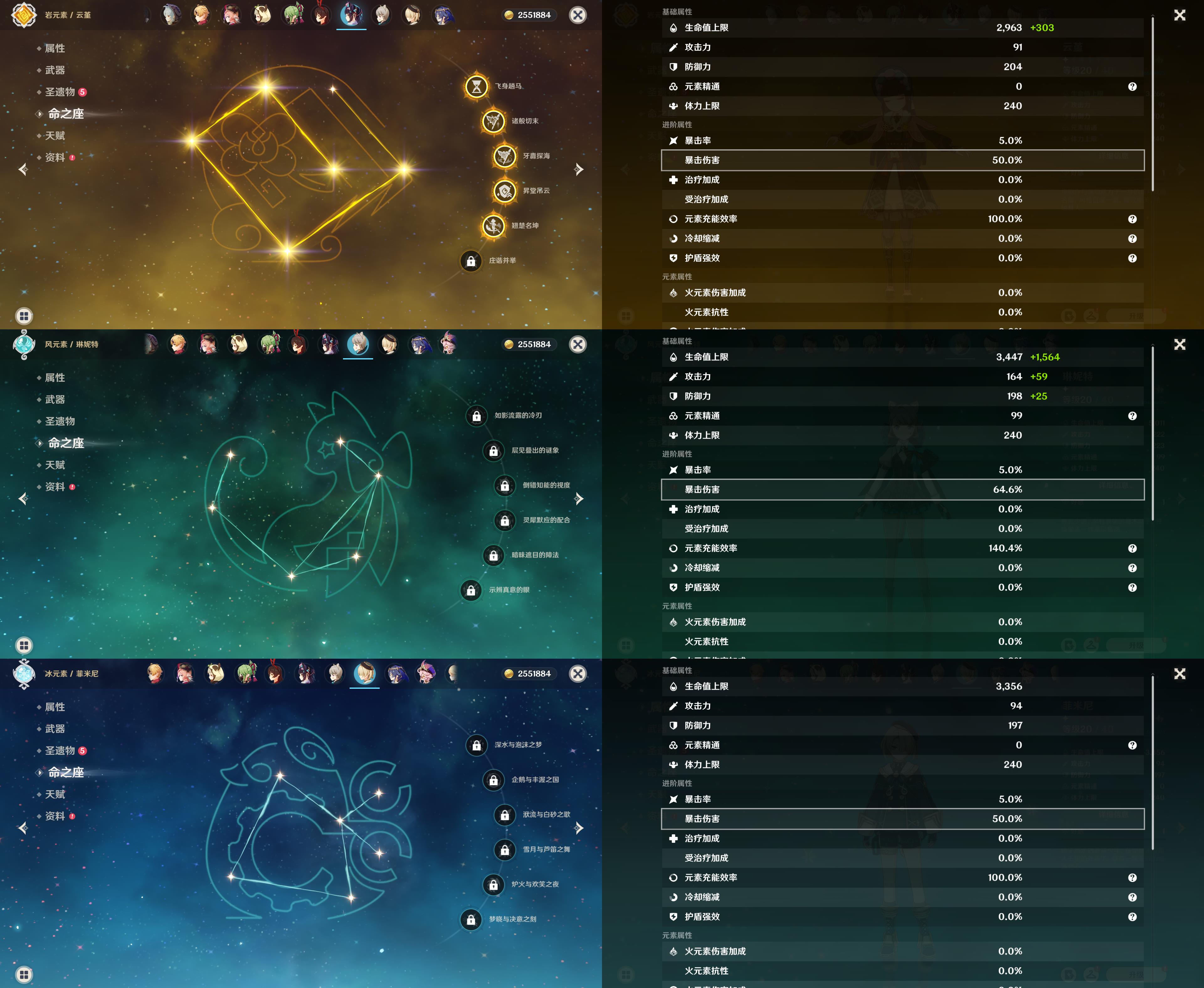 【YS1034】55级/10黄/女主/8个五星角色/2个五星武器/魈/钟离/雷电将军/提纳里/胡桃/迪卢克/七七/刻晴/和璞鸢/天空之刃