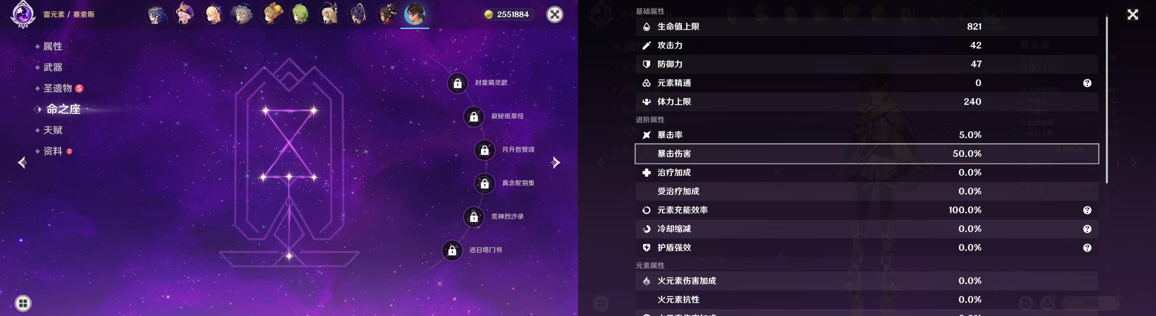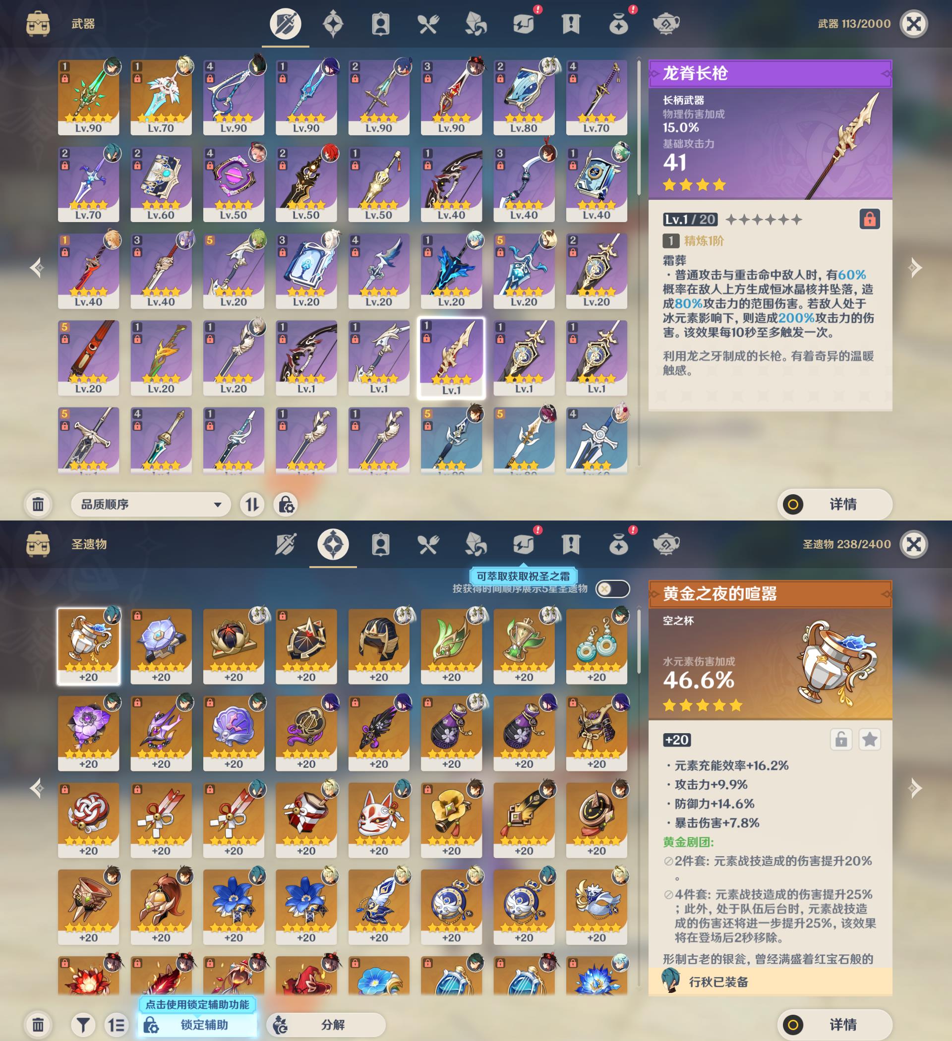 55级/10黄/女主/8个五星角色/2个五星武器/