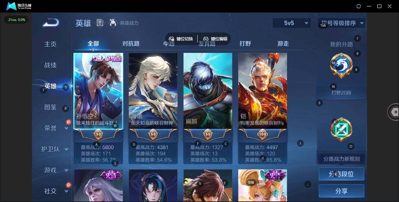 贵族等级: V5 英雄数: 80 皮肤数: 78 荣耀水晶: 星域神启 星传说