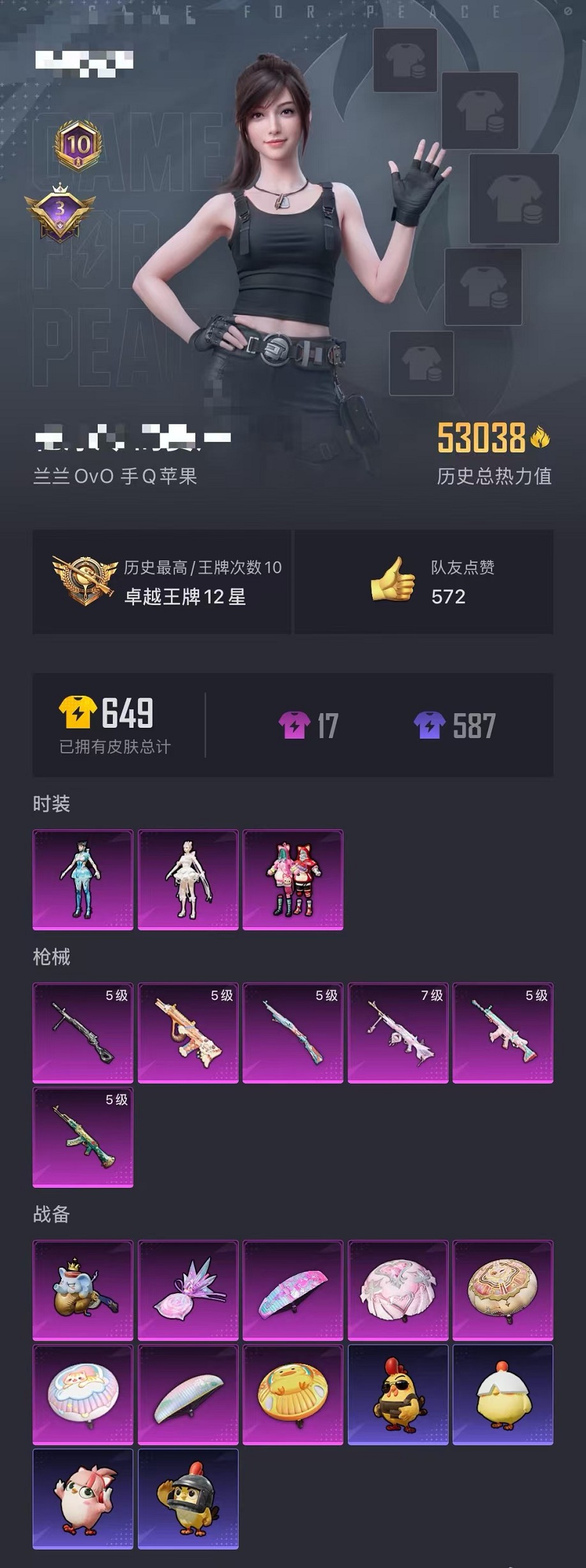 677-【千金淑猫、3粉装6特效枪、可秒换绑】、苹果Q区-53038热力值-10印记-149套装-165枪皮、【3粉装】、俏皮狐尾、角色-千金淑猫、角色-异瞳寒姬【6特效枪】、SCAR-L-锦绣绵绵(5级)、AKM-绿萝繁花(5级)、PKM-江南烟雨(7级)、Kar98K-巳巳如意(5级)、DP-28-豹影疾电(5级)、AUG-暖羊咩咩(5级)【37热门】、M416-蓝色火焰、GROZA-异彩先驱、AUG-怪笑疯兔、长空猛禽、甜蜜熊情侣、牛气冲天、霓虹街区、懵萌河马、浪漫天命、破蛋小黄鸡、激萌罗