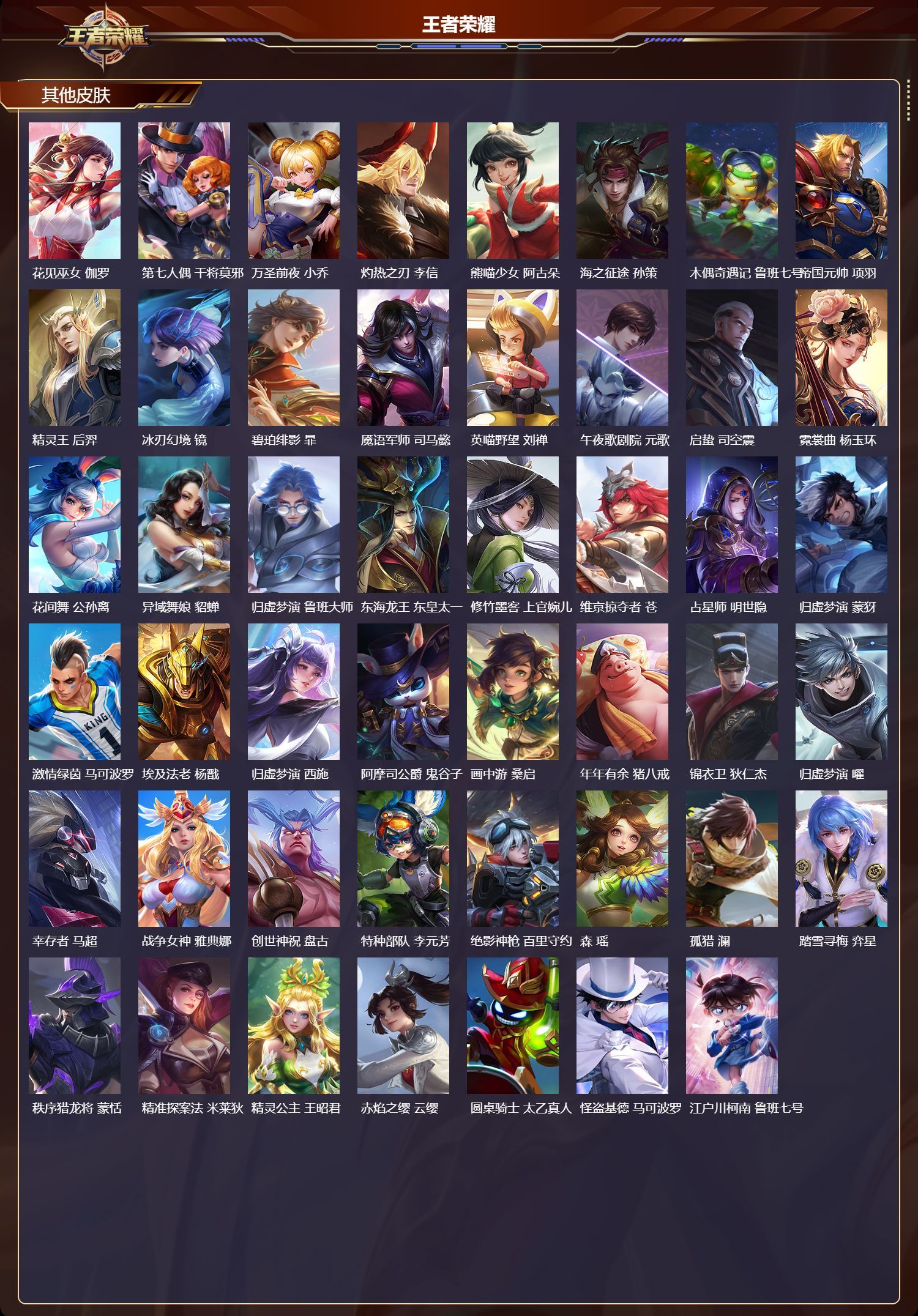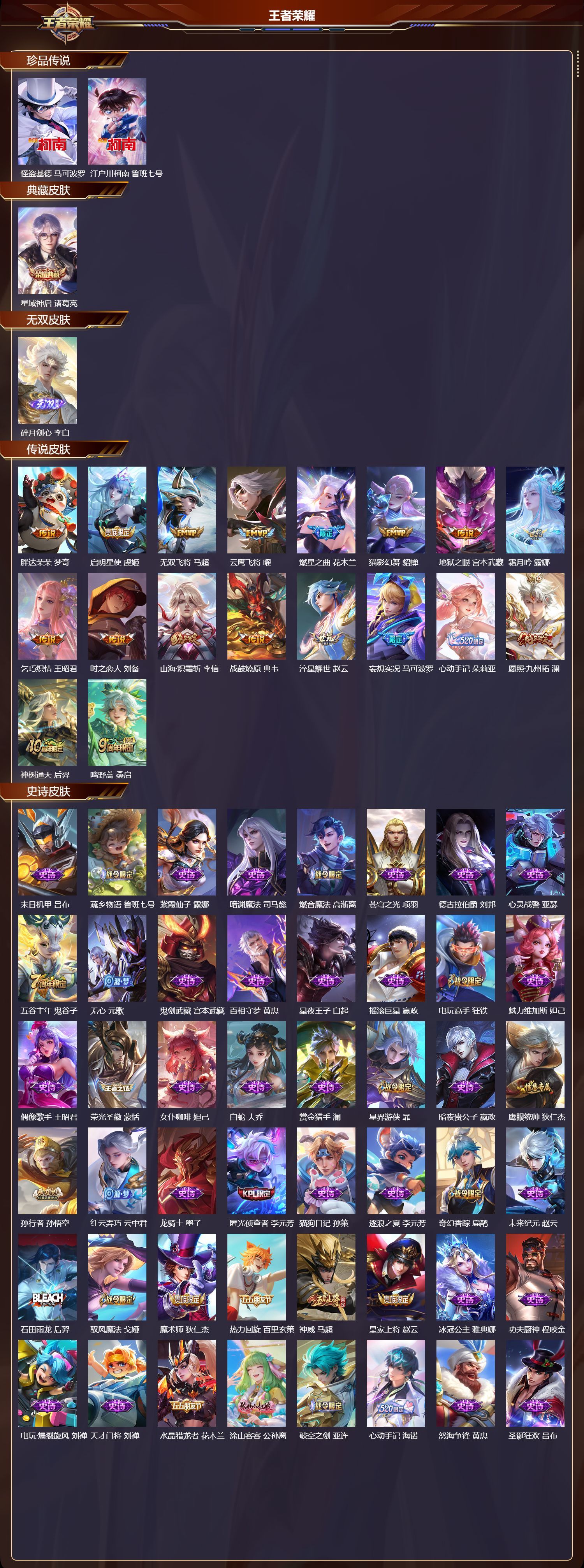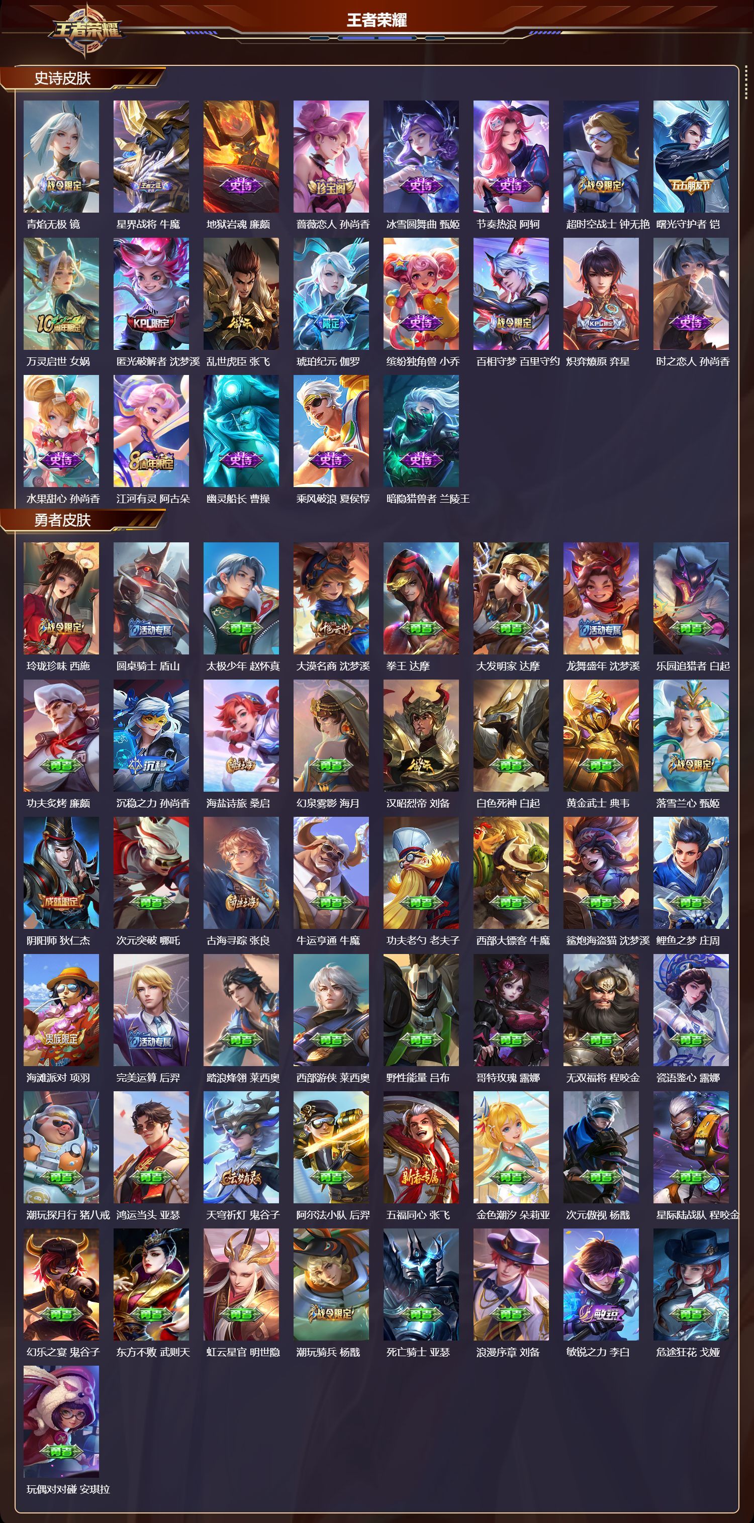 安卓QQ/非凡王者/255皮肤/127英雄/1典藏/0珍品无双/1无双/2珍品传说/18传说/69史