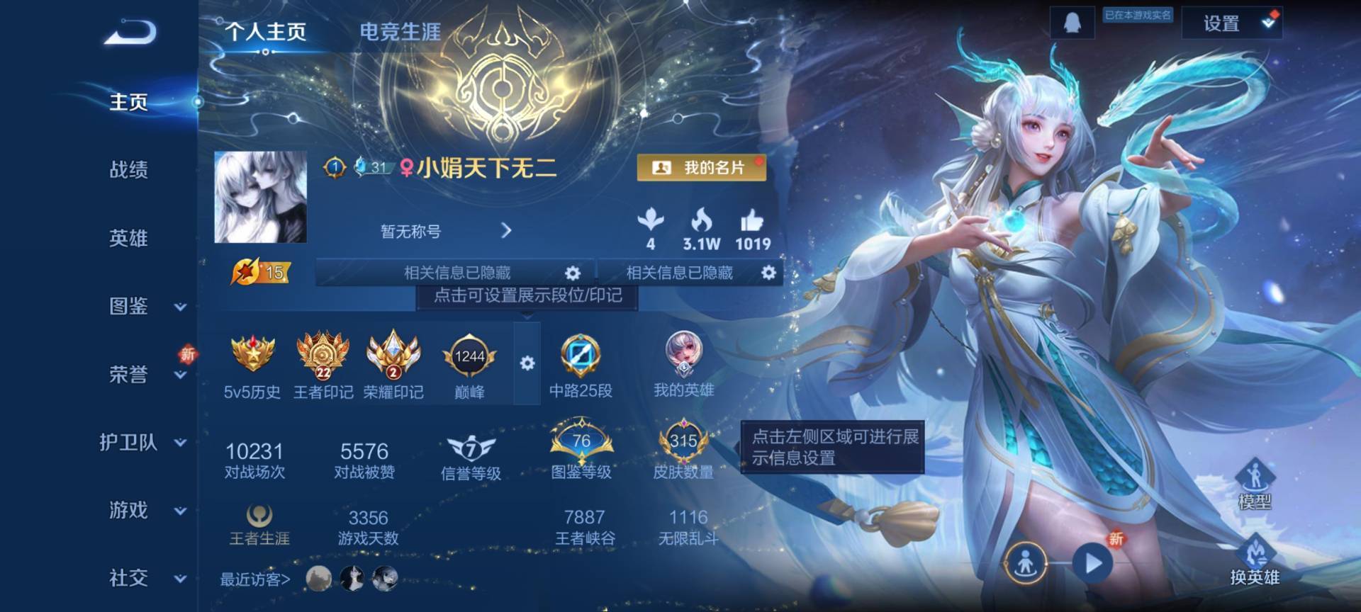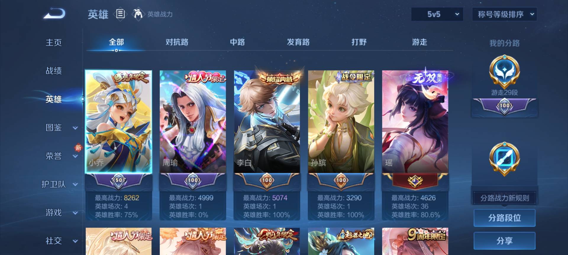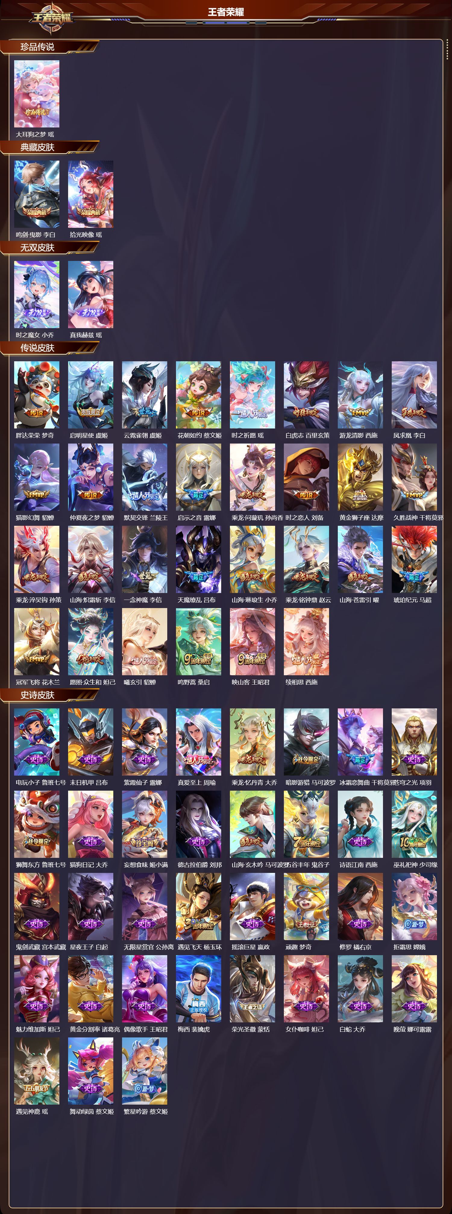 安卓QQ/非凡王者/315皮肤/125英雄/2典藏/0珍品无双/2无双/1珍品传说/30传说/100