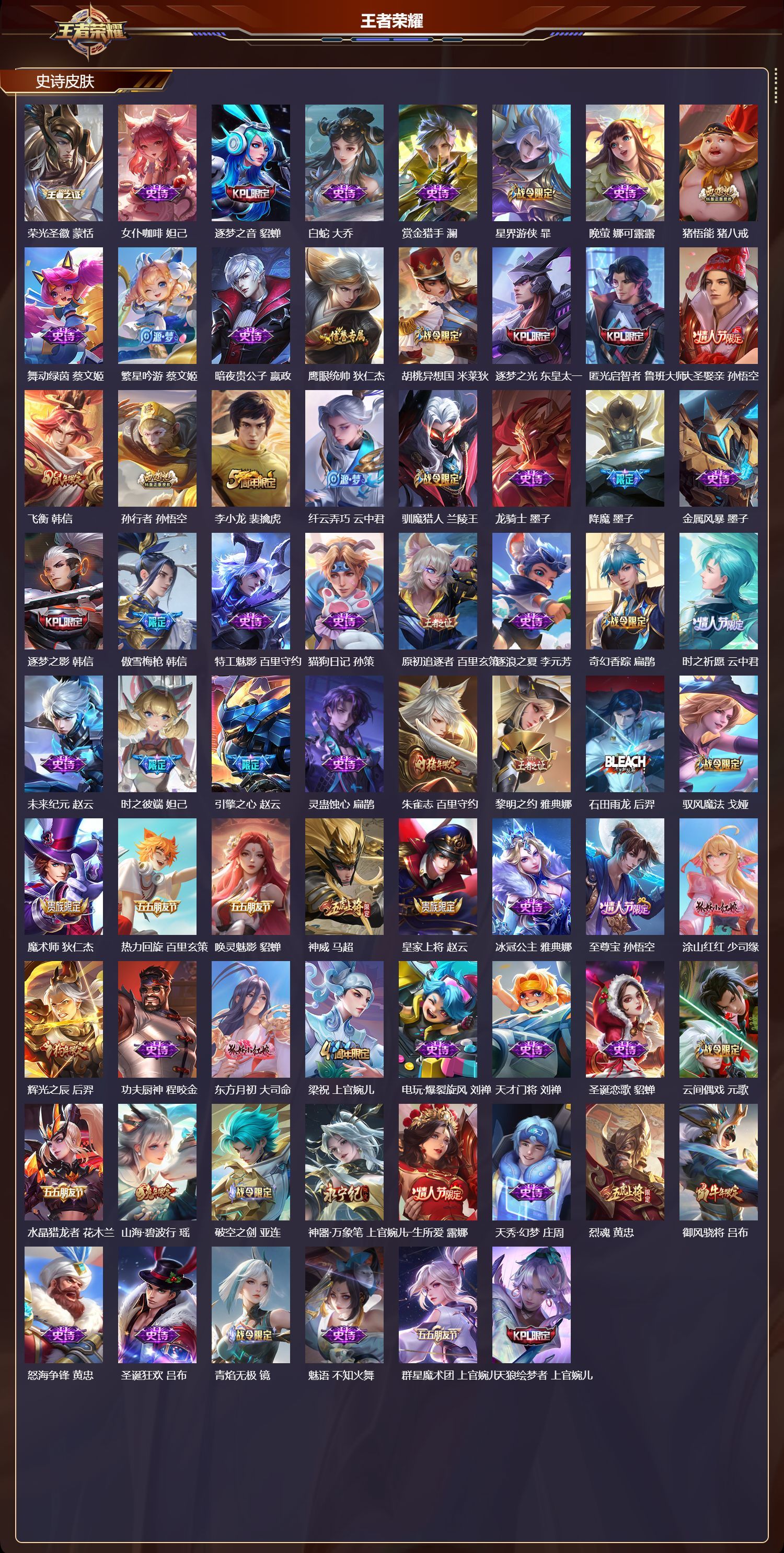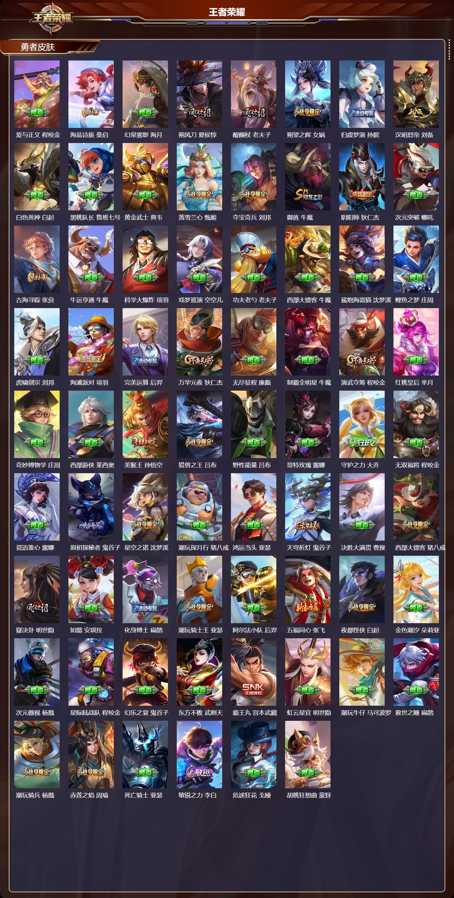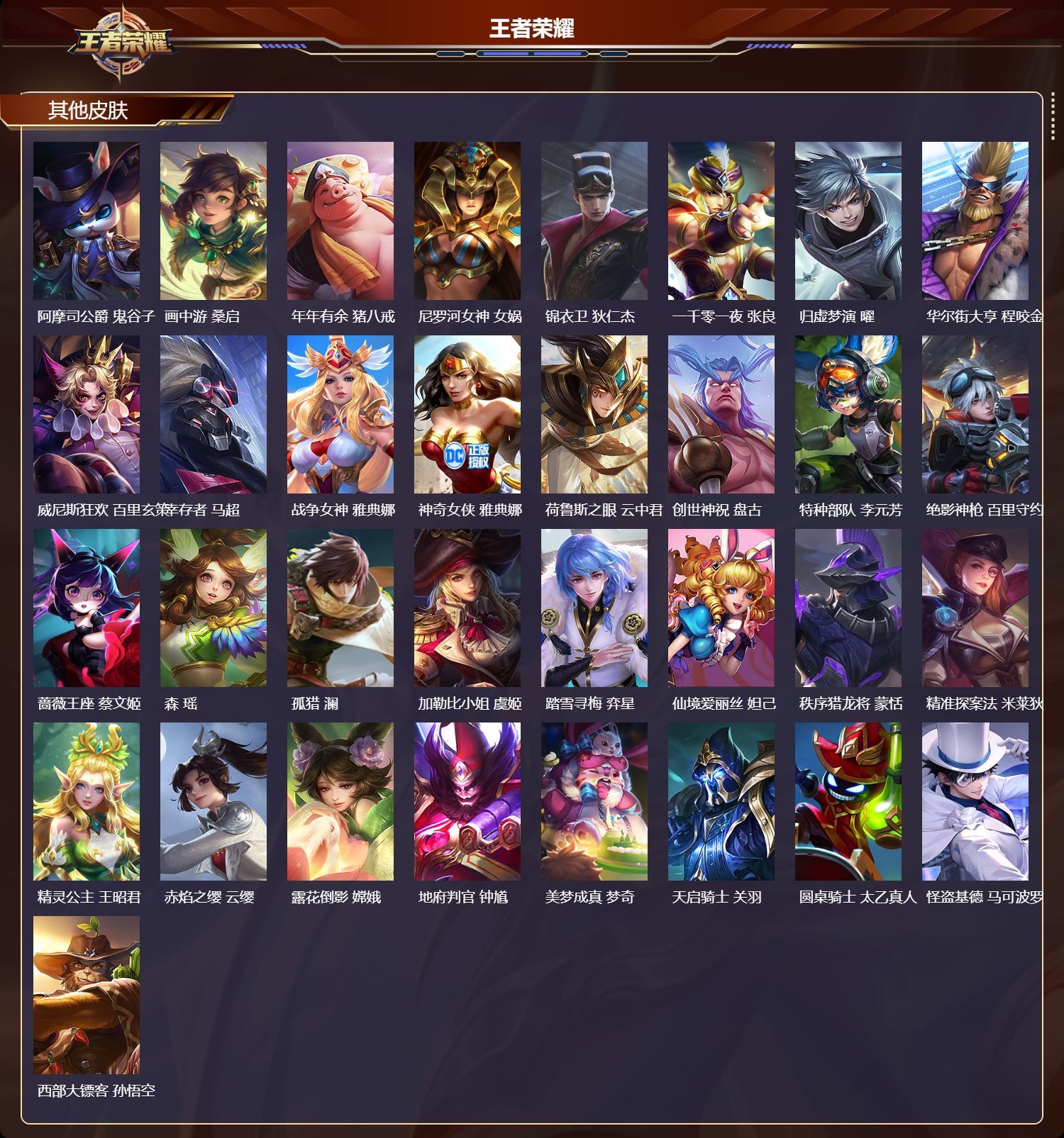苹果QQ/非凡王者/522皮肤/127英雄/4典藏/0珍品无双/1无双/1珍品传说/75传说/17