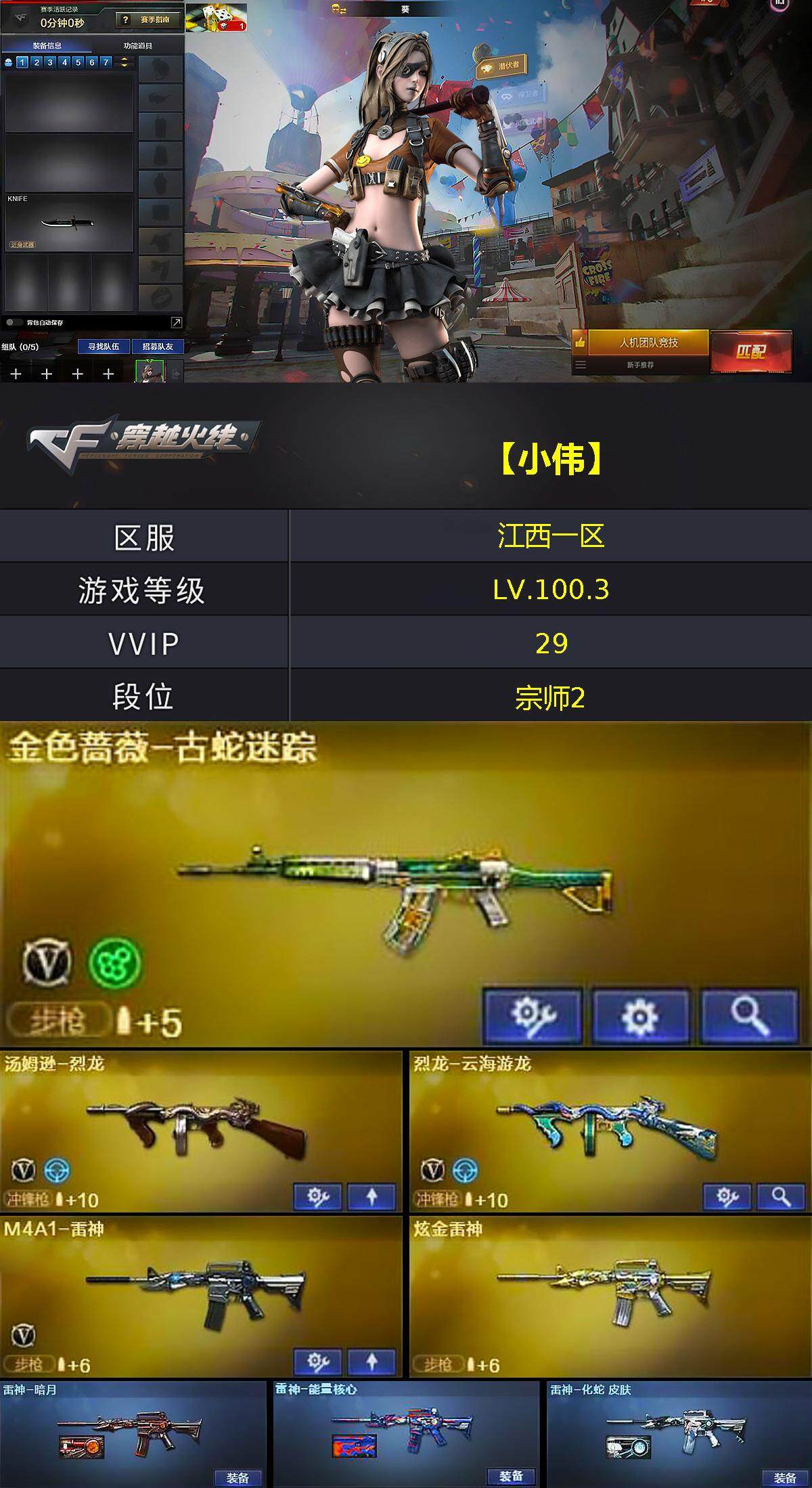 江西一区-26V-4王者-2炫金【热门武器】:金色蔷薇-古蛇迷踪,修罗-古蛇
