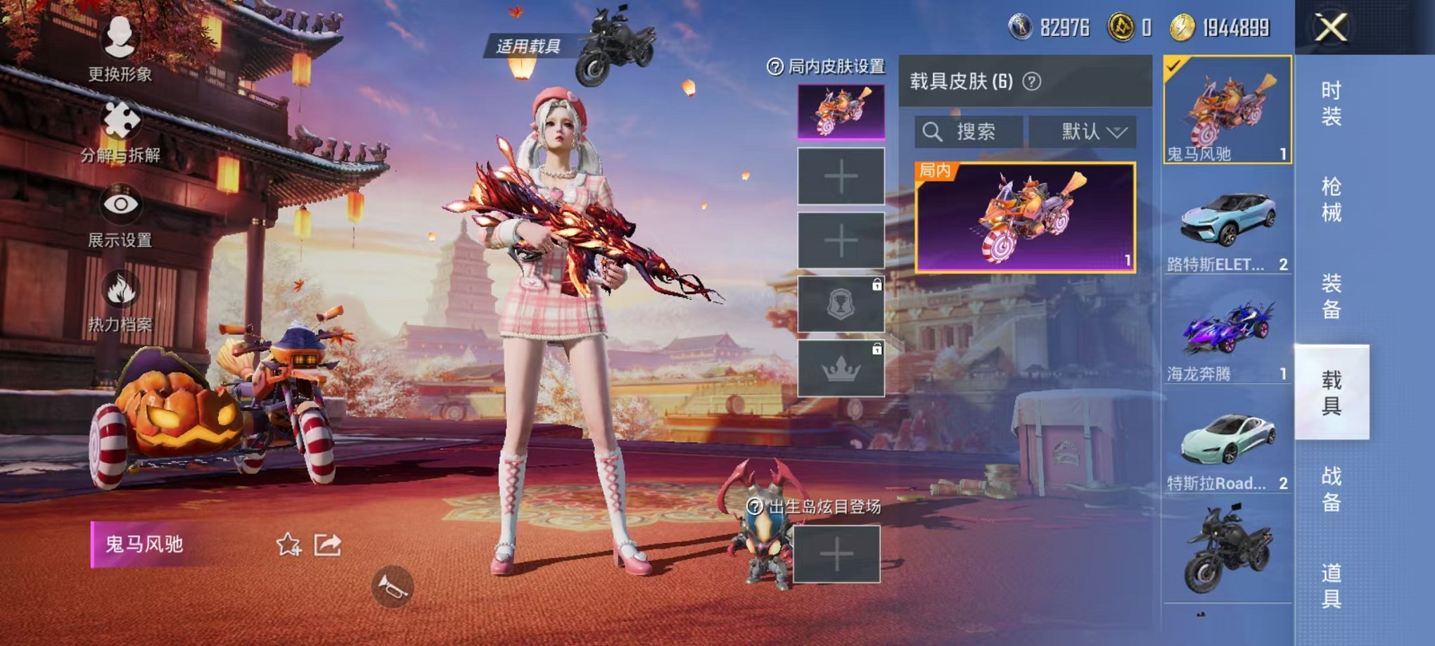 321-素材号【木乃伊巡查衣26粉装5特效枪6载具可秒换绑】、安卓Q区-101337热力值-15印记-239套装-264枪皮、【6载具】、路特斯EL蓝色、玛莎拉蒂粉色、兰博SUV黄色、特斯拉R水滴蓝、海龙奔腾、鬼马风驰【3稀有】、Mark.06、巡查衣、木乃伊【26粉装】、傲傲奶龙、新星烈龙(小白龙)、暖暖奶龙、憨憨奶龙、冰霜白皇、蜜桃特工、山涧鹿灵、梦幻火箭、天使彩虹糖、洛天依、极致幻想、酣梦娃娃、冰川粉黛、冰川红玫、恐龙拽拽、复仇流浪者、精灵迷巫、薄荷物语、岚岚物语、海盐物语、沙场疾风、花影