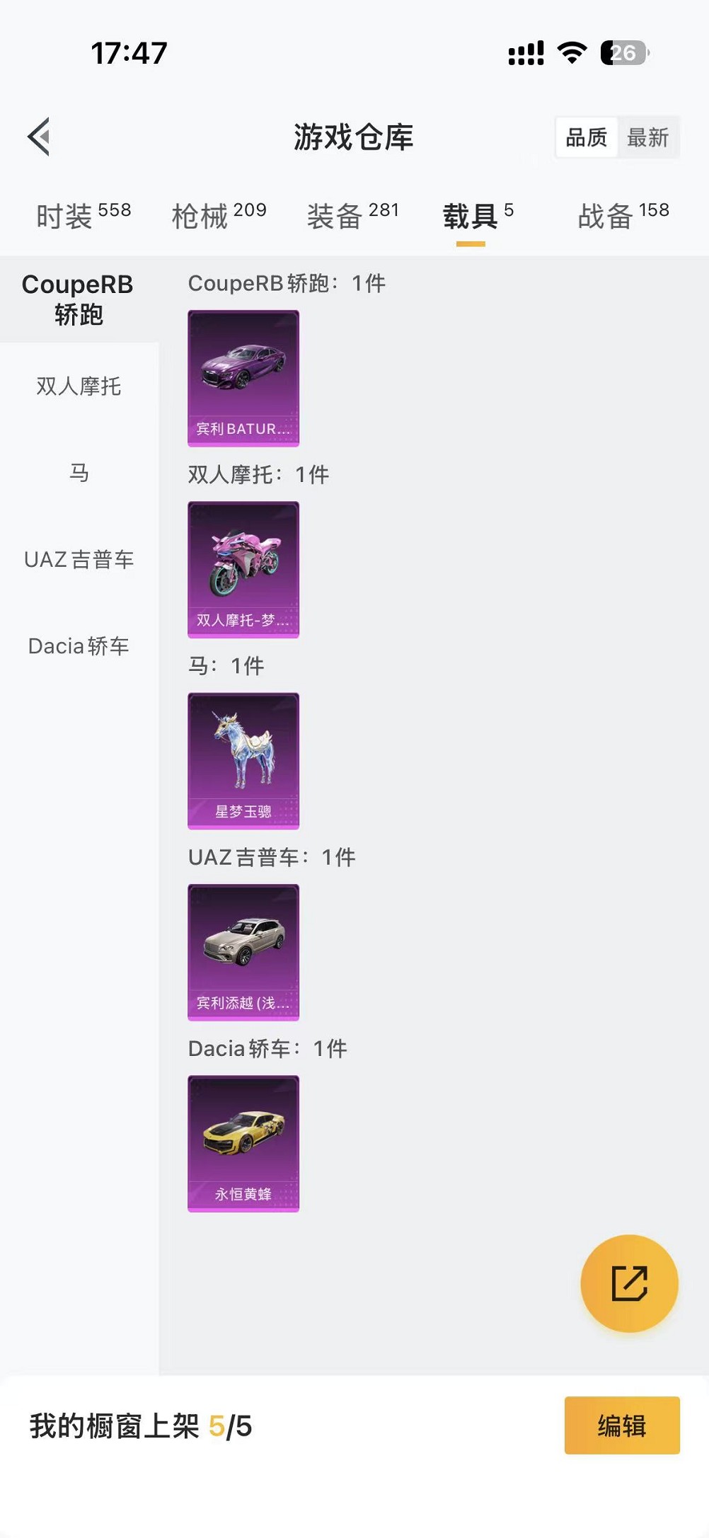 165-【小丑乔克三螳螂13粉装9特效枪5载具、可秒换绑】、苹果Q区-76328热力值-9印记-155套装-209枪皮、【5载具】、双人摩托梦幻火箭、宾利BATTUR(极速紫)、永恒黄蜂、宾利添越(浅瞪羚棕)、星梦玉骢【3稀有】、8号机、Mark.06、AKM-百万伏特【13粉装】、角色-初号机、觉醒Ver.、梦幻火箭、怪诞乔克、新星烈龙(小白龙)、数码大师、齐天大圣、筑梦精灵、金丰海韵、角色-星梦奇缘、角色-光极星、角色-星空武士、角色-月影灵韵、角色-羊梦糖心【9特效枪】、M416-心之恋语
