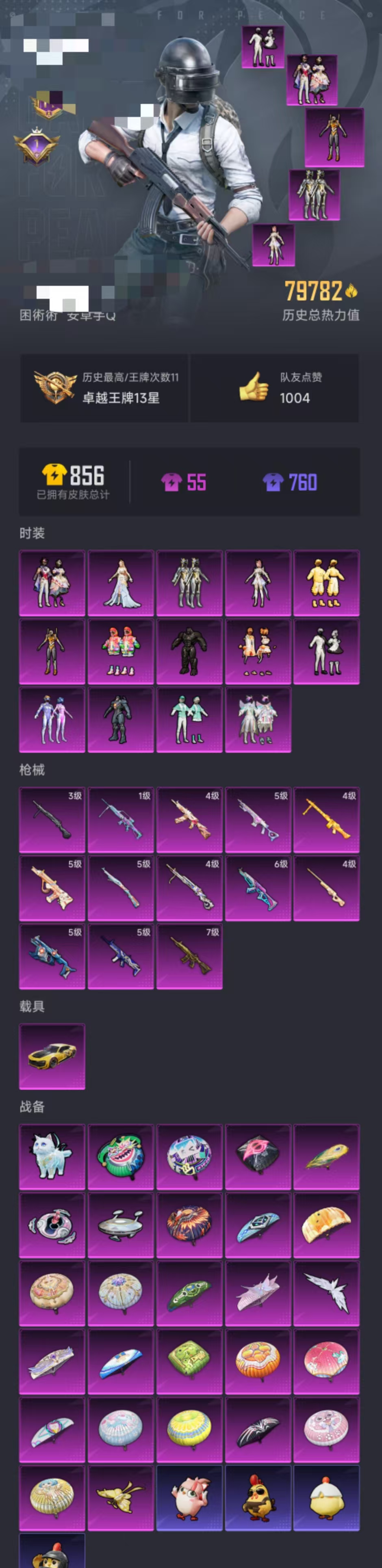 293-【黄螳螂梦幻火箭14粉装13特效枪1载具秒可换绑】、安卓Q区-79782热力值-11印记-160套装-232枪皮、【1载具】、永恒黄蜂【1稀有】、奇异狩猎者【14粉装】、黄螳螂、梦幻火箭、圣堂之誓、山涧鹿灵、猩猩队长、暖暖奶龙、炫光之旅、绚金战神、复仇流浪者、橘柚倾心、薄荷物语、冰川幽秘、角色-智耀战神、星穹咏叹调【13特效枪】、SCAR-L-青春物语(5级)、DP-28-圣堂之誓(4级)、M416-五爪金龙(7级)、AWM-橘柚倾心(4级)、AKM-梦之光华(6级)、MG3-酷泡奶龙(