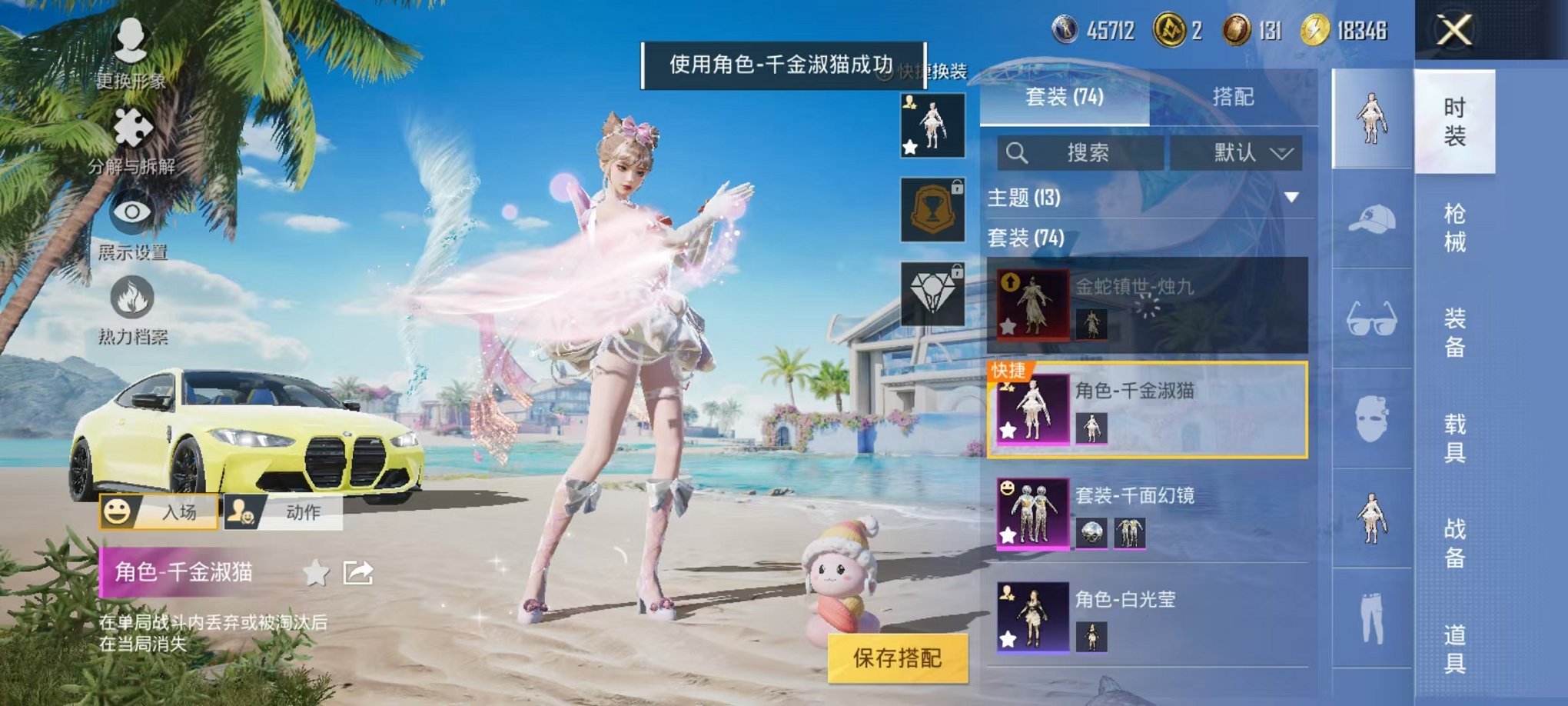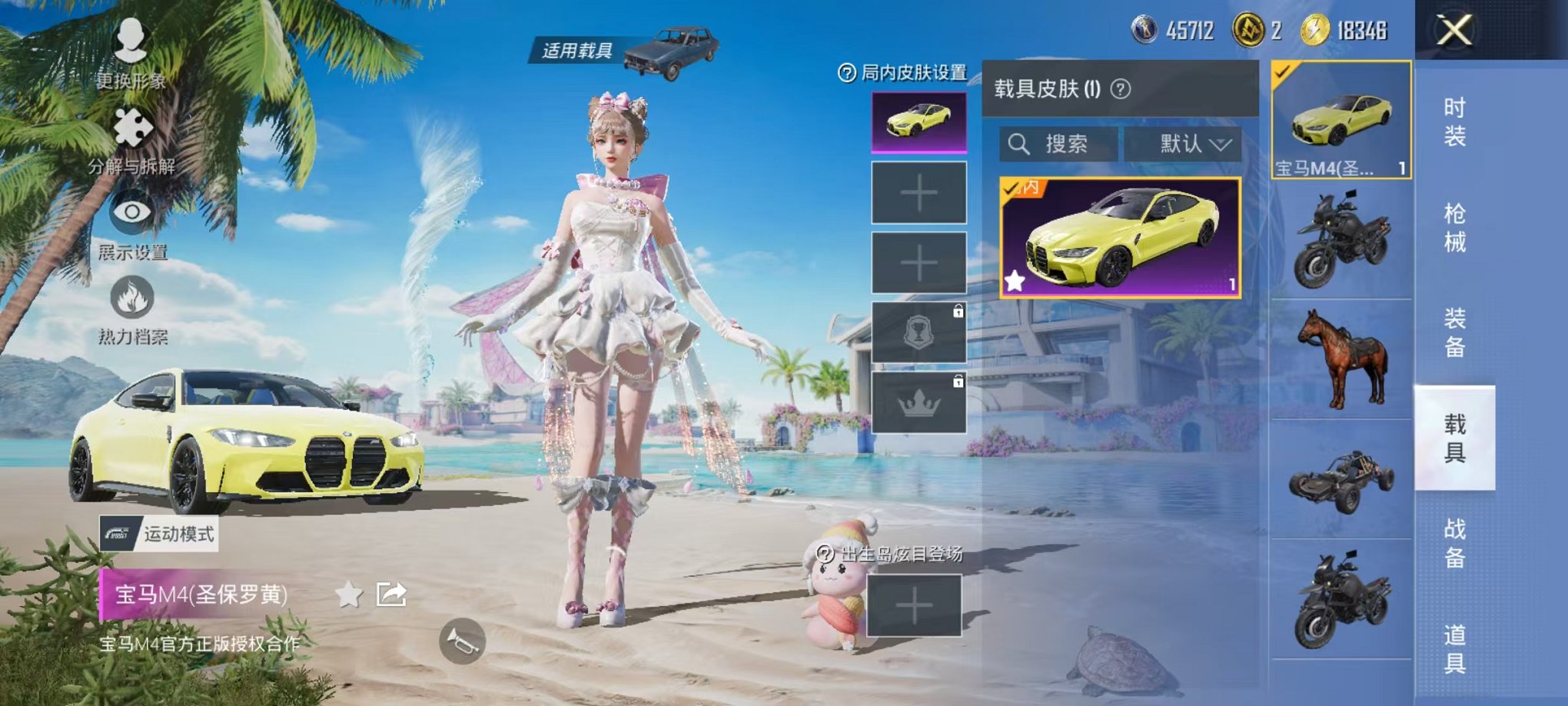 1神装-烛九宝马2粉装2特效枪1载具可秒换绑