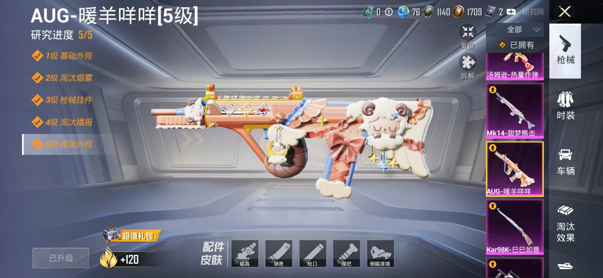 733-【满级心之恋语7粉装12特效枪可秒换绑】、安卓Q区-63183热力值-12印记-124套装-197枪皮、【2稀有】、8号机、Mark.06【7粉装】、傲傲奶龙、金风玉露、深渊皇后、幻影战神、极限特训、雪月幻音、角色-烟云彩露【12特效枪】、SCAR-L-锦绣绵绵(5级)、M416-心之恋语(7级)、AKM-绿萝繁花(5级)、UMP45-量子极限(5级)、M762-电糖天使(7级)、Mk14-甜梦熊击(5级)、汤姆逊-热量炸弹(5级)、GROZA-镜光银凌(5级)、Kar98K-巳巳如意(