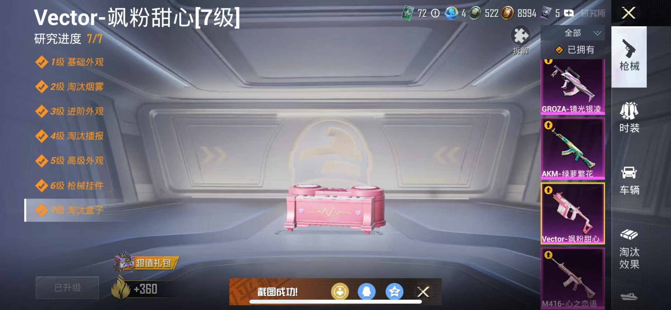 862-可二次【暗夜之虎、满级心之恋语6粉装7特效枪1载具、可秒换绑】、苹果Q区-59212热力值-8印记-139套装-194枪皮、【1载具】、护世瑞兽【1稀有】、暗夜之虎【6粉装】、勇猛狮王、炫光之旅、绚金战神、紫电风暴、未来战士、套装-未来领航者【7特效枪】、M416-心之恋语(7级)、Vector-飒粉甜心(7级)、AKM-绿萝繁花(5级)、GROZA-镜光银凌(5级)、Kar98K-巳巳如意(5级)、DP-28-豹影疾电(5级)、AUG-暖羊咩咩(5级)【35热门】、M416-蓝色火焰、