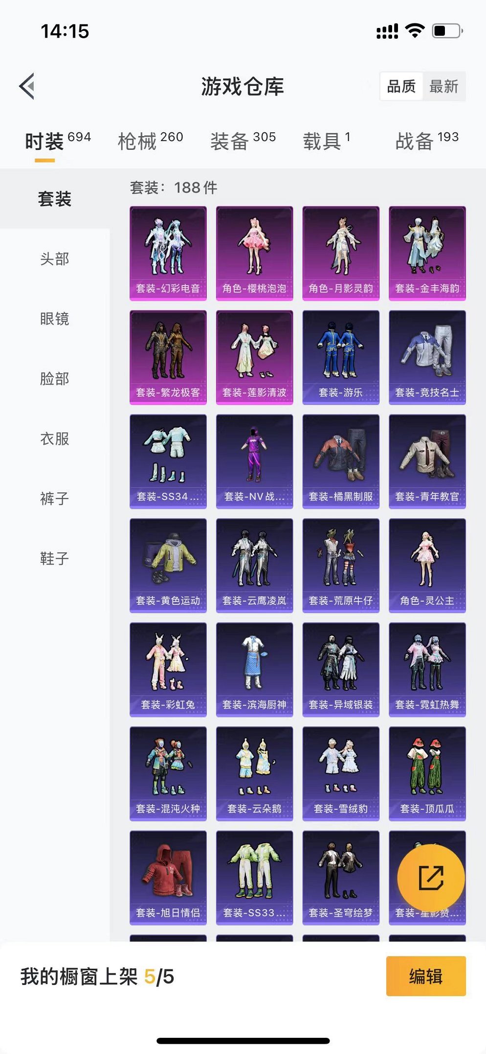 688-【金鞋螳螂都市6粉装10特效枪1载具可秒换绑】、苹果Q区-82289热力值-13印记-188套装-260枪皮、【1载具】、布加迪威龙(海洋蓝)【3稀有】、8号机、Mark.06、派对舞王【6粉装】、莲影清波、繁龙极客、金丰海韵、角色-樱桃泡泡、幻彩电音、角色-月影灵韵【10特效枪】、AWM-橘柚倾心(7级)、AKM-绿萝繁花(5级)、M416-电玩时刻(5级)、Mk14-甜梦熊击(5级)、MG3-辉羽雀灵(3级)、烟雾弹-甜梦果泡(5级)、GROZA-镜光银凌(5级)、Kar98K-巳巳