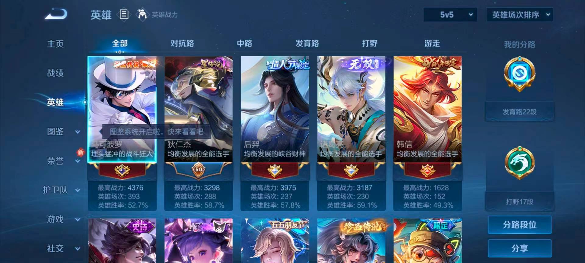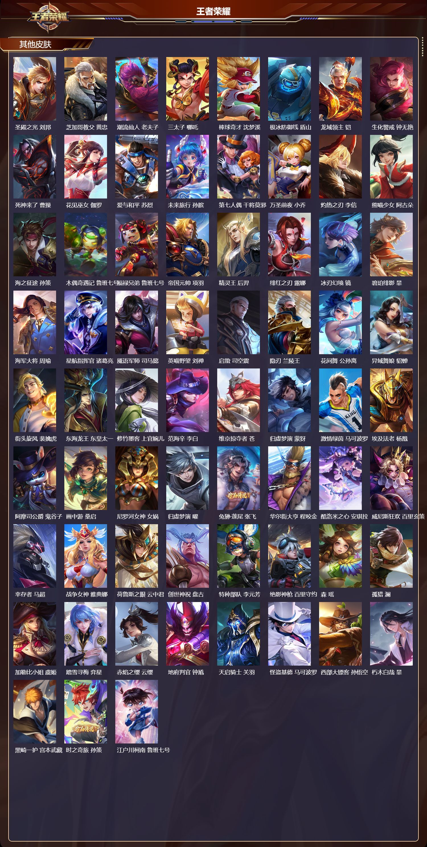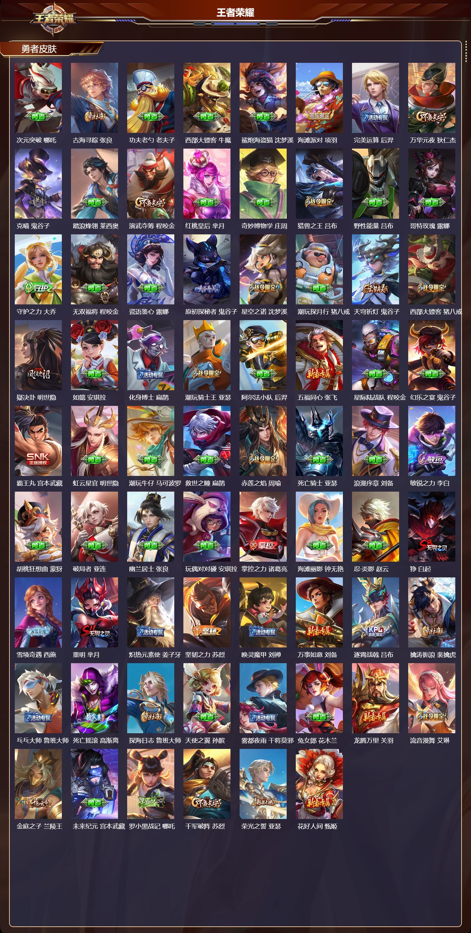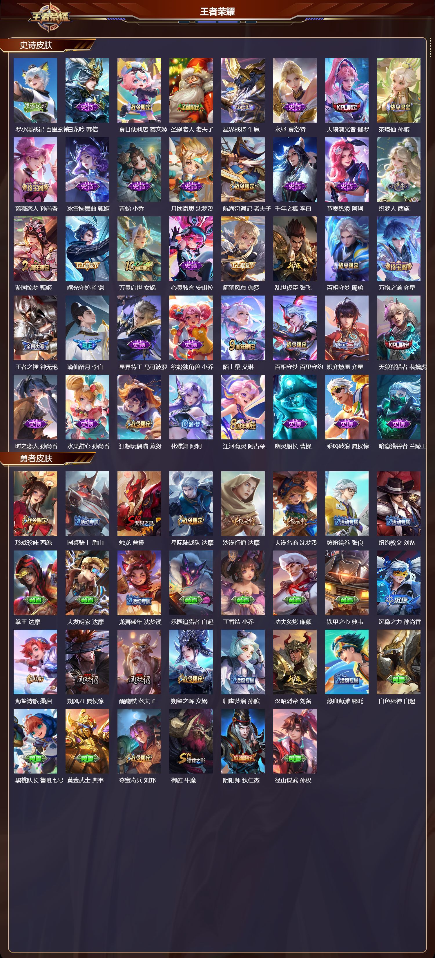 安卓QQ/荣耀王者/409皮肤/127英雄/2典藏/0珍品无双/3无双/7珍品传说/36传说/132