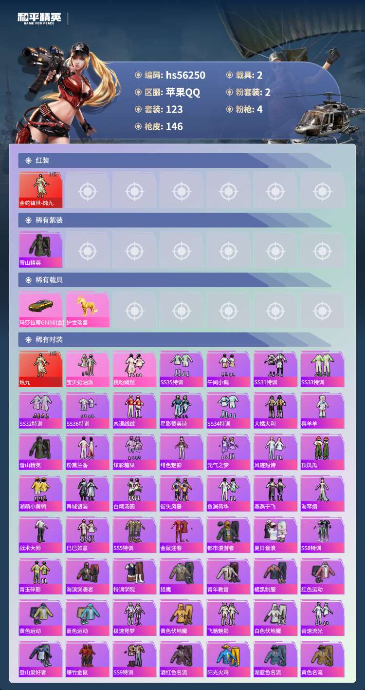 hs56250 苹果手Q-7王牌印记-1红装-2粉装-4特效枪-2载具-47110热力值-123套装