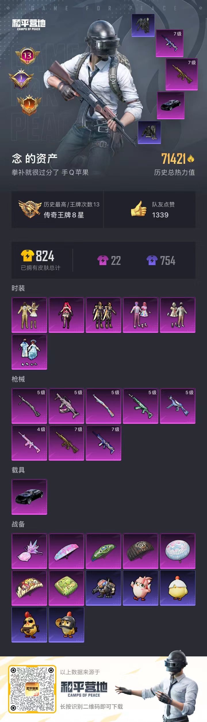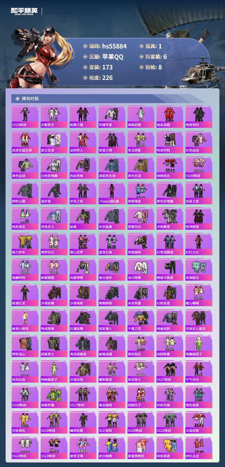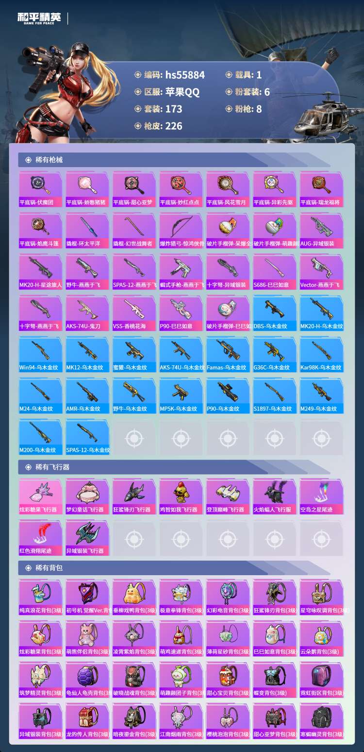 hs55884 苹果手Q-13王牌印记-6粉装-8特效枪-1载具-71421热力值-173套装-22